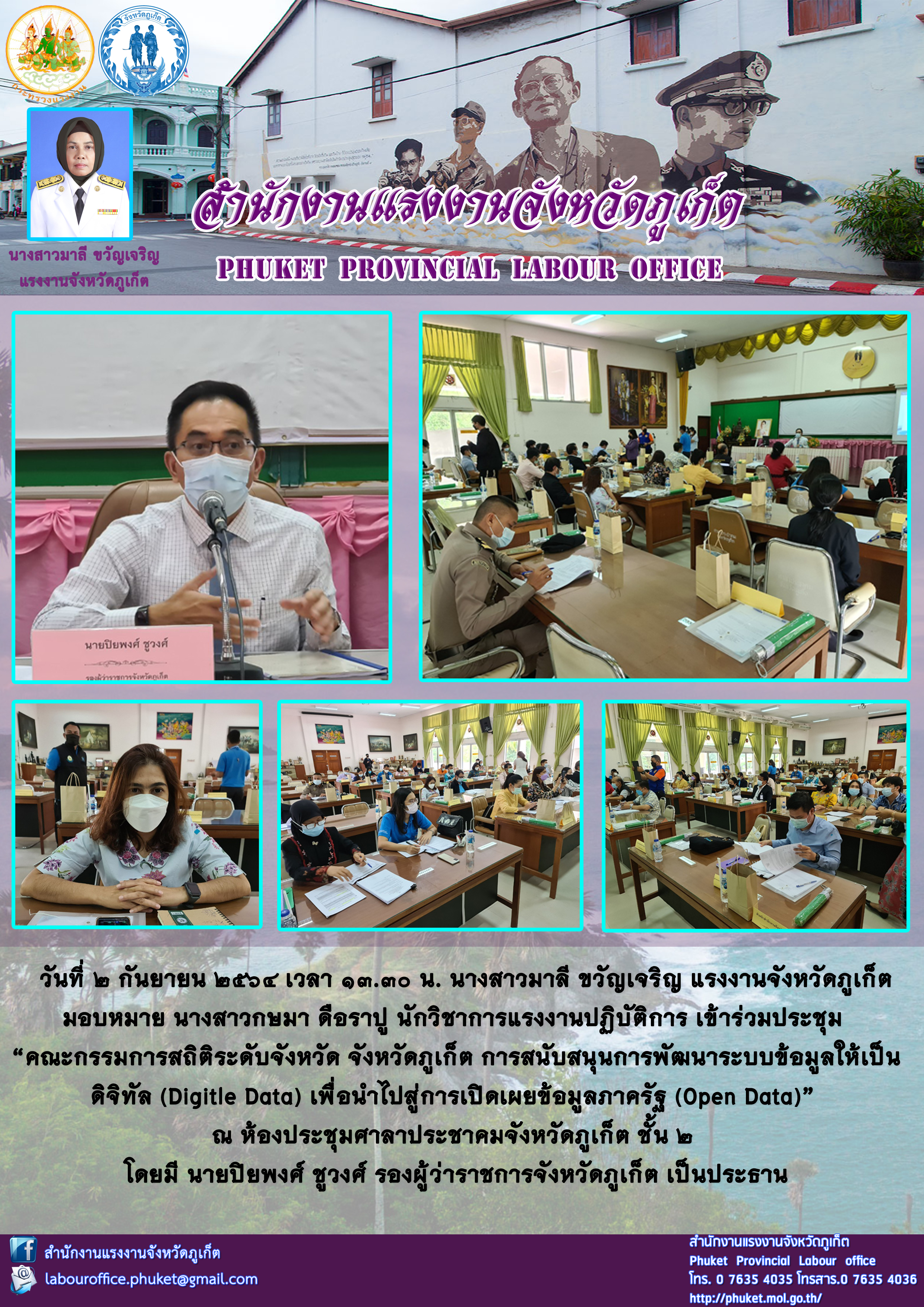 สำนักงานแรงงานจังหวัดภูเก็ต เข้าร่วมประชุม “คณะกรรมการสถิติระดับจังหวัด จังหวัดภูเก็ต การสนับสนุนการพัฒนาระบบข้อมูลให้เป็น ดิจิทัล (Digitle Data) เพื่อนำไปสู่การเปิดเผยข้อมูลภาครัฐ (Open Data)”