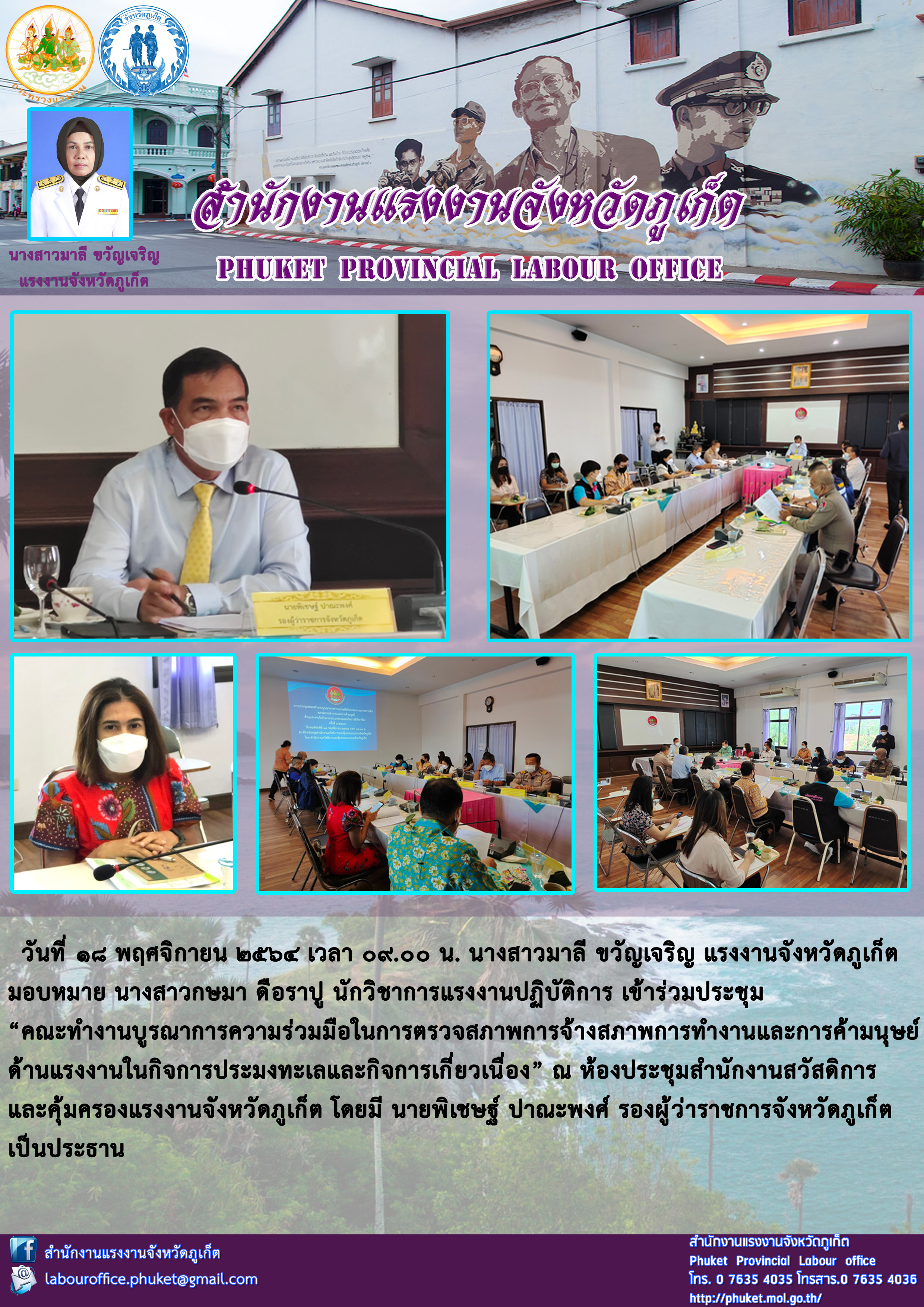 แรงงานจังหวัดภูเก็ต เข้าร่วมประชุม “คณะทำงานบูรณาการความร่วมมือในการตรวจสภาพการจ้างสภาพการทำงานและการค้ามนุษย์ ด้านแรงงานในกิจการประมงทะเลและกิจการเกี่ยวเนื่อง”