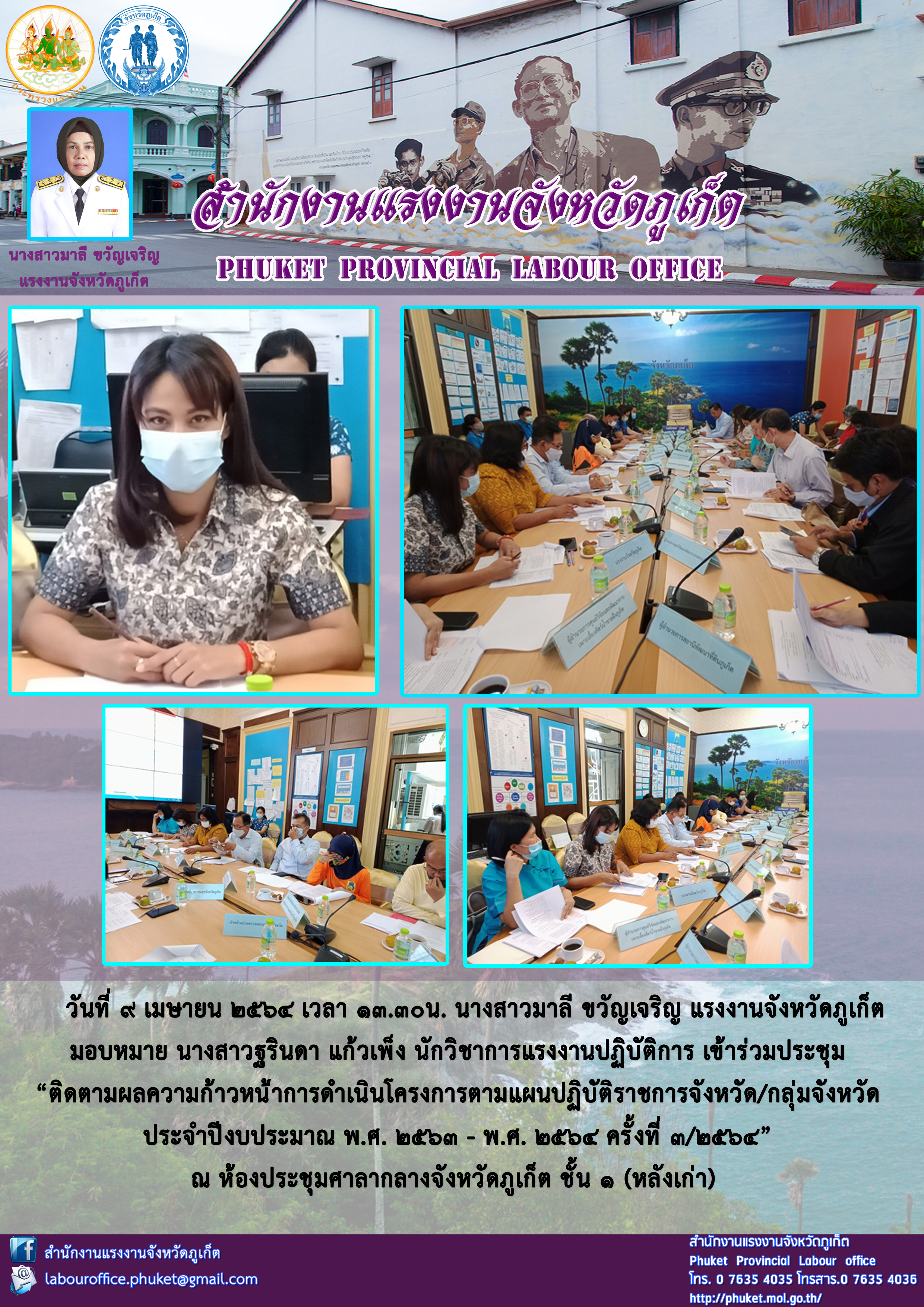 สำนักงานแรงงานจังหวัดภูเก็ต เข้าร่วมประชุม “ติดตามผลความก้าวหน้่าการดำเนินโครงการตามแผนปฏิบัติราชการจังหวัด/กลุ่มจังหวัด ประจำปีงบประมาณ พ.ศ. 2563 – พ.ศ. 2564 ครั้งที่ 3/2564”