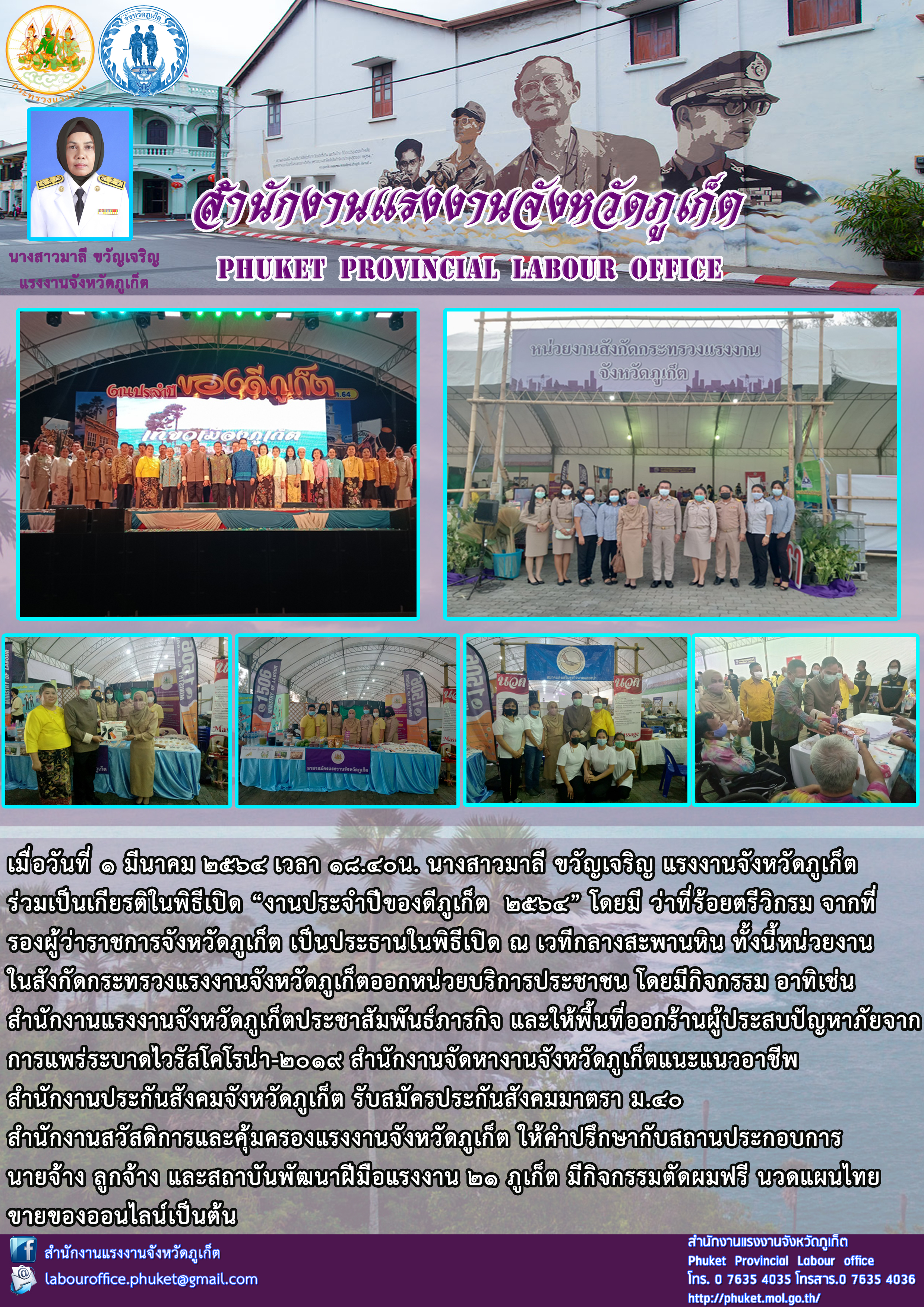 แรงงานจังหวัดภูเก็ต ร่วมเป็นเกียรติในพิธีเปิด “งานประจำปีของดีภูเก็ต 2564”