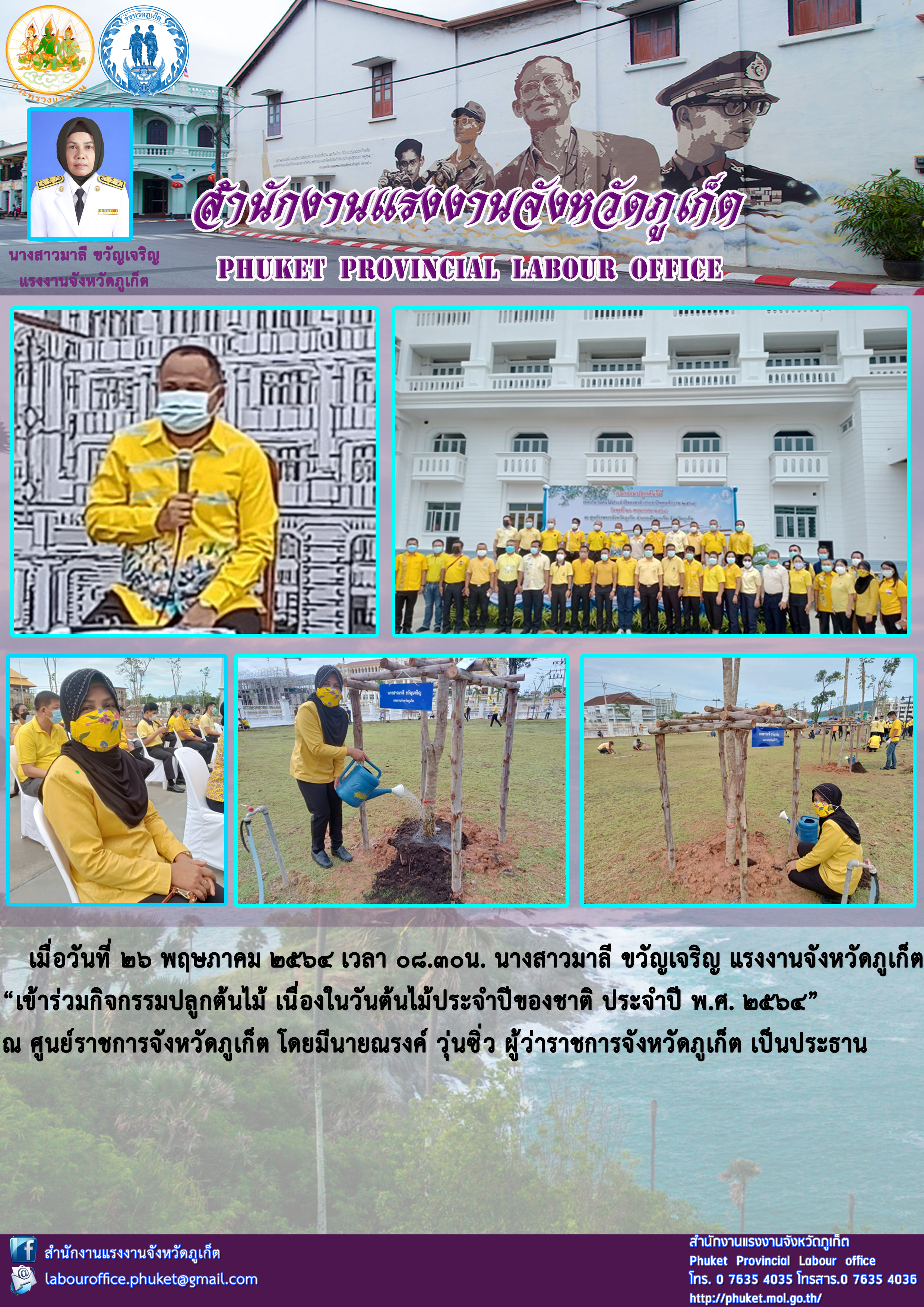 นางสาวมาลี ขวัญเจริญ แรงงานจังหวัดภูเก็ต “เข้าร่วมกิจกรรมปลูกต้นไม้ เนื่องในวันต้นไม้ประจำปีของชาติ ประจำปี พ.ศ. 2564”