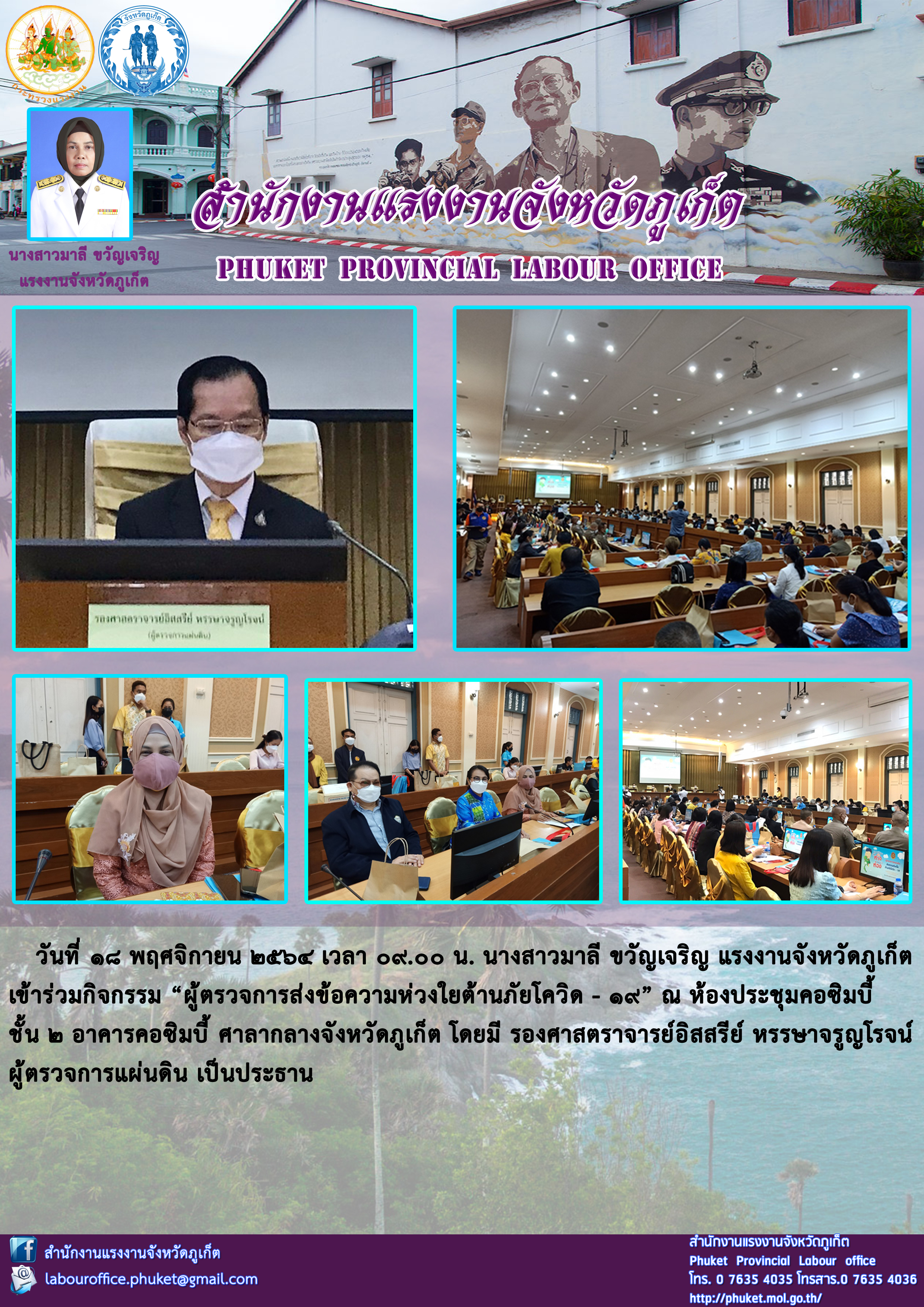 แรงงานจังหวัดภูเก็ต เข้าร่วมกิจกรรม “ผู้ตรวจการส่งข้อความห่วงใยต้านภัยโควิด – ๑๙”