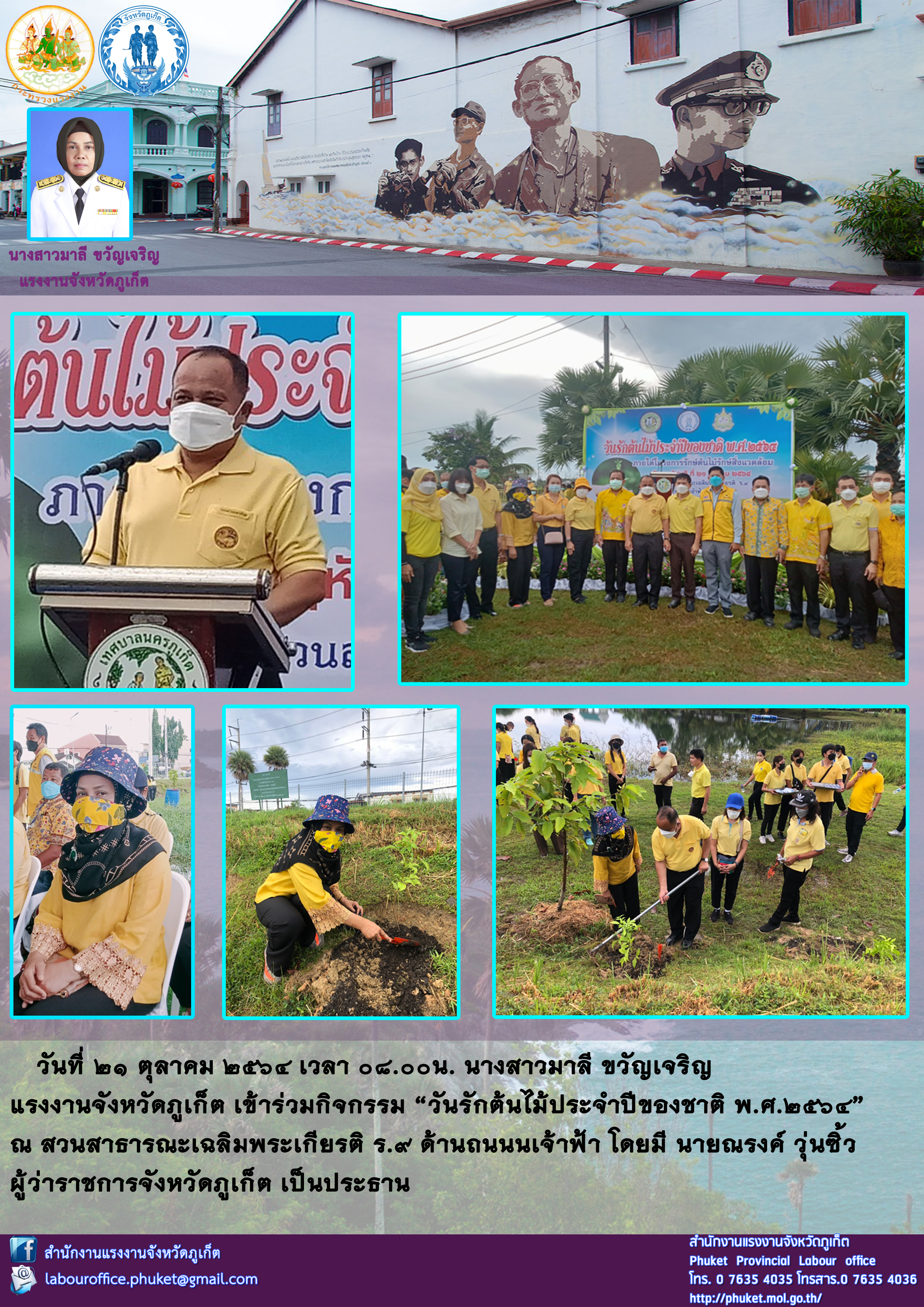 สำนักงานแรงงานจังหวัดภูเก็ต เข้าร่วมกิจกรรม “วันรักต้นไม้ประจำปีของชาติ พ.ศ.2564”