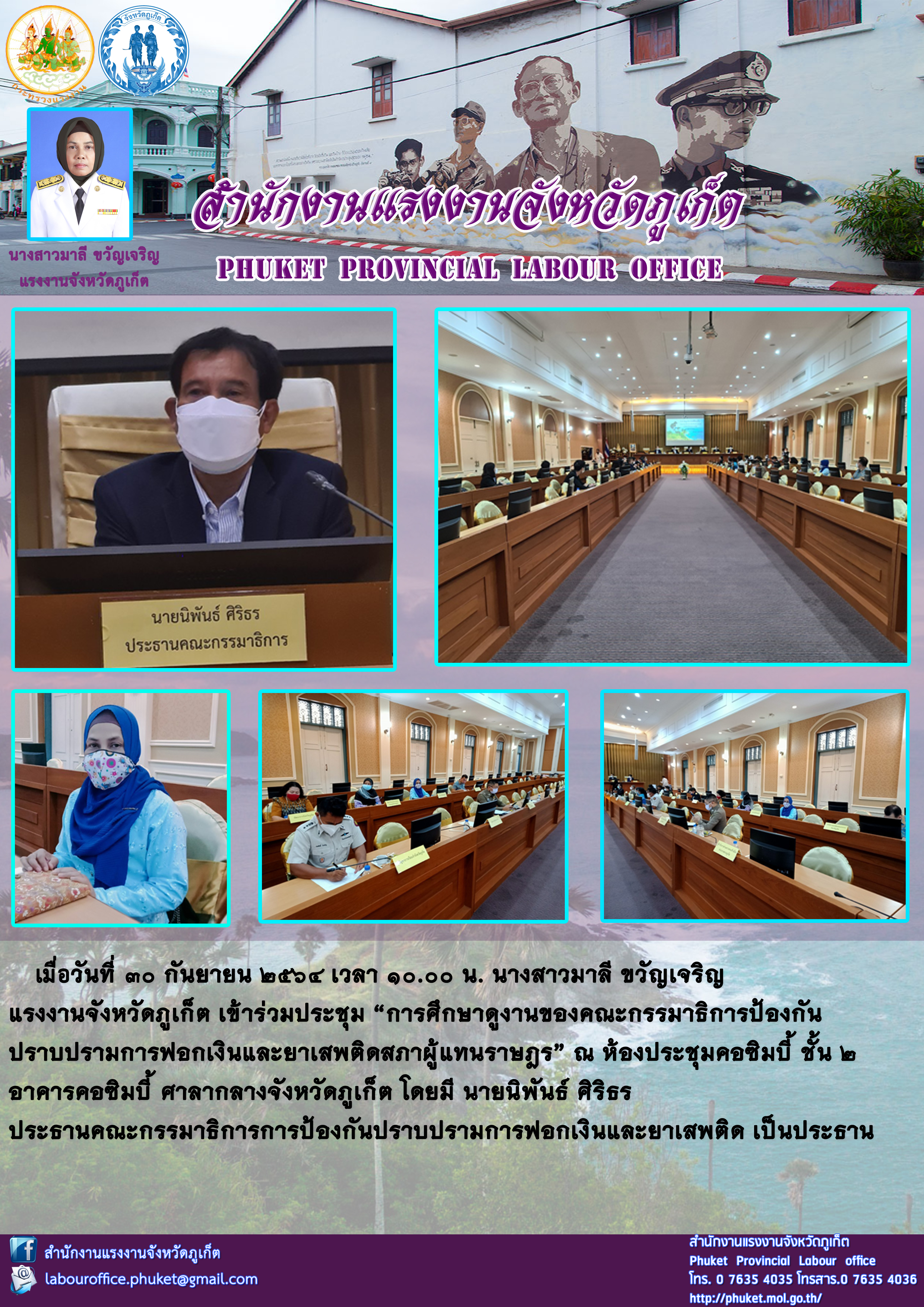 แรงงานจังหวัดภูเก็ต เข้าร่วมประชุม “การศึกษาดูงานของคณะกรรมาธิการป้องกัน ปราบปรามการฟอกเงินและยาเสพติดสภาผู้แทนราษฎร”