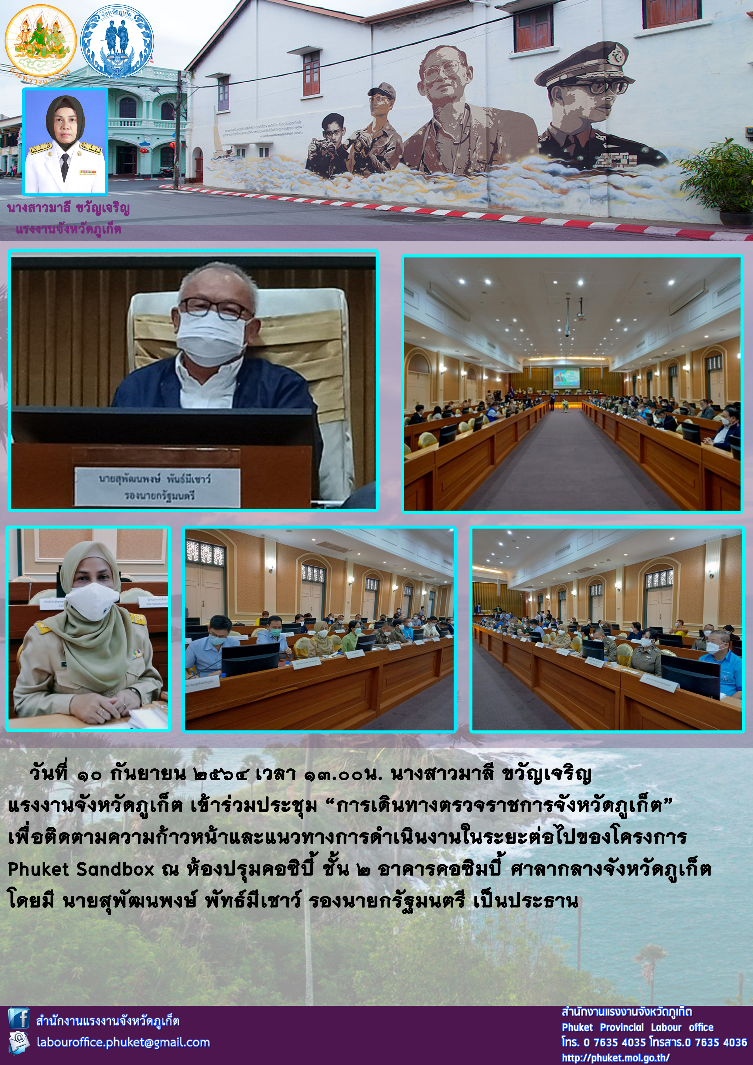 นางสาวมาลี ขวัญเจริญ แรงงานจังหวัดภูเก็ต เข้าร่วมประชุม “การเดินทางตรวจราชการจังหวัดภูเก็ต”