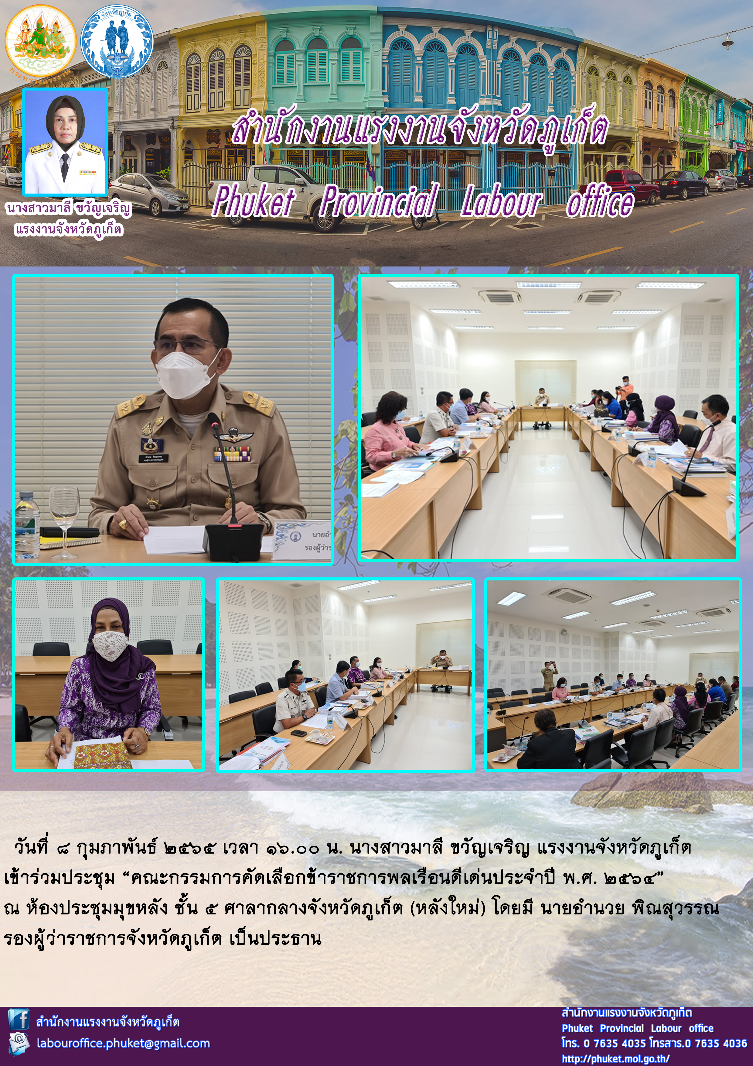 แรงงานจังหวัดภูเก็ต เข้าร่วมประชุม “คณะกรรมการคัดเลือกข้าราชการพลเรือนดีเด่นประจำปี พ.ศ. 2564”