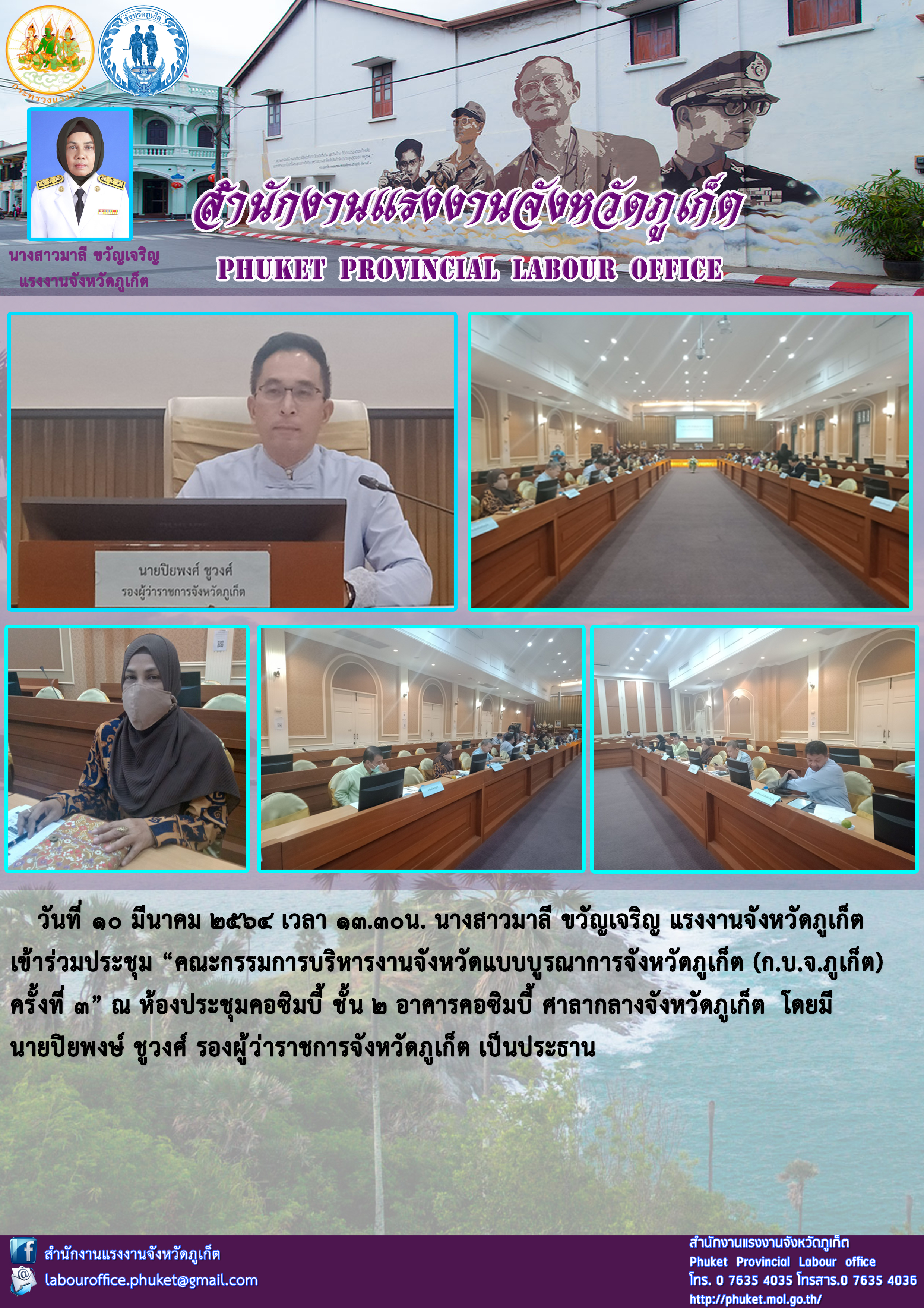 แรงงานจังหวัดภูเก็ต เข้าร่วมประชุม “คณะกรรมการบริหารงานจังหวัดแบบบูรณาการจังหวัดภูเก็ต (ก.บ.จ.ภูเก็ต) ครั้งที่ 3”