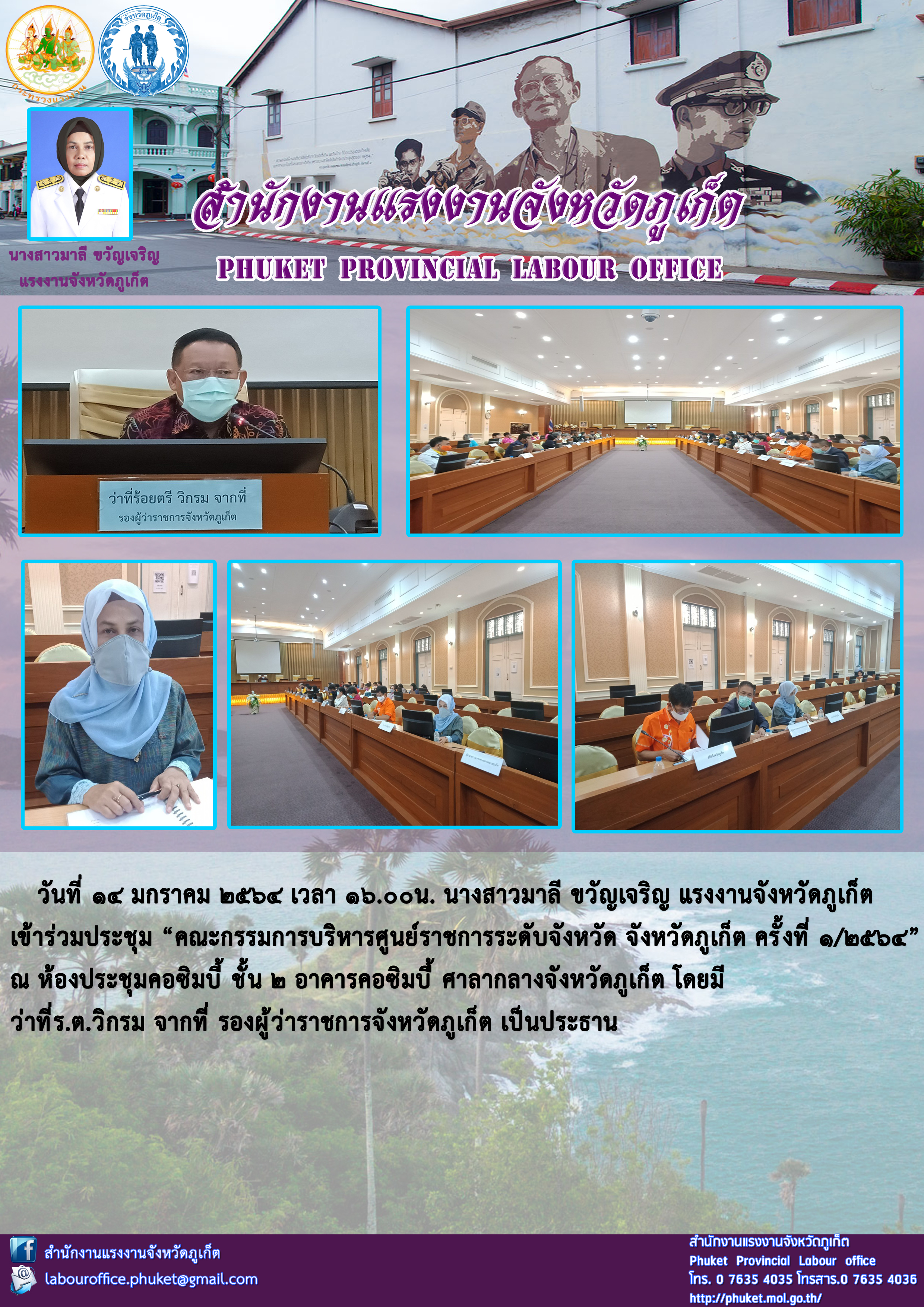 แรงงานจังหวัดภูเก็ต เข้าร่วมประชุม “คณะกรรมการบริหารศูนย์ราชการระดับจังหวัด จังหวัดภูเก็ต ครั้งที่ 1/2564”