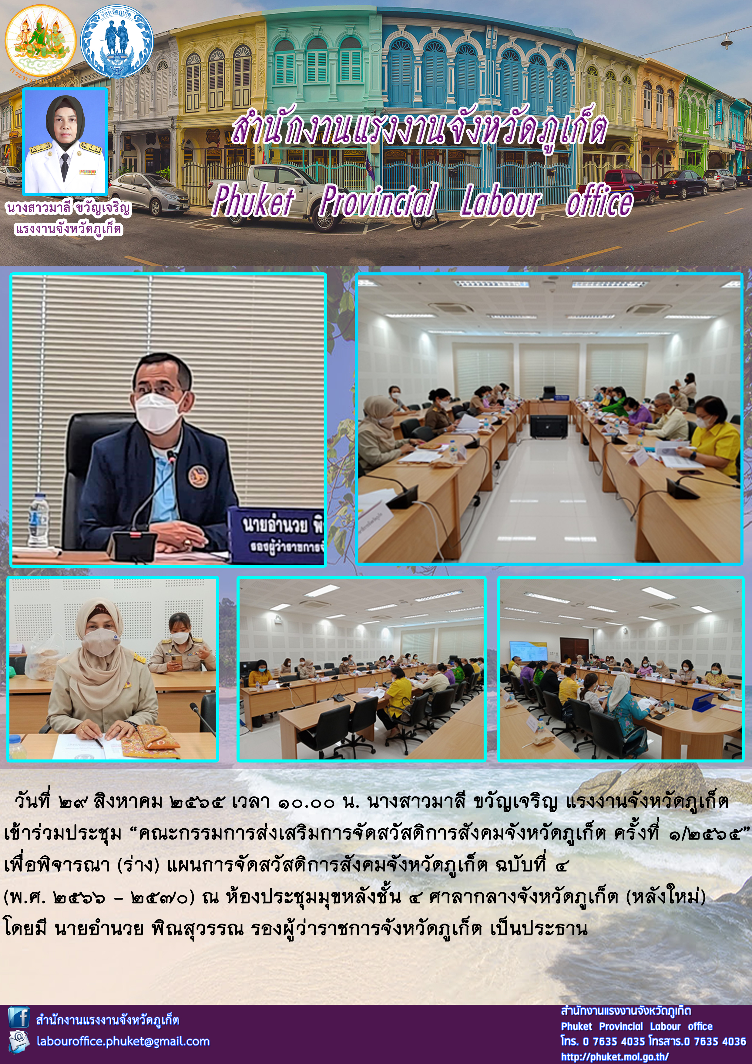 นางสาวมาลี ขวัญเจริญ แรงงานจังหวัดภูเก็ต เข้าร่วมประชุม “คณะกรรมการส่งเสริมการจัดสวัสดิการสังคมจังหวัดภูเก็ต ครั้งที่ 1/2565”