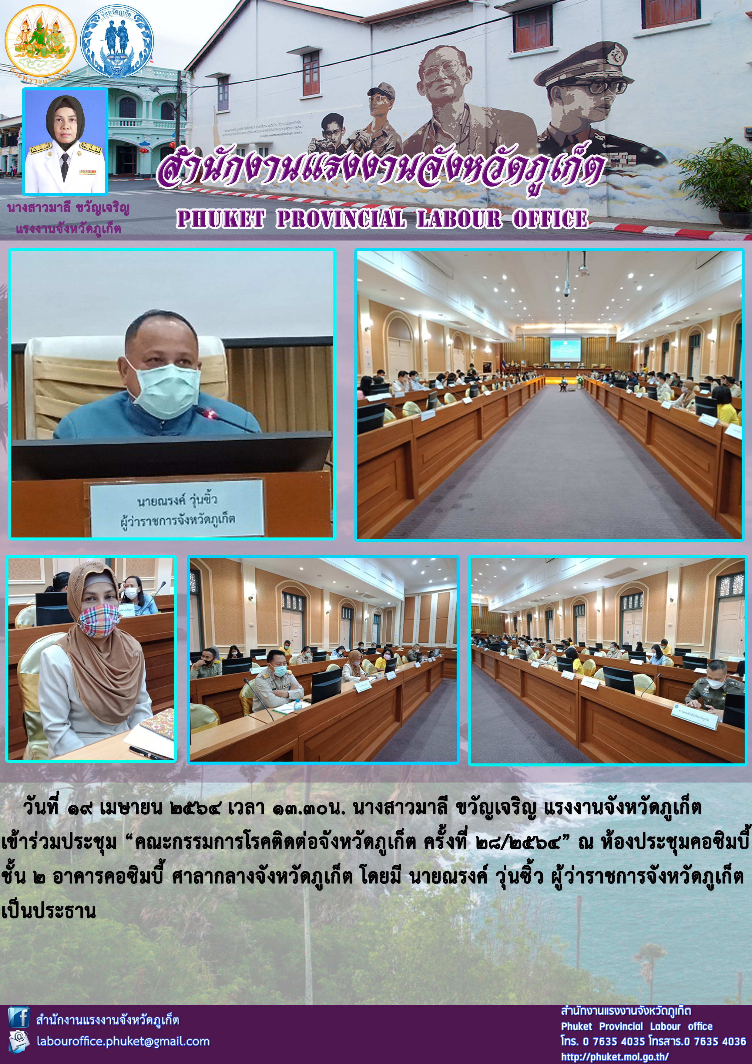 สำนักงานแรงงานจังหวัดภูเก็ต เข้าร่วมประชุม “คณะกรรมการโรคติดต่อจังหวัดภูเก็ต ครั้งที่ 28/2564”