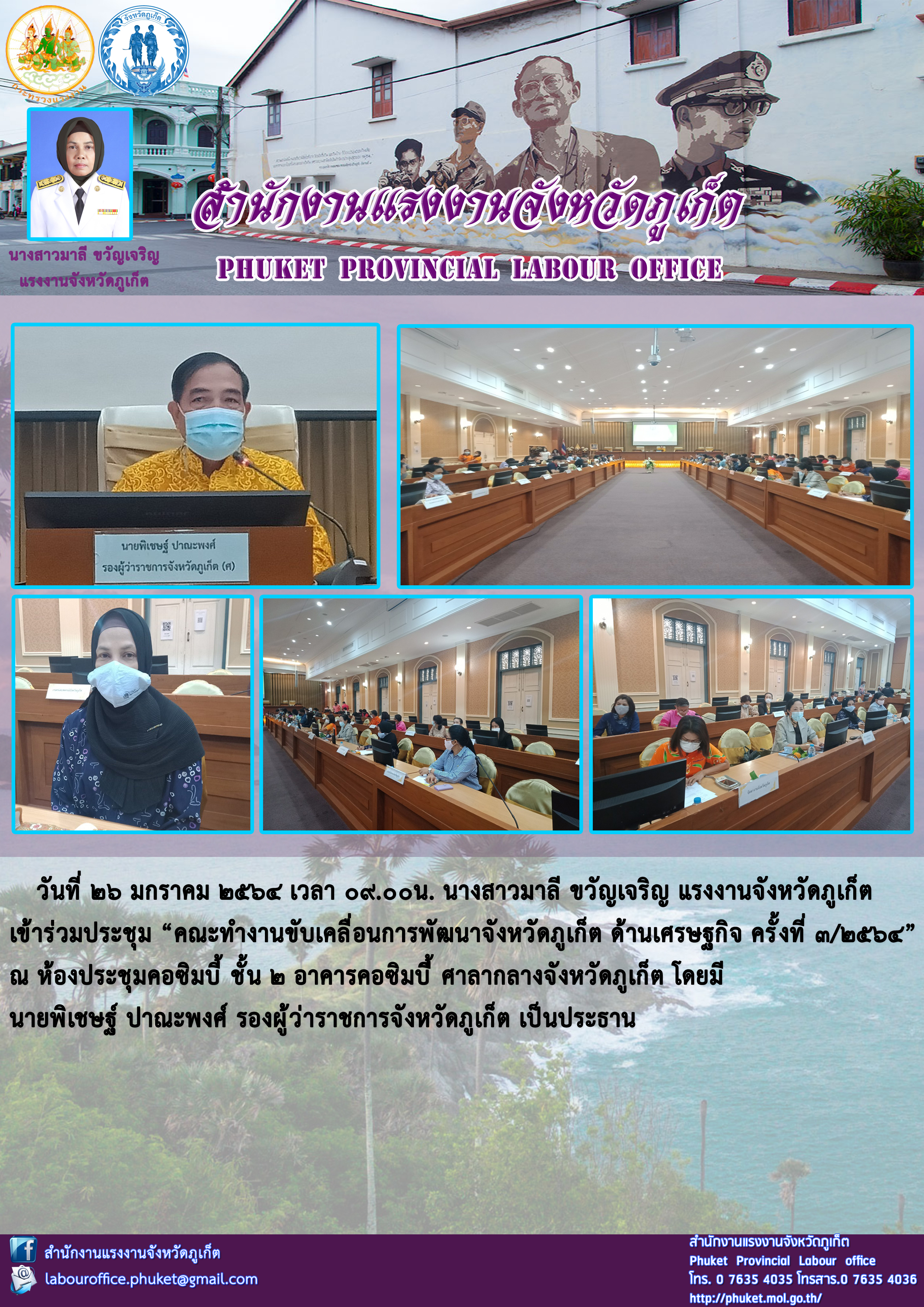 แรงงานจังหวัดภูเก็ต เข้าร่วมประชุม “คณะทำงานขับเคลื่อนการพัฒนาจังหวัดภูเก็ต ด้านเศรษฐกิจ ครั้งที่ 3/2564”