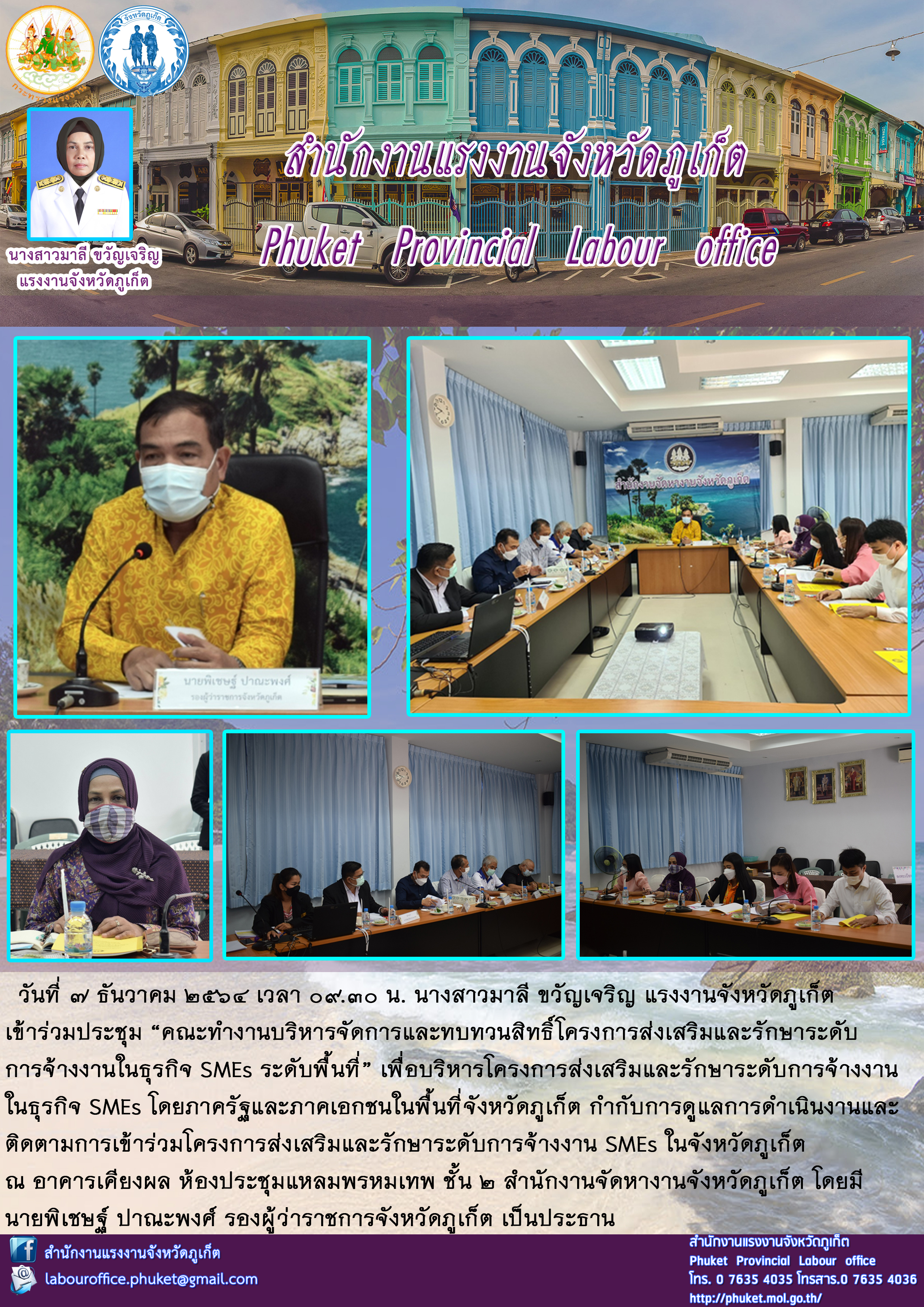 แรงงานจังหวัดภูเก็ต เข้าร่วมประชุม “คณะทำงานบริหารจัดการและทบทวนสิทธิ์โครงการส่งเสริมและรักษาระดับ การจ้างงานในธุรกิจ SMEs ระดับพื้นที่”