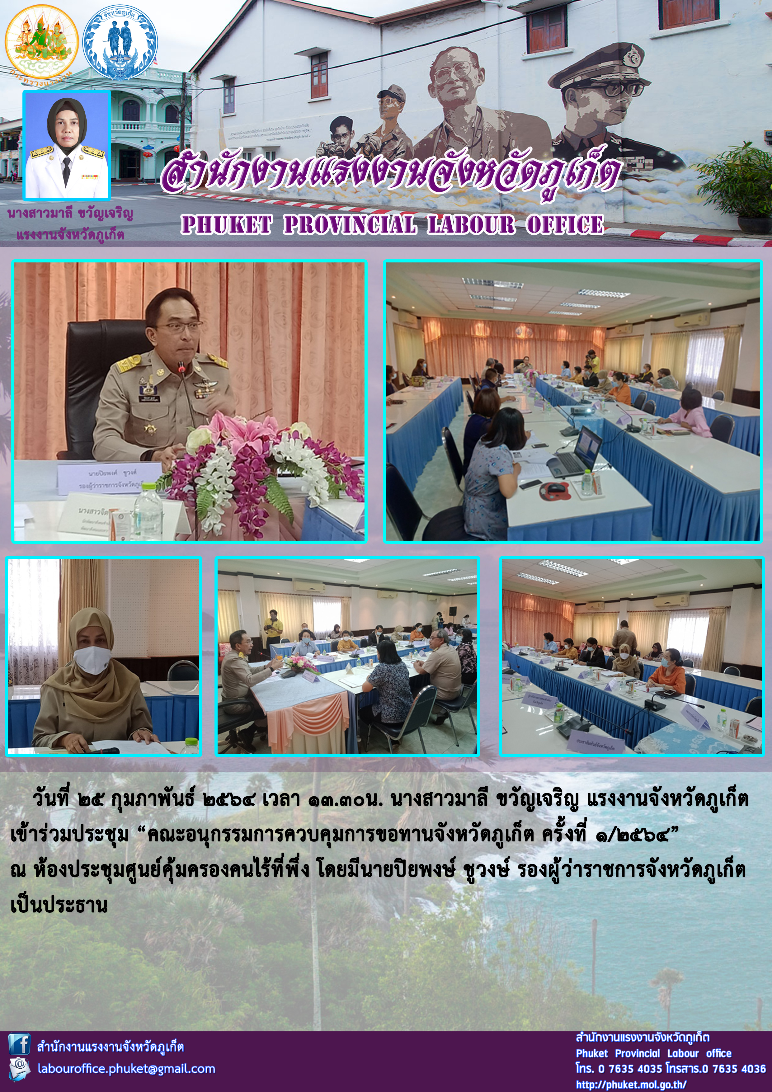 แรงงานจังหวัดภูเก็ต เข้าร่วมประชุม “คณะอนุกรรมการควบคุมการขอทานจังหวัดภูเก็ต ครั้งที่ 1/2564”