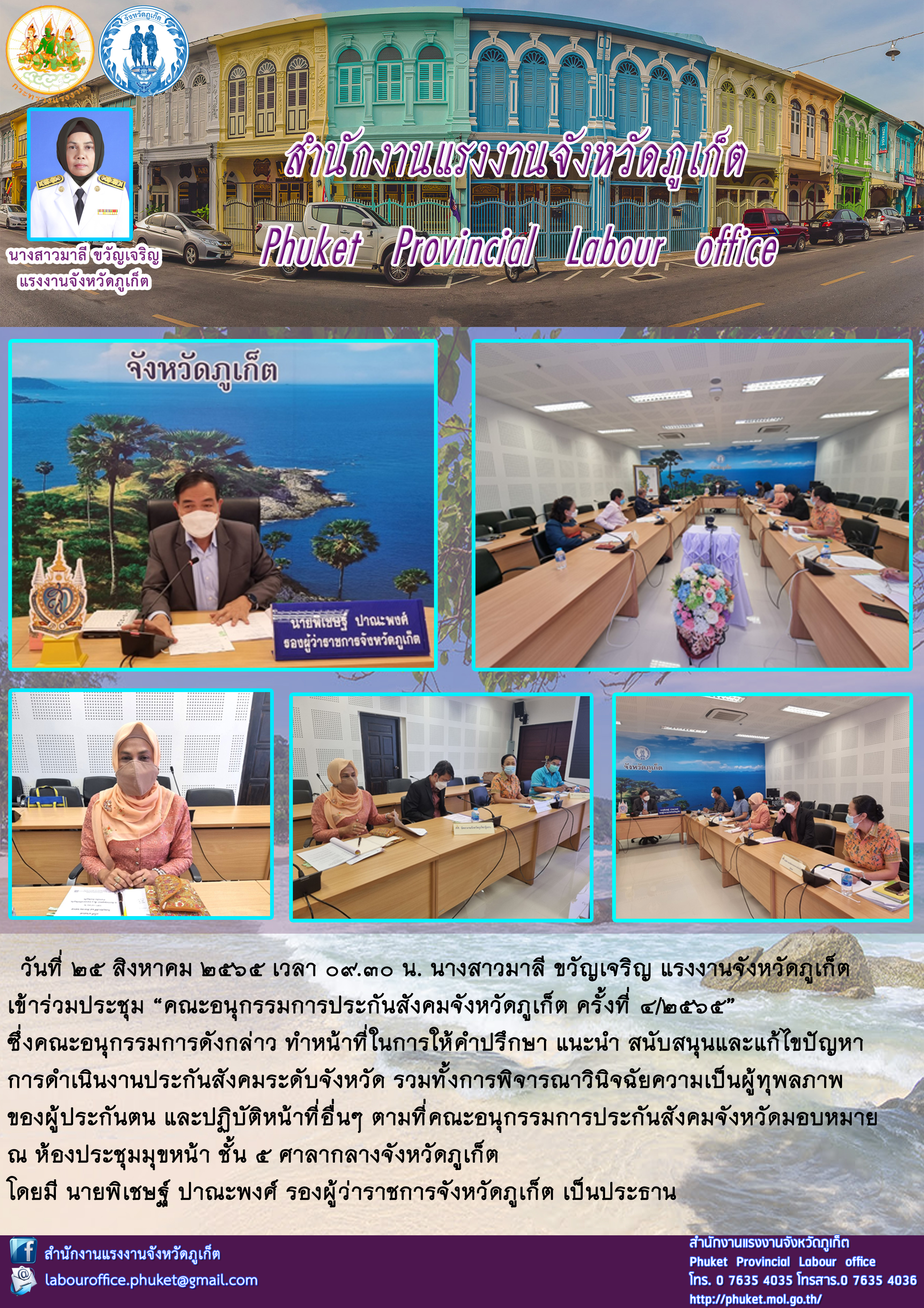นางสาวมาลี ขวัญเจริญ แรงงานจังหวัดภูเก็ต เข้าร่วมประชุม “คณะอนุกรรมการประกันสังคมจังหวัดภูเก็ต ครั้งที่ 4/2565”