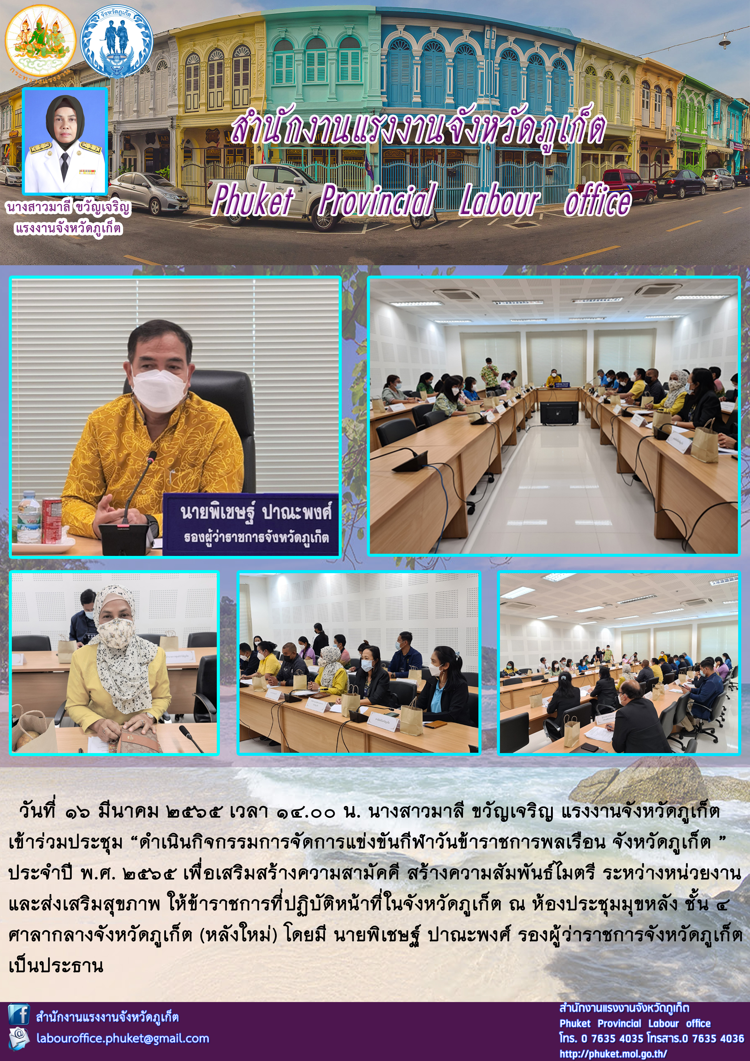 แรงงานจังหวัดภูเก็ต เข้าร่วมประชุม “ดำเนินกิจกรรมการจัดการแข่งขันกีฬาวันข้าราชการพลเรือน จังหวัดภูเก็ต ”