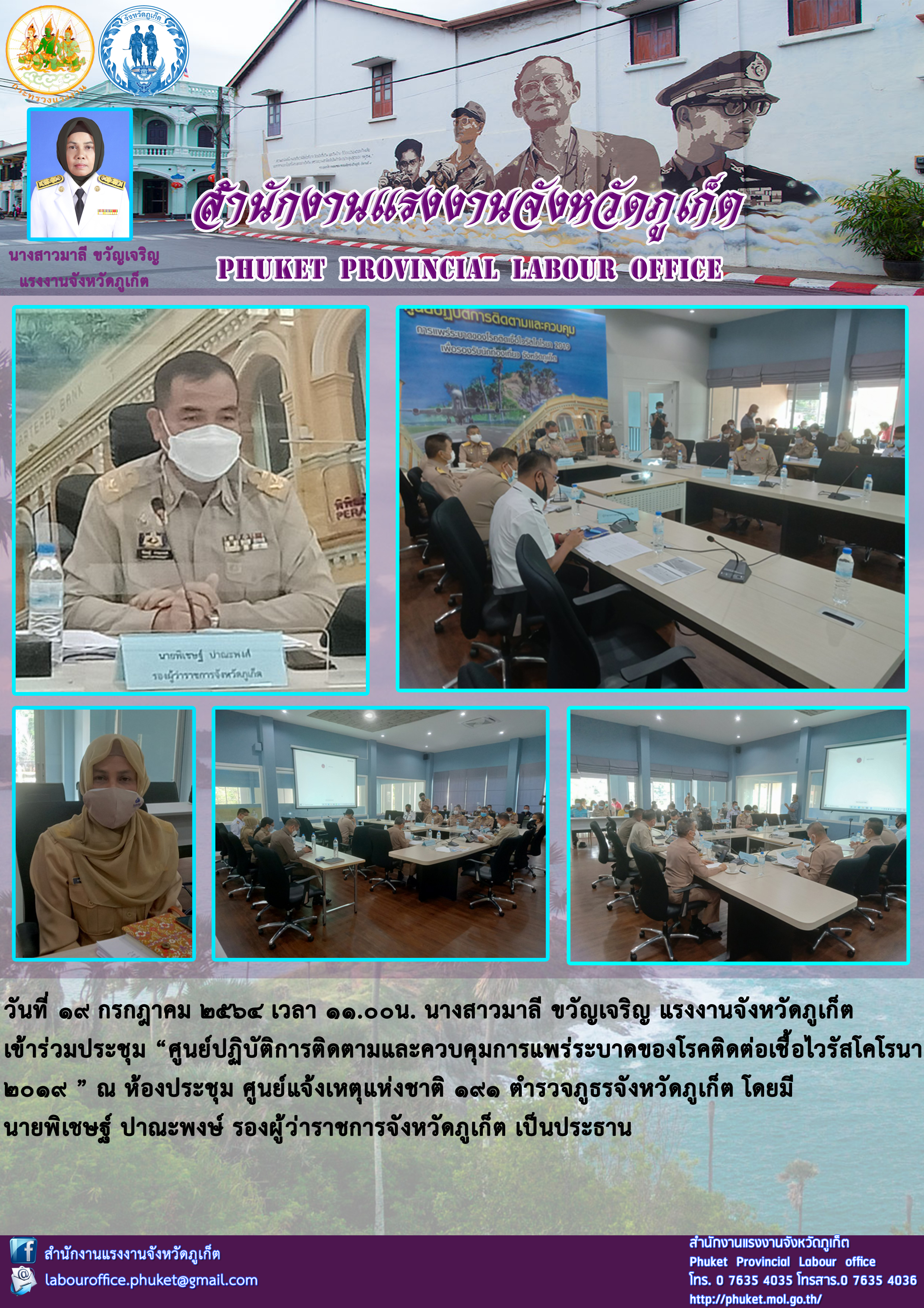 นางสาวมาลี ขวัญเจริญ แรงงานจังหวัดภูเก็ต เข้าร่วมประชุม “ศูนย์ปฏิบัติการติดตามและควบคุมการแพร่ระบาดของโรคติดต่อเชื้อไวรัสโคโรนา 2019 ”