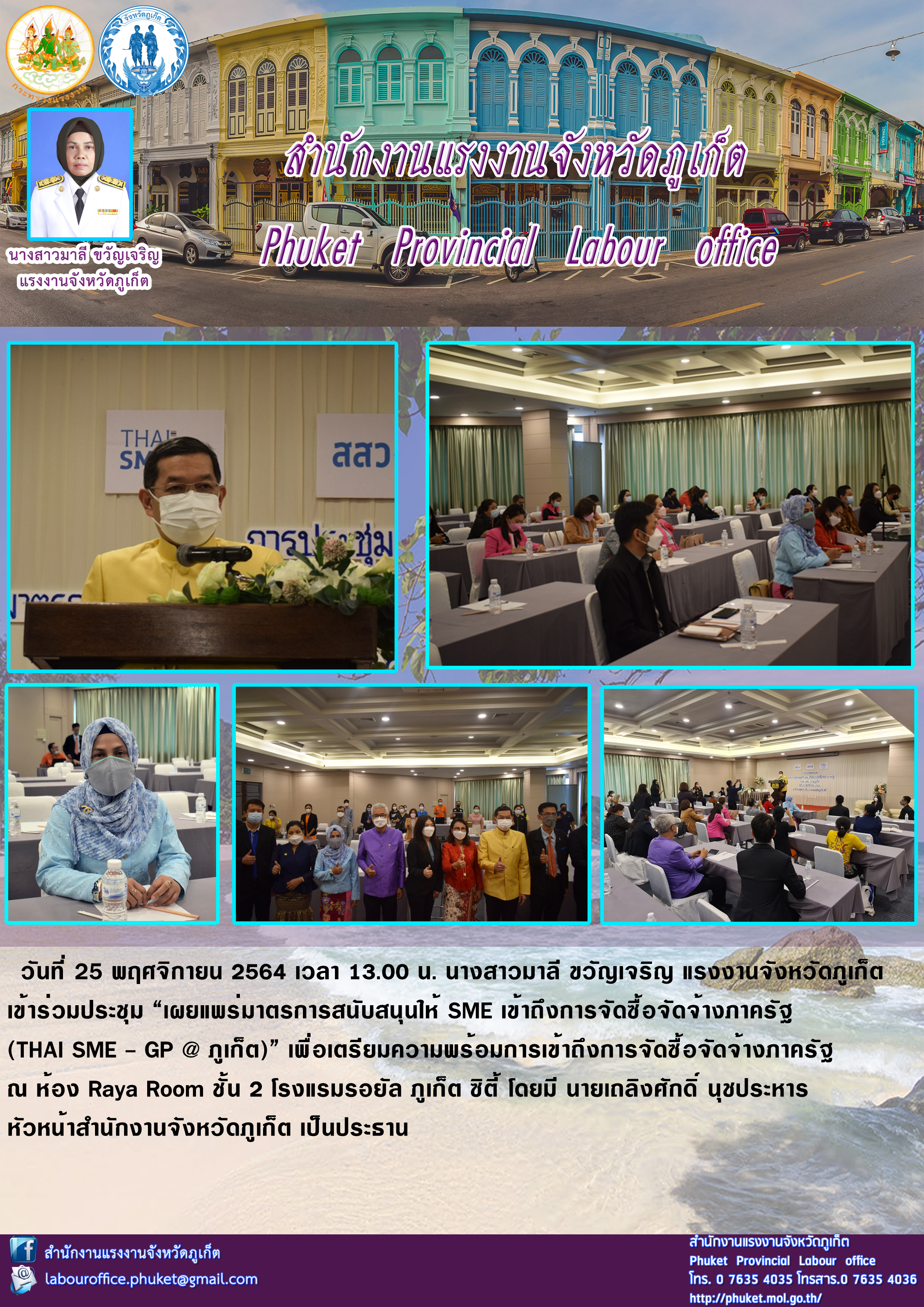 สำนักงานแรงงานจังหวัดภูเก็ต เข้าร่วมประชุม “เผยแพร่มาตรการสนับสนุนให้ SME เข้าถึงการจัดซื้อจัดจ้างภาครัฐ (THAI SME – GP @ ภูเก็ต)”
