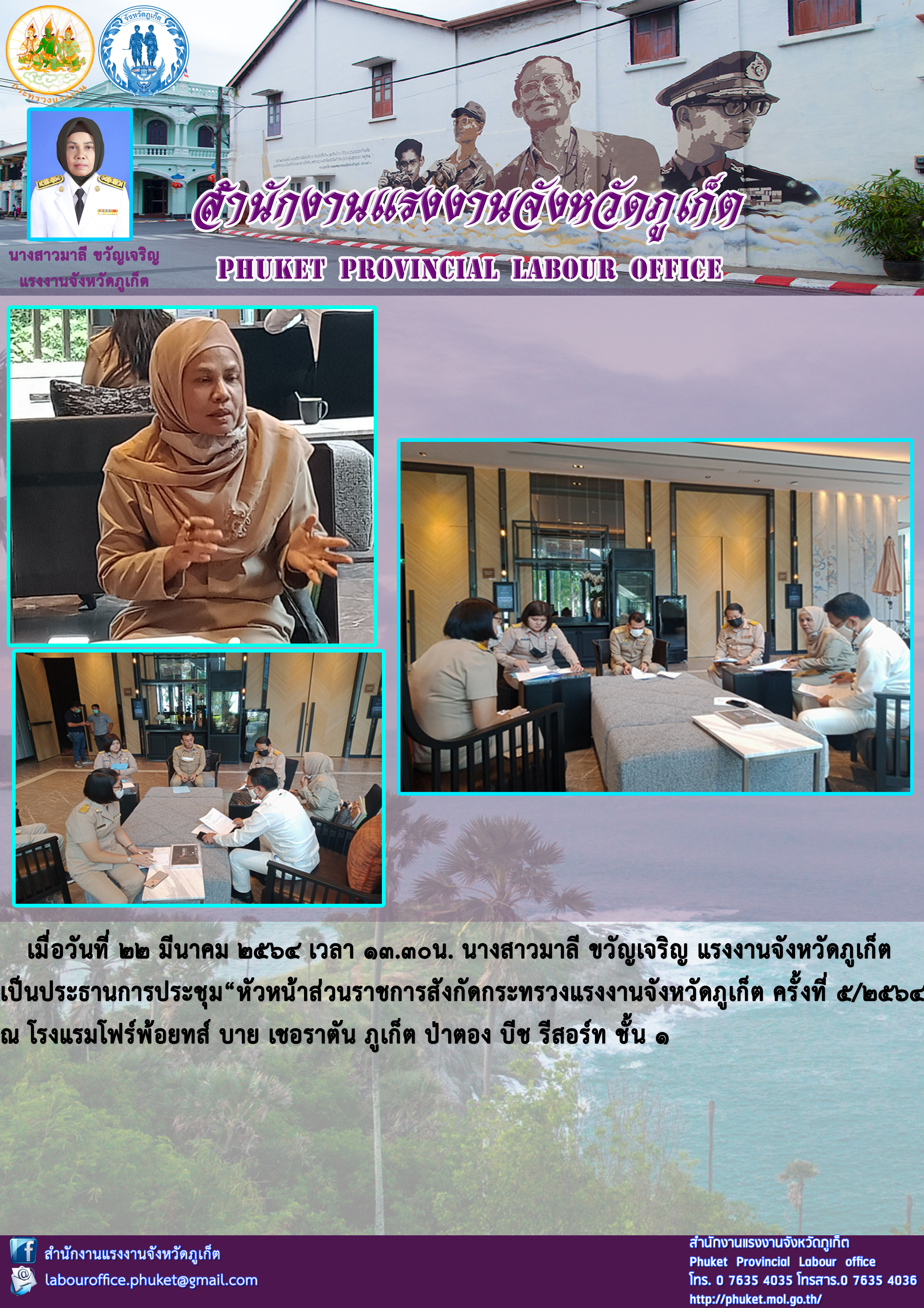 สำนักงานแรงงานจังหวัดภูเก็ต เป็นประธานการประชุม“หัวหน้าส่วนราชการสังกัดกระทรวงแรงงานจังหวัดภูเก็ต ครั้งที่ 5/2564”