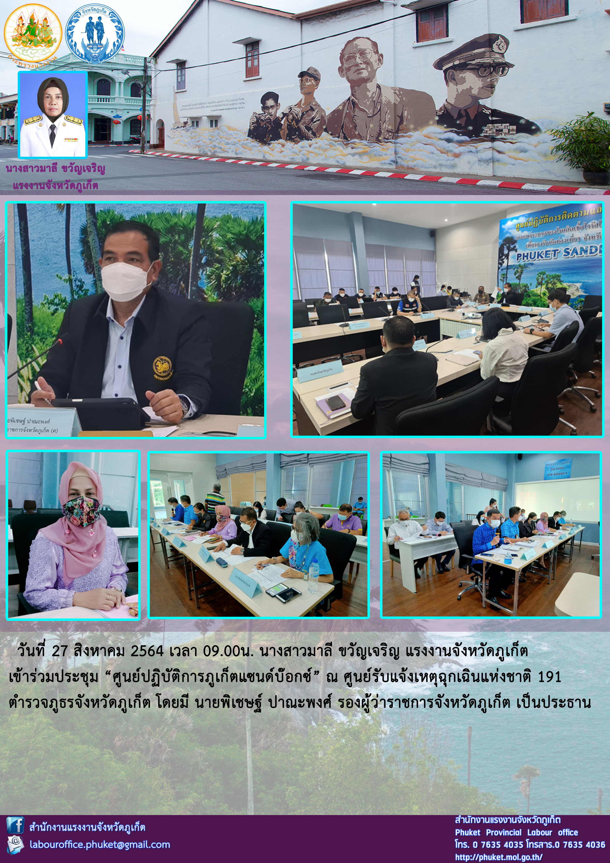นางสาวมาลี ขวัญเจริญ แรงงานจังหวัดภูเก็ต เข้าร่วมประชุม “ศูนย์ปฏิบัติการภูเก็ตแซนด์บ๊อกซ์”