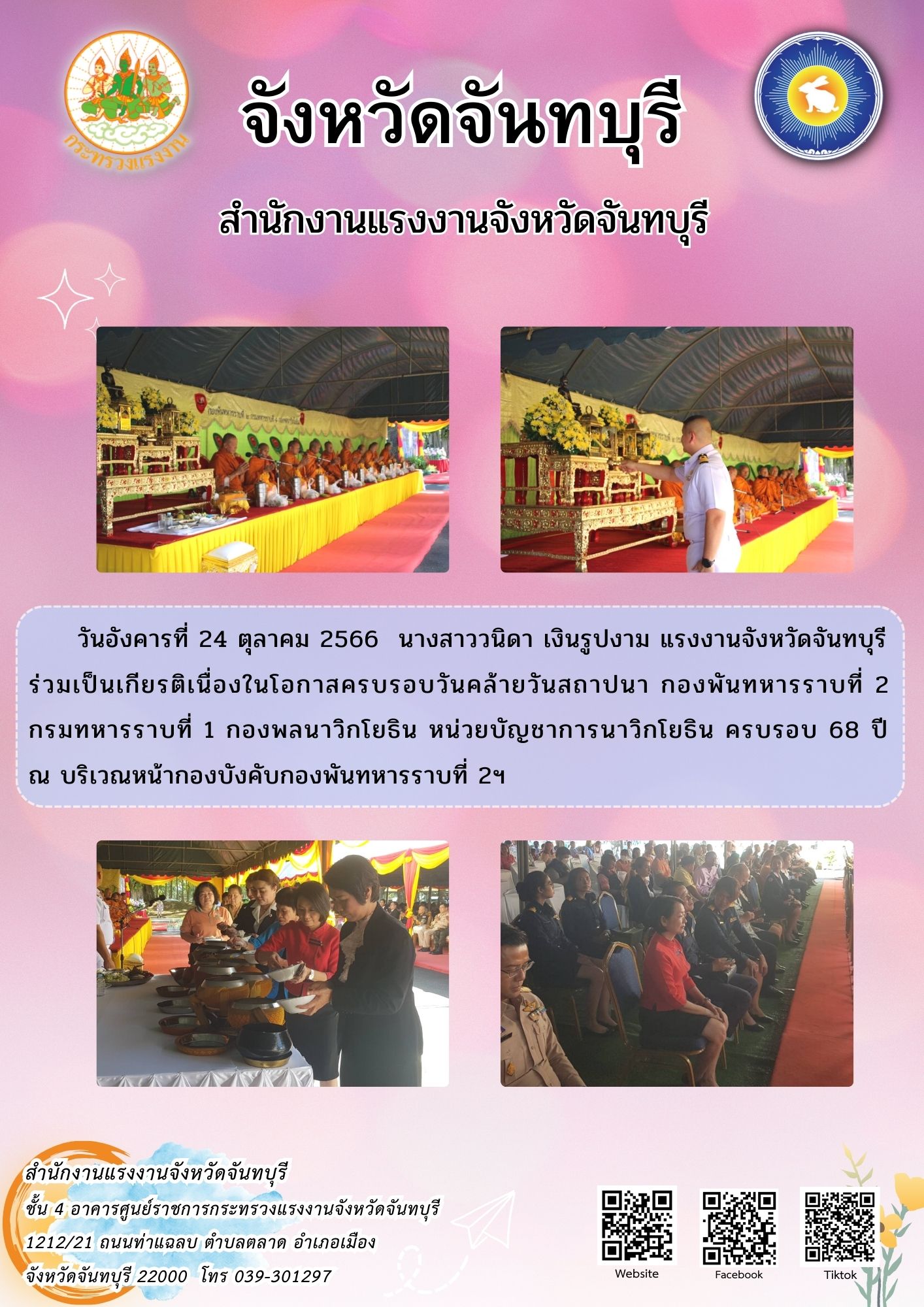 สรจ.จันทบุรี ร่วมเป็นเกียรติเนื่องในโอกาสครบรอบวันคล้ายวันสถาปนา กองพันทหารราบที่ 2