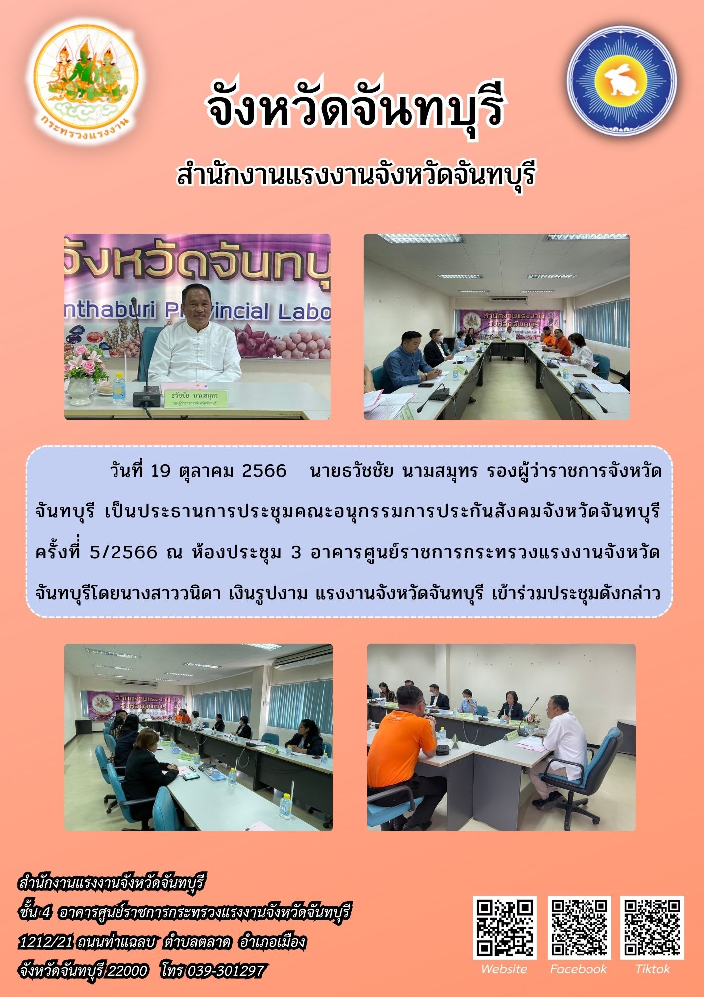 สรจ.จันทบุรี เข้าประชุมคณะอนุกรรมการประกันสังคมจังหวัดจันทบุรี ครั้งที่่ 5/2566
