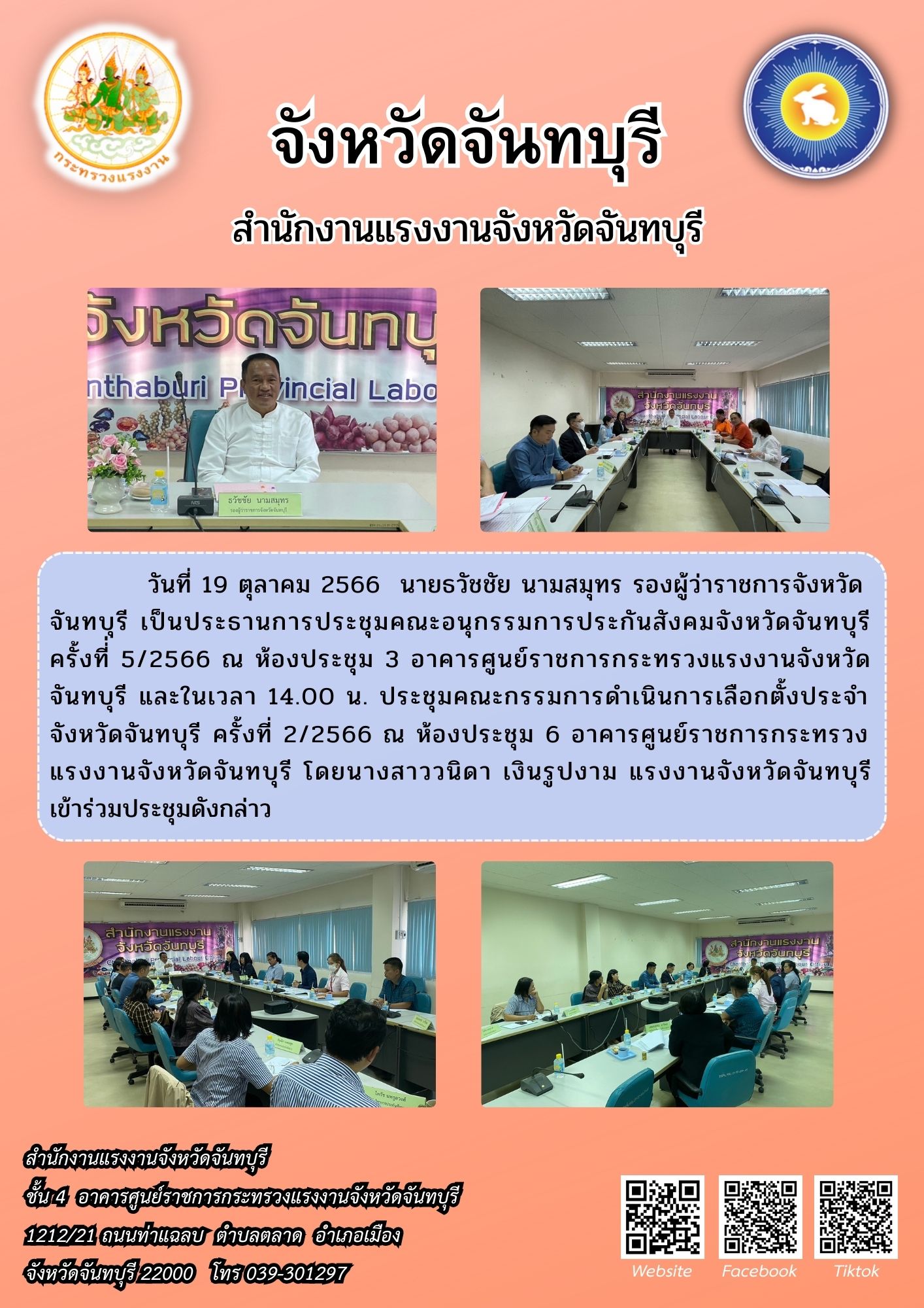 สรจ.จันทบุรี เข้าประชุมคณะอนุกรรมการประกันสังคมจังหวัดจันทบุรี ครั้งที่่ 5/2566 และประชุมคณะกรรมการดำเนินการเลือกตั้งประจำ จังหวัดจันทบุรี ครั้งที่ 2/2566
