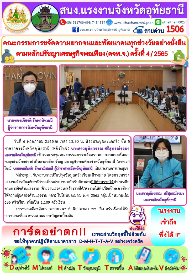 นางสาวอุทัยวรรณ ศรีสุภรณ์รจนา แรงงานจังหวัดอุทัยธานี ประชุมคณะกรรมการขจัดความยากจนฯ สป.รง.