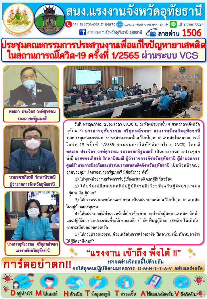นางสาวอุทัยวรรณ ศรีสุภรณ์รจนา แรงงานจังหวัดอุทัยธานี ประชุมคณะกรรมการประสานงานเพื่อแก้ไขปัญหายาเสพติดฯ