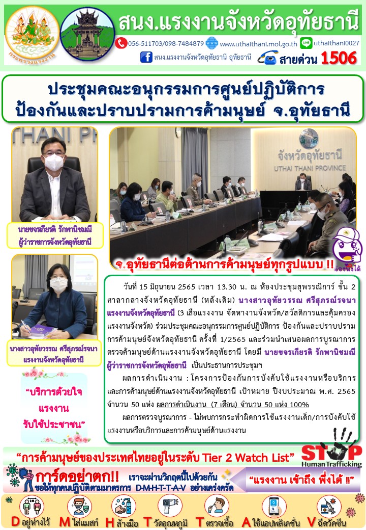 นางสาวอุทัยวรรณ ศรีสุภรณ์รจนา แรงงานจังหวัดอุทัยธานี ประชุมคณะอนุกรรมการศูนย์ปฏิบัติการป้องกันและปราบปรามการค้ามนุษย์