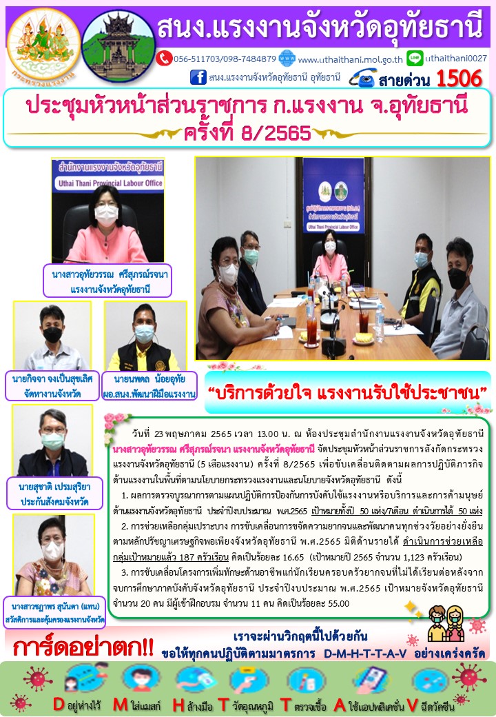 นางสาวอุทัยวรรณ ศรีสุภรณ์รจนา แรงงานจังหวัดอุทัยธานี ประชุมหัวหน้าส่วน ก.แรงงาน