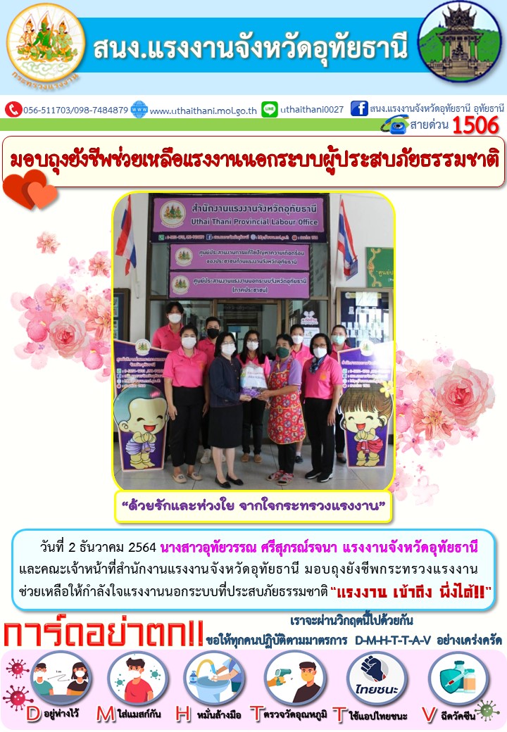 นางสาวอุทัยวรรณ ศรีสุภรณ์รจนา แรงงานจังหวัดอุทัยธานี มอบถุงยังชีพช่วยเหลือแรงงานนอกระบบ