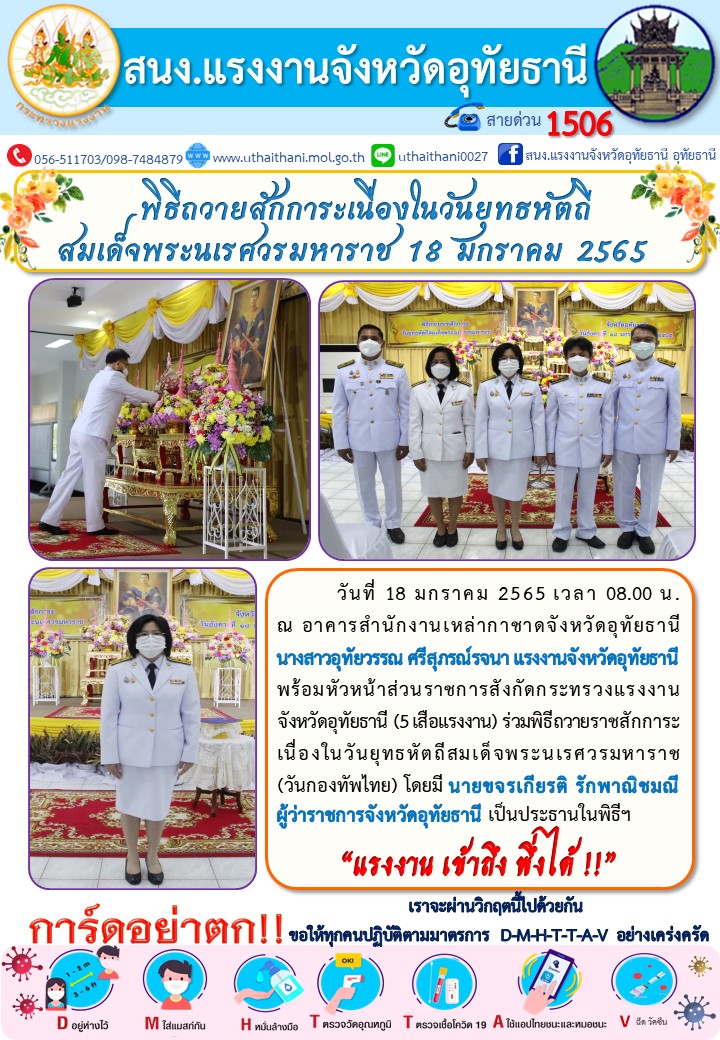 แรงงานจังหวัดอุทัยธานี ร่วมพิธีถวายสักการะเนื่องในวันยุทธหัตถี