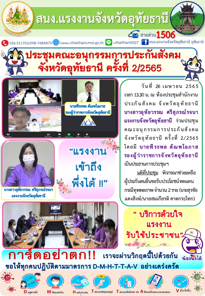 แรงงานจังหวัดอุทัยธานี ร่วมประชุมคณะอนุกรรมการประกันสังคมจังหวัดอุทัยธานี