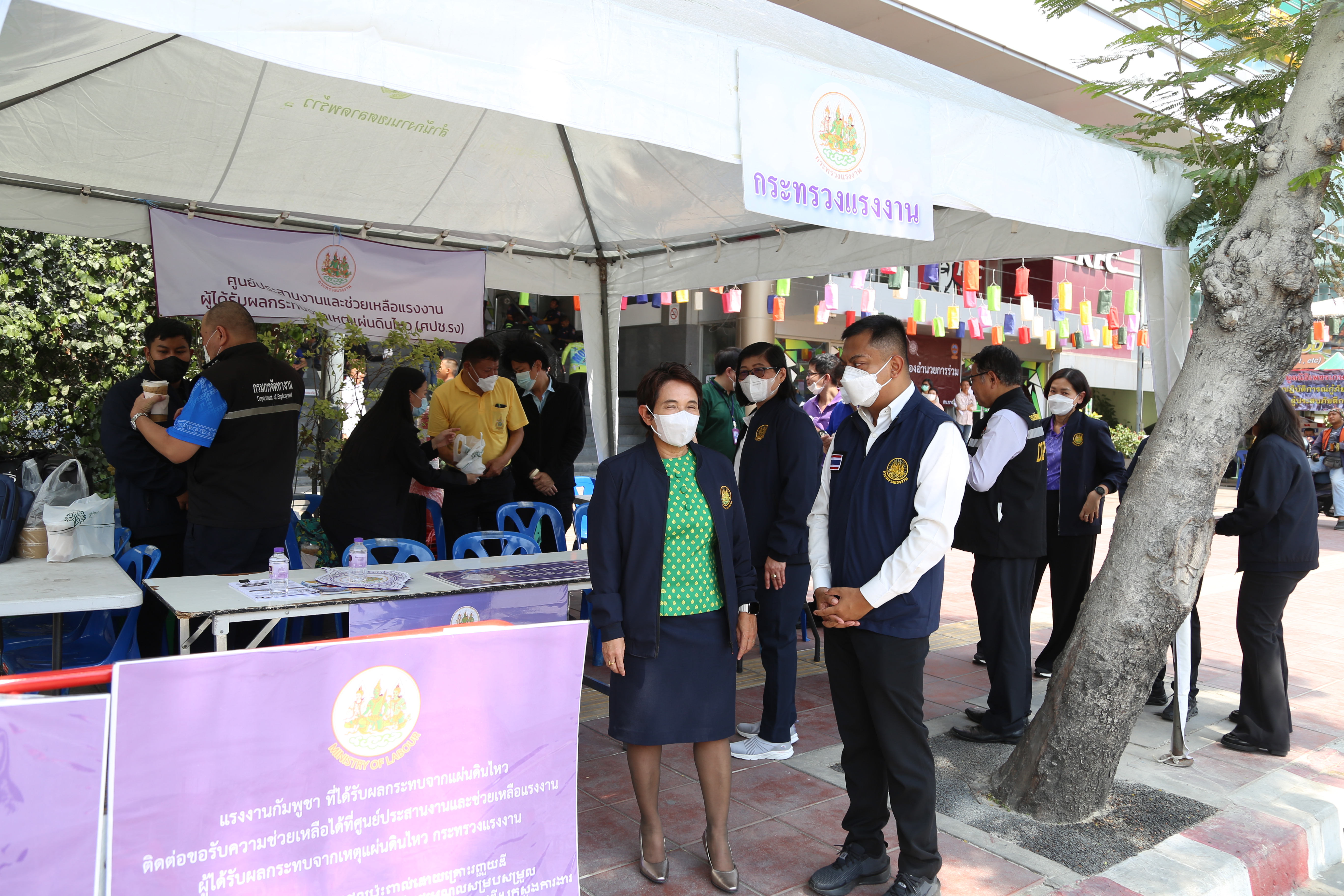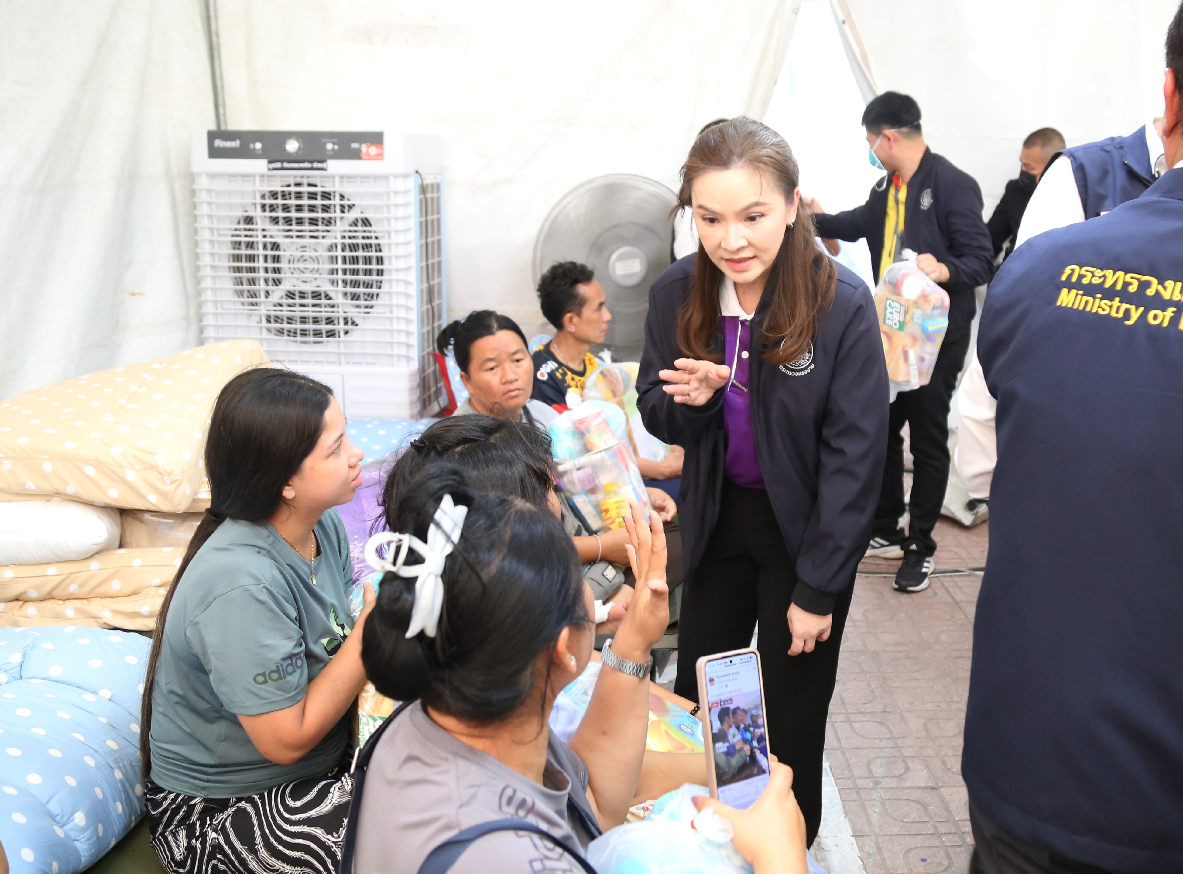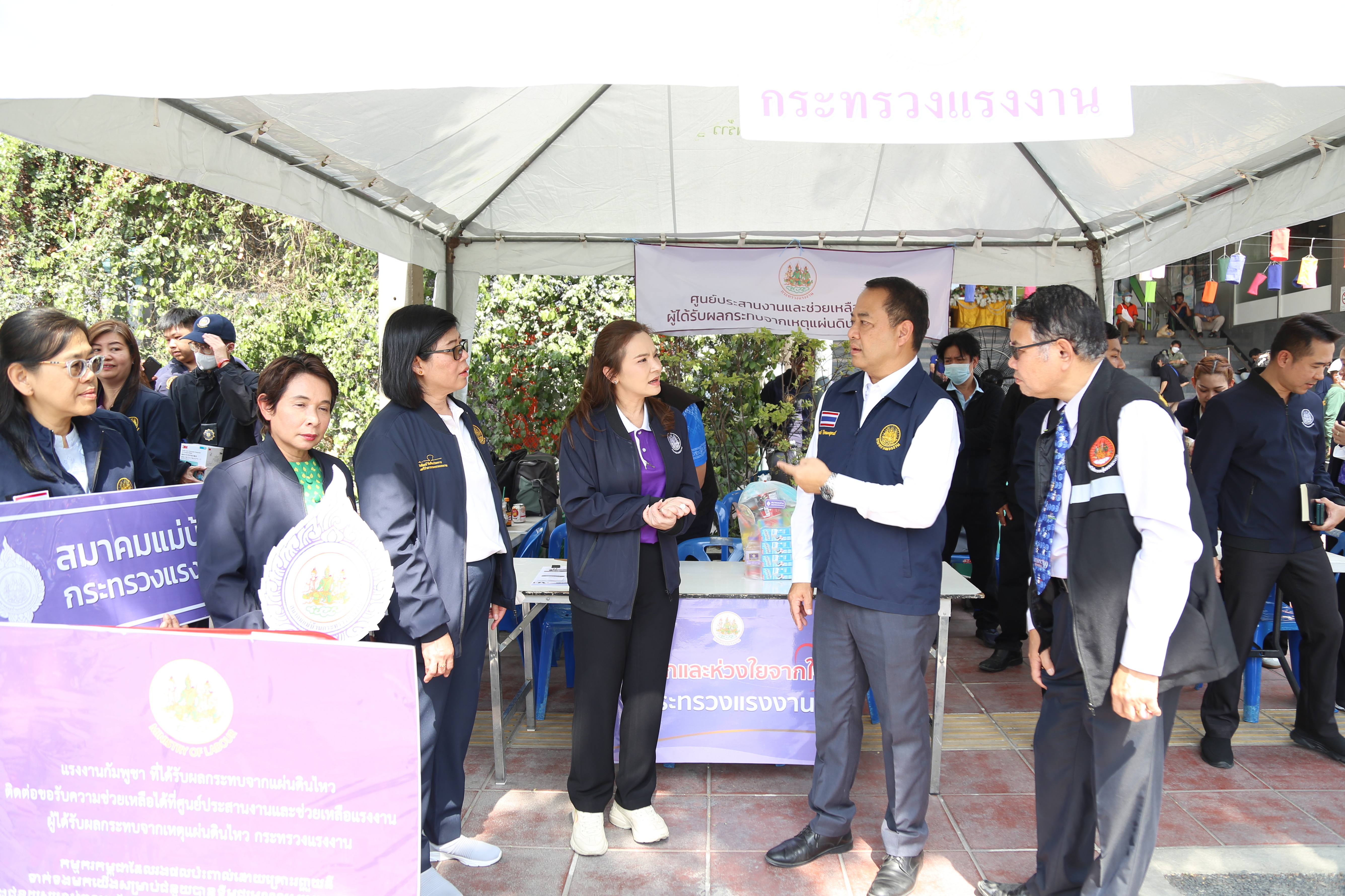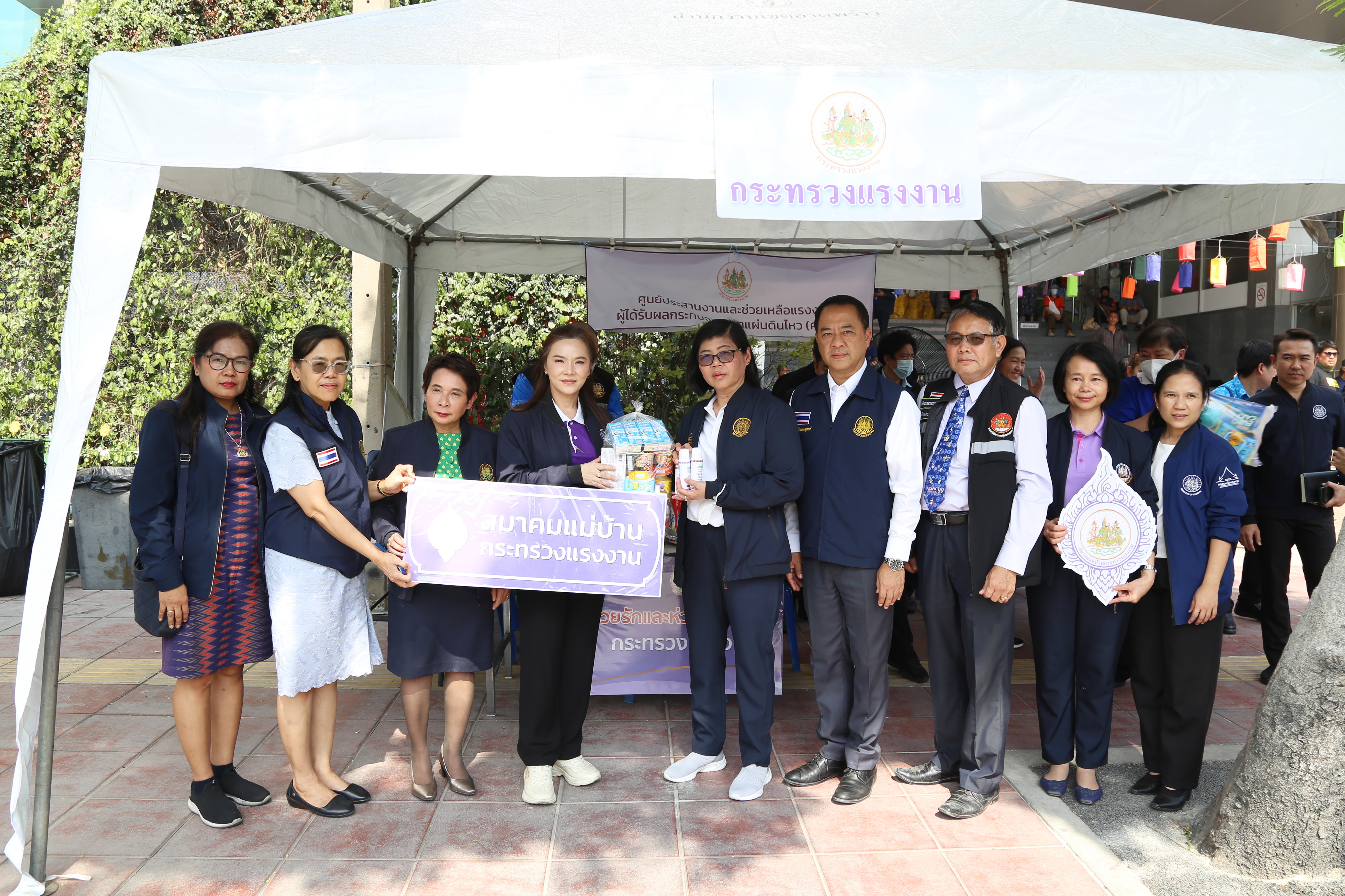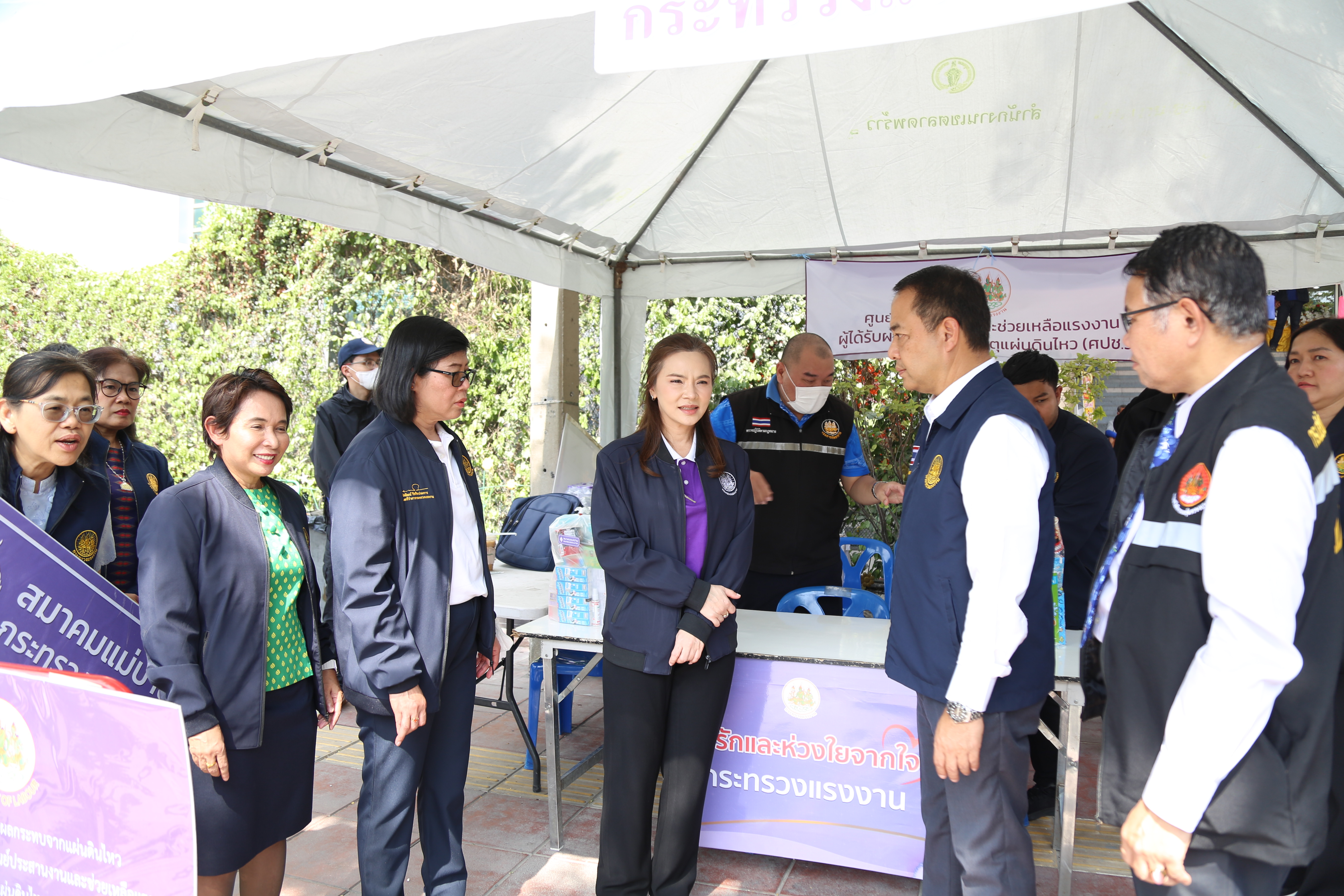 วันที่ 4 เมษายน 2568 เวลา 14.00 น. นางสาวเทียมแข ทัพชัยยุทธ์ นายกสมาคมแม่บ้านกระทรวงแรงงาน พร้อมด้วย นายสมาสภ์ ปัทมะสุคนธ์ รองปลัดกระทรวงแรงงาน นางสาวกาญจนา พูลแก้ว ผู้ตรวจราชการกระทรวงแรงงาน นางสาวจีระภา บุญรัตน์ ผู้ตรวจราชการกระทรวงแรงงาน และกรรมการสมาคมแม่บ้านกระทรวงแรงงาน ลงพื้นที่เยี่ยมให้กำลังใจเจ้าหน้าที่ผู้ปฏิบัติงานภายในศูนย์ประสานงานและช่วยเหลือแรงงาน ผู้ได้รับผลกระทบจากเหตุแผ่นดินไหว (ศปช.รง.) พร้อมมอบสเปรย์สูตรเย็น และสิ่งของเครื่องอุปโภคบริโภคแก่ญาติพี่น้อง และครอบครัวแรงงานผู้ได้รับผลกระทบจากเหตุแผ่นดินไหว เพื่อสร้างขวัญกำลังใจ ณ พื้นที่กองอำนวยการร่วม อาคารสำนักงานตรวจเงินแผ่นดิน (หลังใหม่) ถนนกำแพงเพชร เขตจตุจักร กรุงเทพมหานคร
