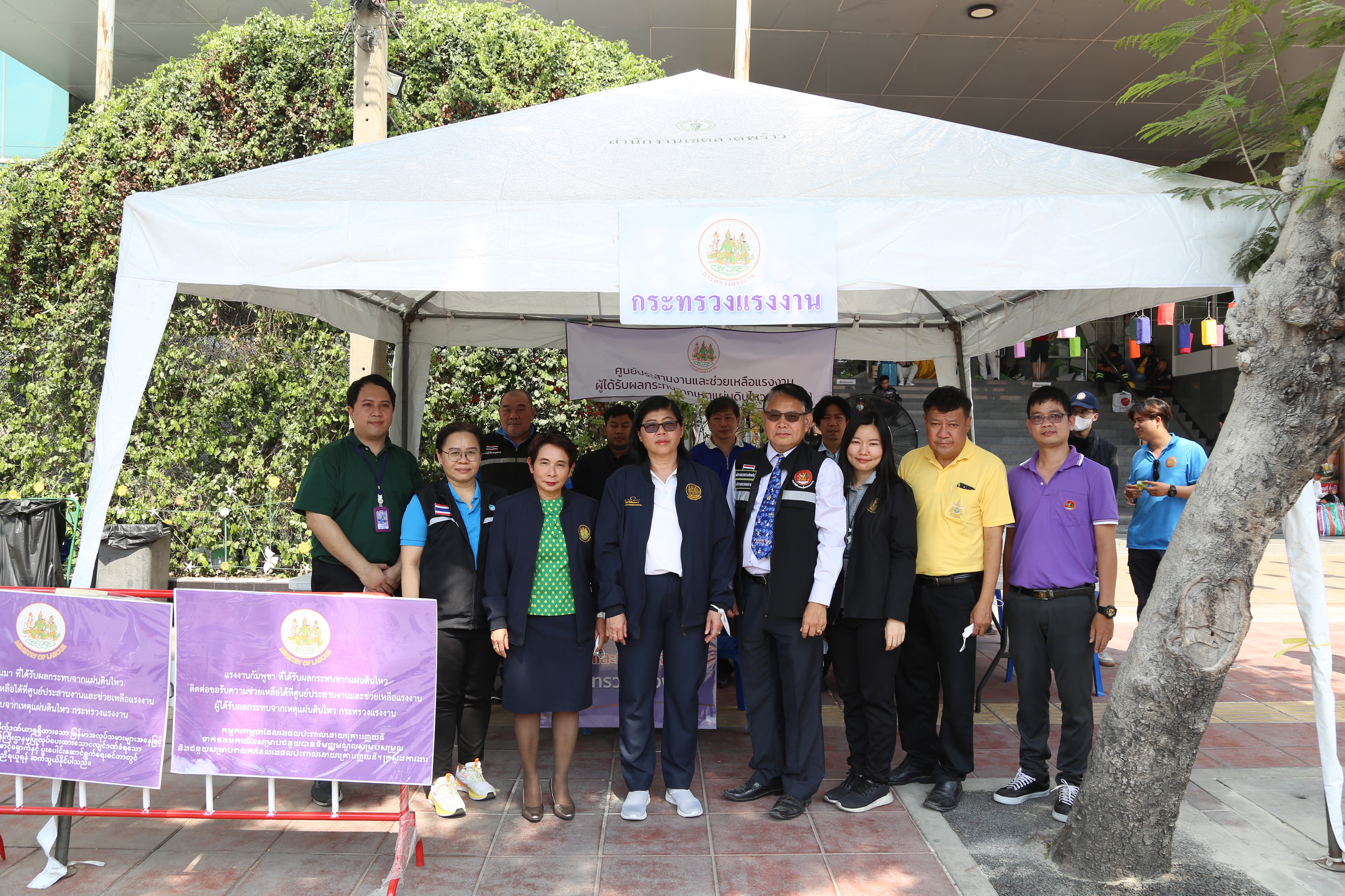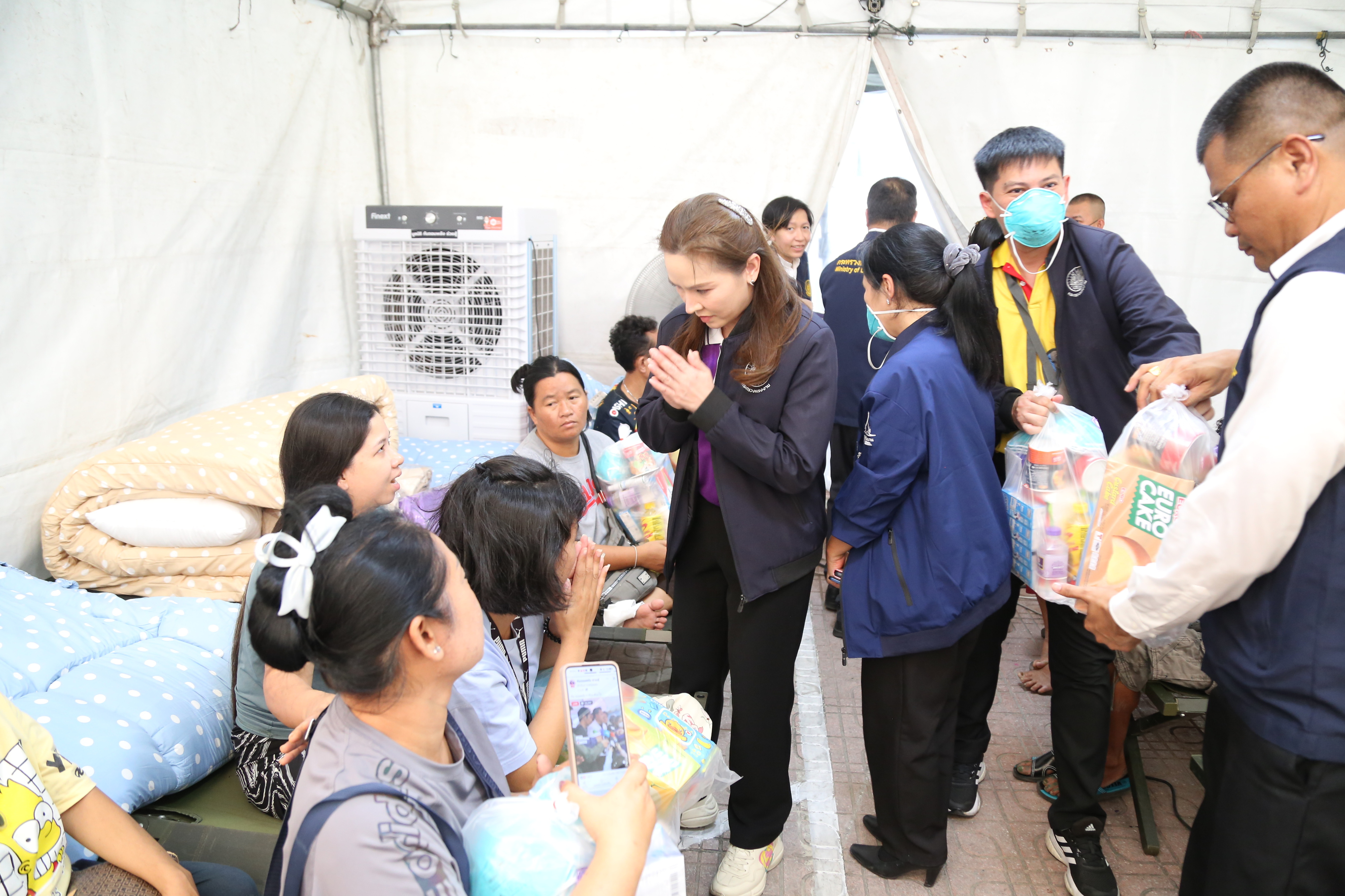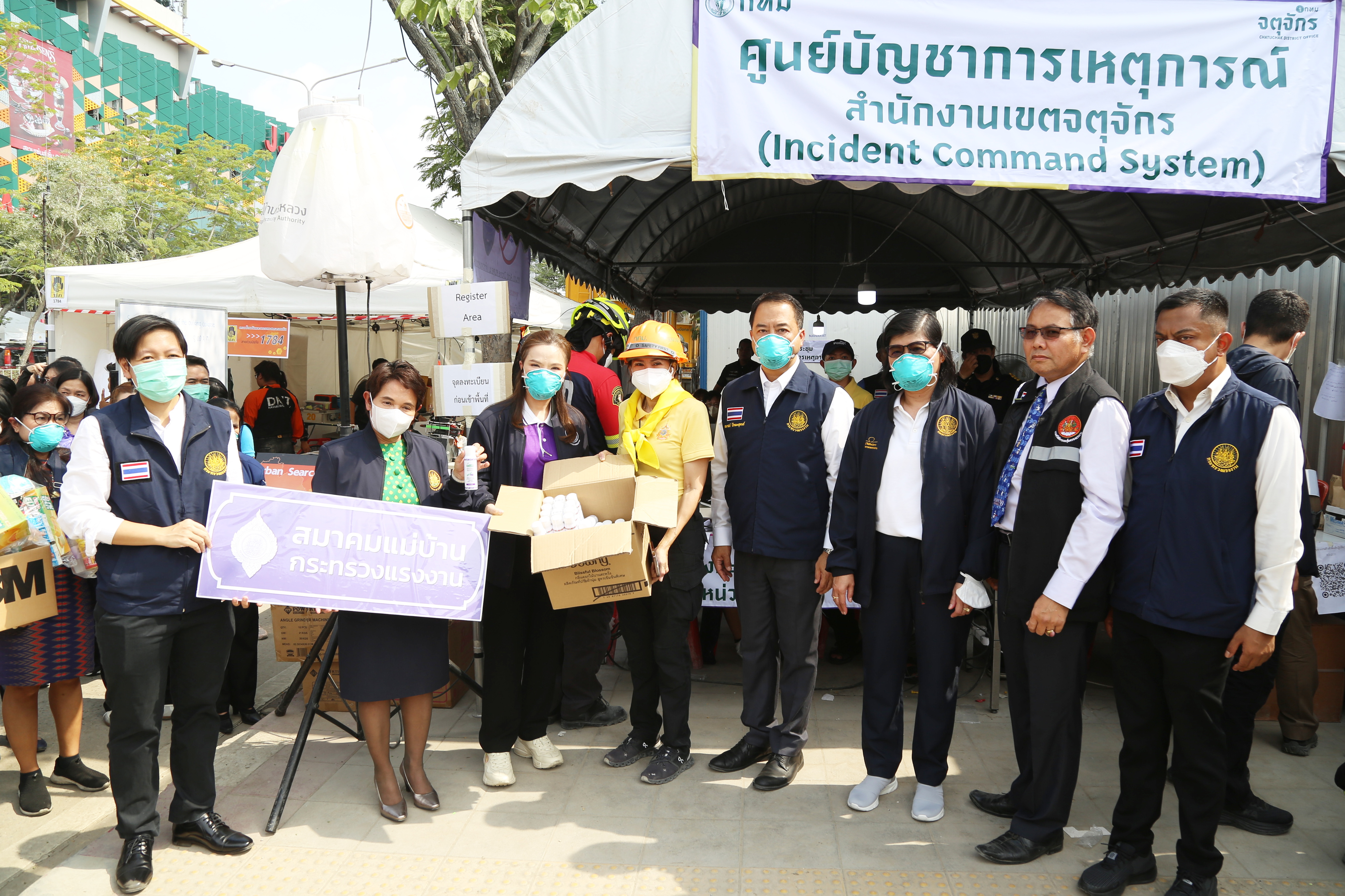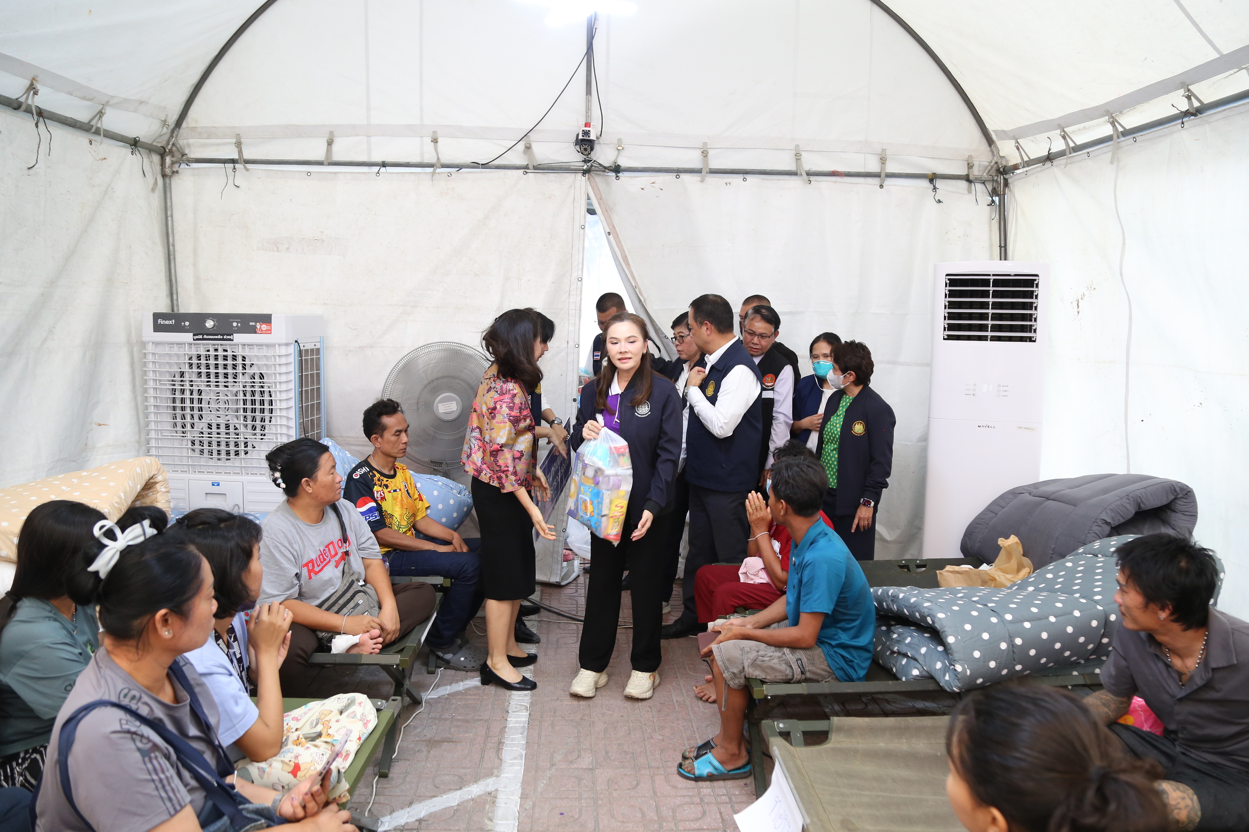 วันที่ 4 เมษายน 2568 เวลา 14.00 น. นางสาวเทียมแข ทัพชัยยุทธ์ นายกสมาคมแม่บ้านกระทรวงแรงงาน พร้อมด้วย นายสมาสภ์ ปัทมะสุคนธ์ รองปลัดกระทรวงแรงงาน นางสาวกาญจนา พูลแก้ว ผู้ตรวจราชการกระทรวงแรงงาน นางสาวจีระภา บุญรัตน์ ผู้ตรวจราชการกระทรวงแรงงาน และกรรมการสมาคมแม่บ้านกระทรวงแรงงาน ลงพื้นที่เยี่ยมให้กำลังใจเจ้าหน้าที่ผู้ปฏิบัติงานภายในศูนย์ประสานงานและช่วยเหลือแรงงาน ผู้ได้รับผลกระทบจากเหตุแผ่นดินไหว (ศปช.รง.) พร้อมมอบสเปรย์สูตรเย็น และสิ่งของเครื่องอุปโภคบริโภคแก่ญาติพี่น้อง และครอบครัวแรงงานผู้ได้รับผลกระทบจากเหตุแผ่นดินไหว เพื่อสร้างขวัญกำลังใจ ณ พื้นที่กองอำนวยการร่วม อาคารสำนักงานตรวจเงินแผ่นดิน (หลังใหม่) ถนนกำแพงเพชร เขตจตุจักร กรุงเทพมหานคร