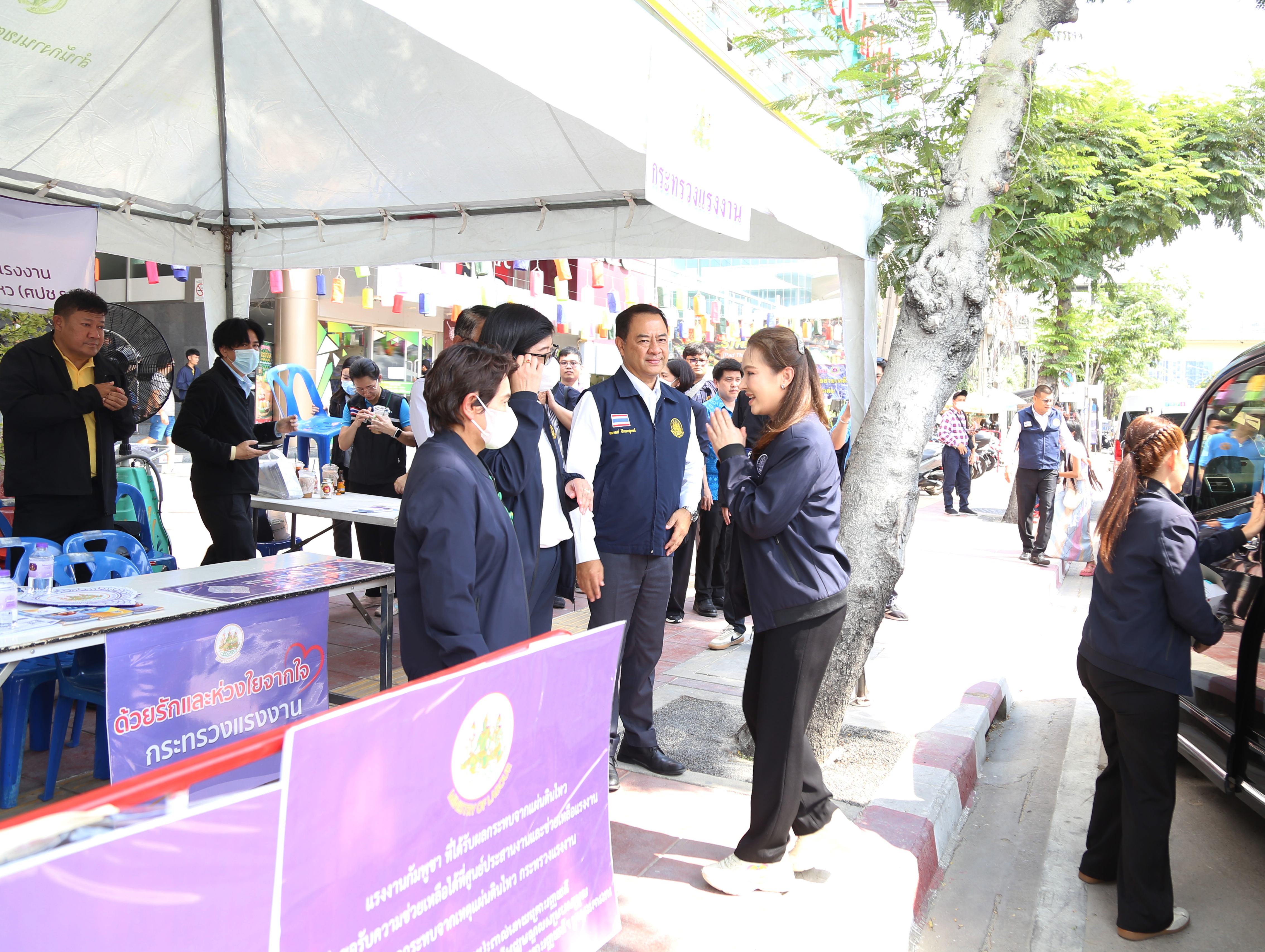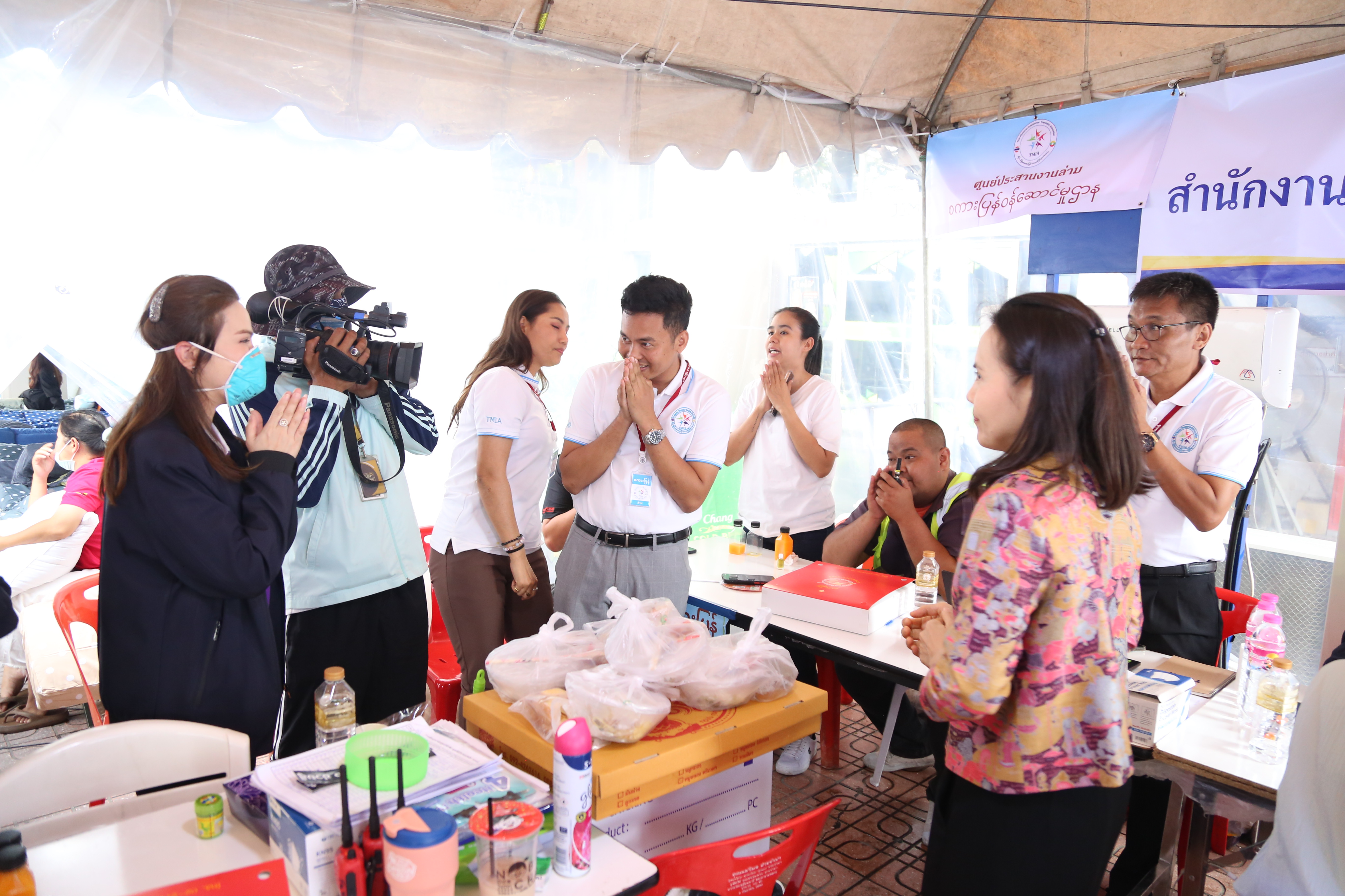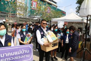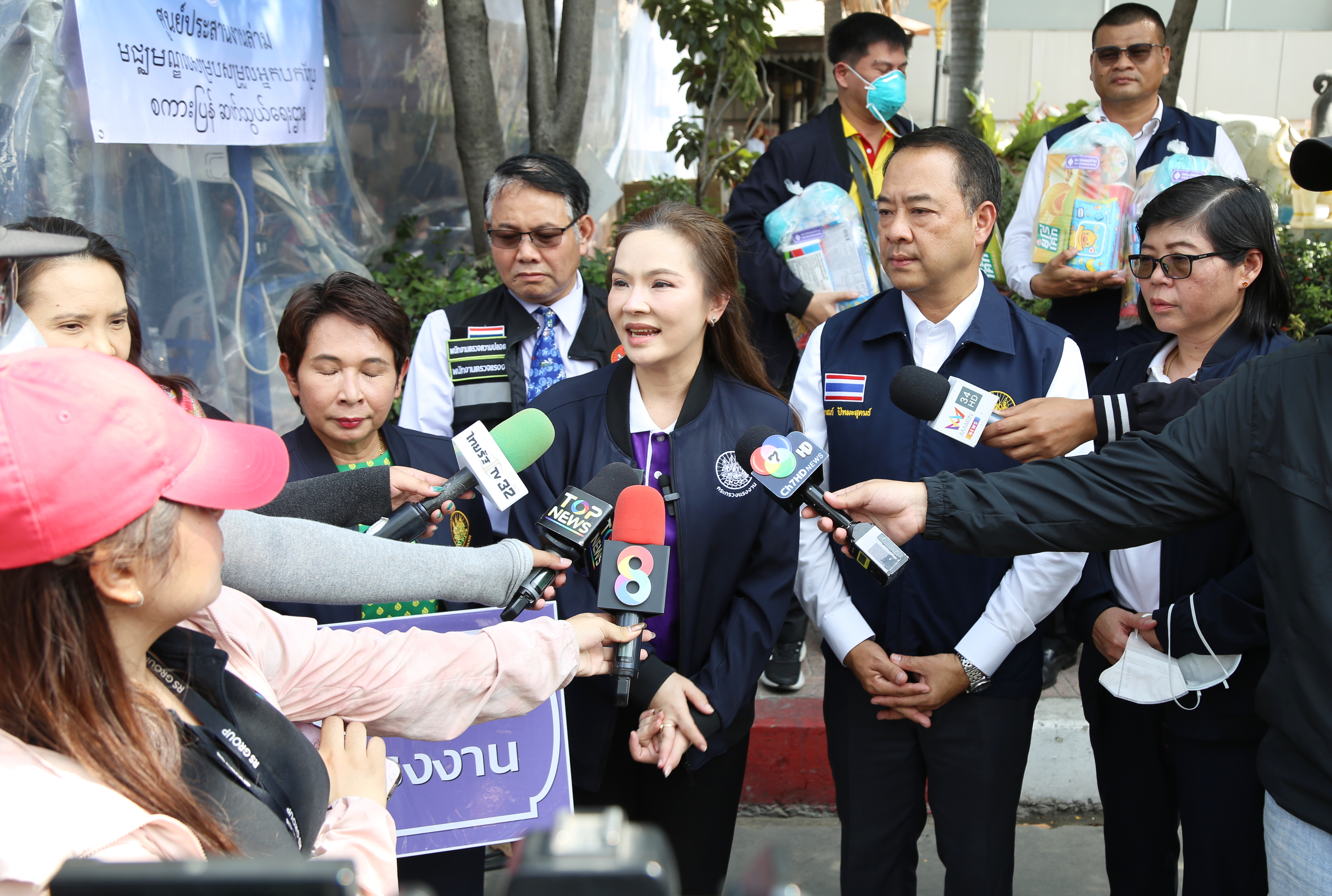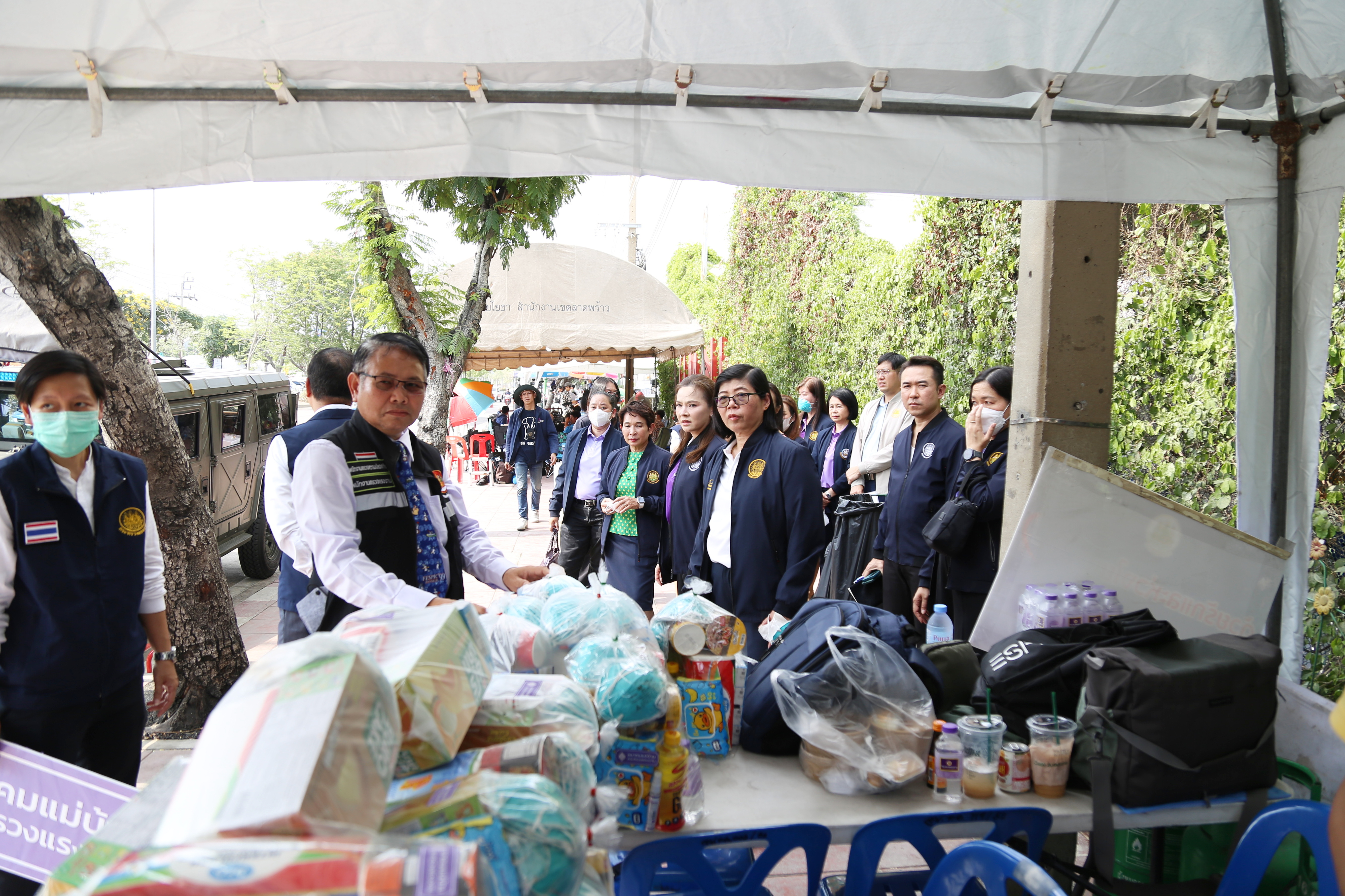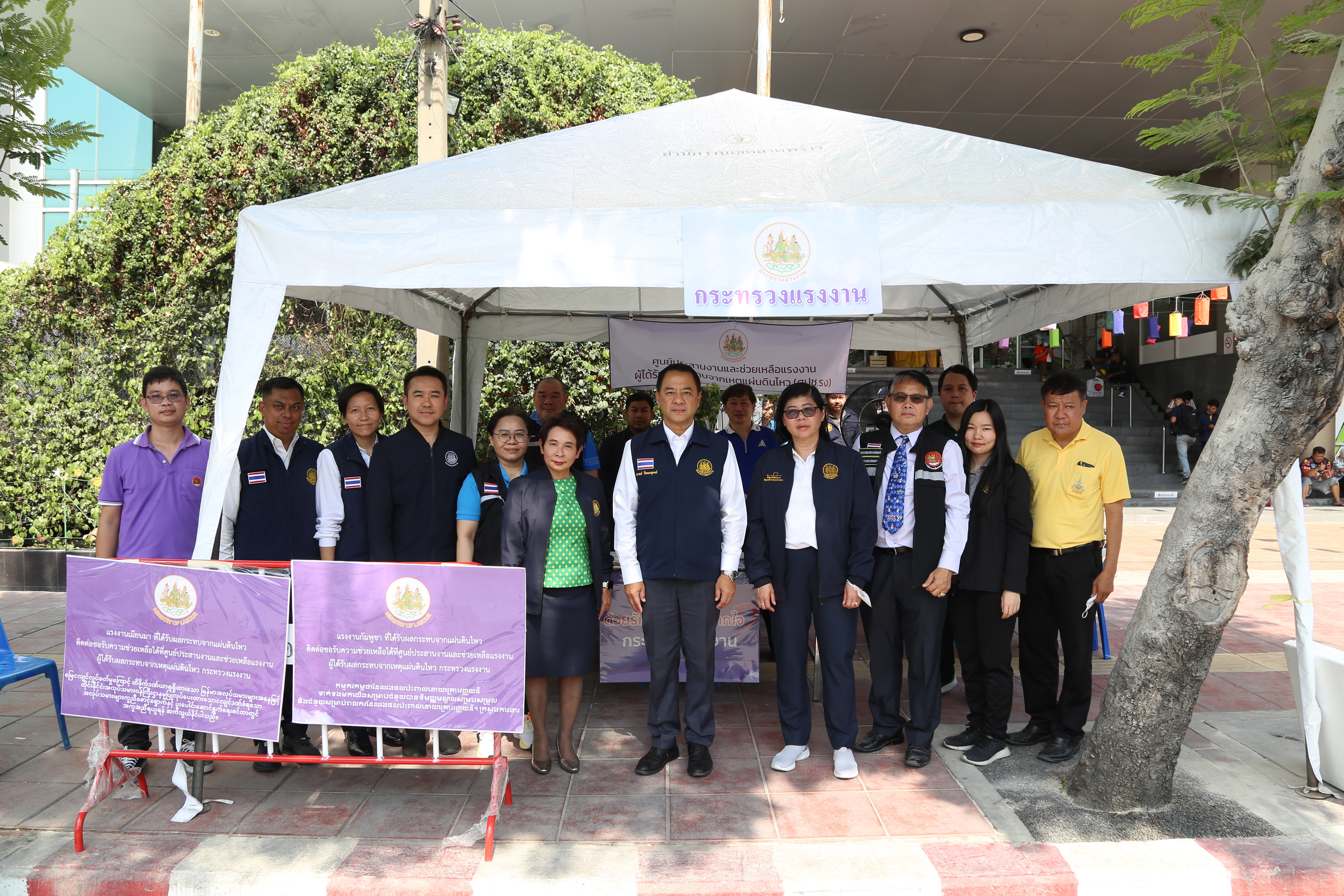 วันที่ 4 เมษายน 2568 เวลา 14.00 น. นางสาวเทียมแข ทัพชัยยุทธ์ นายกสมาคมแม่บ้านกระทรวงแรงงาน พร้อมด้วย นายสมาสภ์ ปัทมะสุคนธ์ รองปลัดกระทรวงแรงงาน นางสาวกาญจนา พูลแก้ว ผู้ตรวจราชการกระทรวงแรงงาน นางสาวจีระภา บุญรัตน์ ผู้ตรวจราชการกระทรวงแรงงาน และกรรมการสมาคมแม่บ้านกระทรวงแรงงาน ลงพื้นที่เยี่ยมให้กำลังใจเจ้าหน้าที่ผู้ปฏิบัติงานภายในศูนย์ประสานงานและช่วยเหลือแรงงาน ผู้ได้รับผลกระทบจากเหตุแผ่นดินไหว (ศปช.รง.) พร้อมมอบสเปรย์สูตรเย็น และสิ่งของเครื่องอุปโภคบริโภคแก่ญาติพี่น้อง และครอบครัวแรงงานผู้ได้รับผลกระทบจากเหตุแผ่นดินไหว เพื่อสร้างขวัญกำลังใจ ณ พื้นที่กองอำนวยการร่วม อาคารสำนักงานตรวจเงินแผ่นดิน (หลังใหม่) ถนนกำแพงเพชร เขตจตุจักร กรุงเทพมหานคร