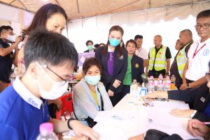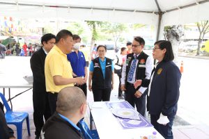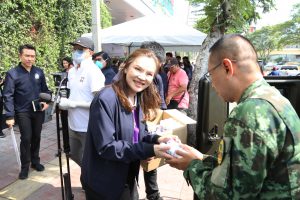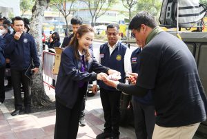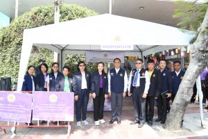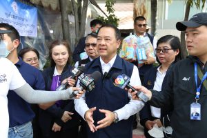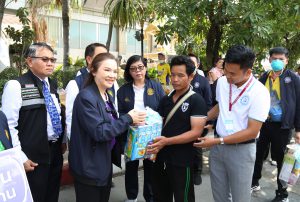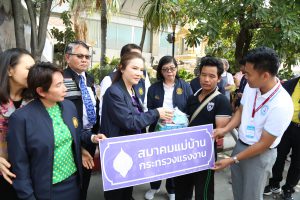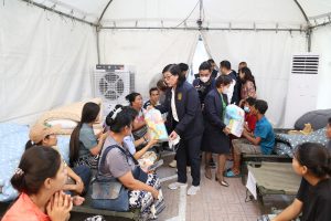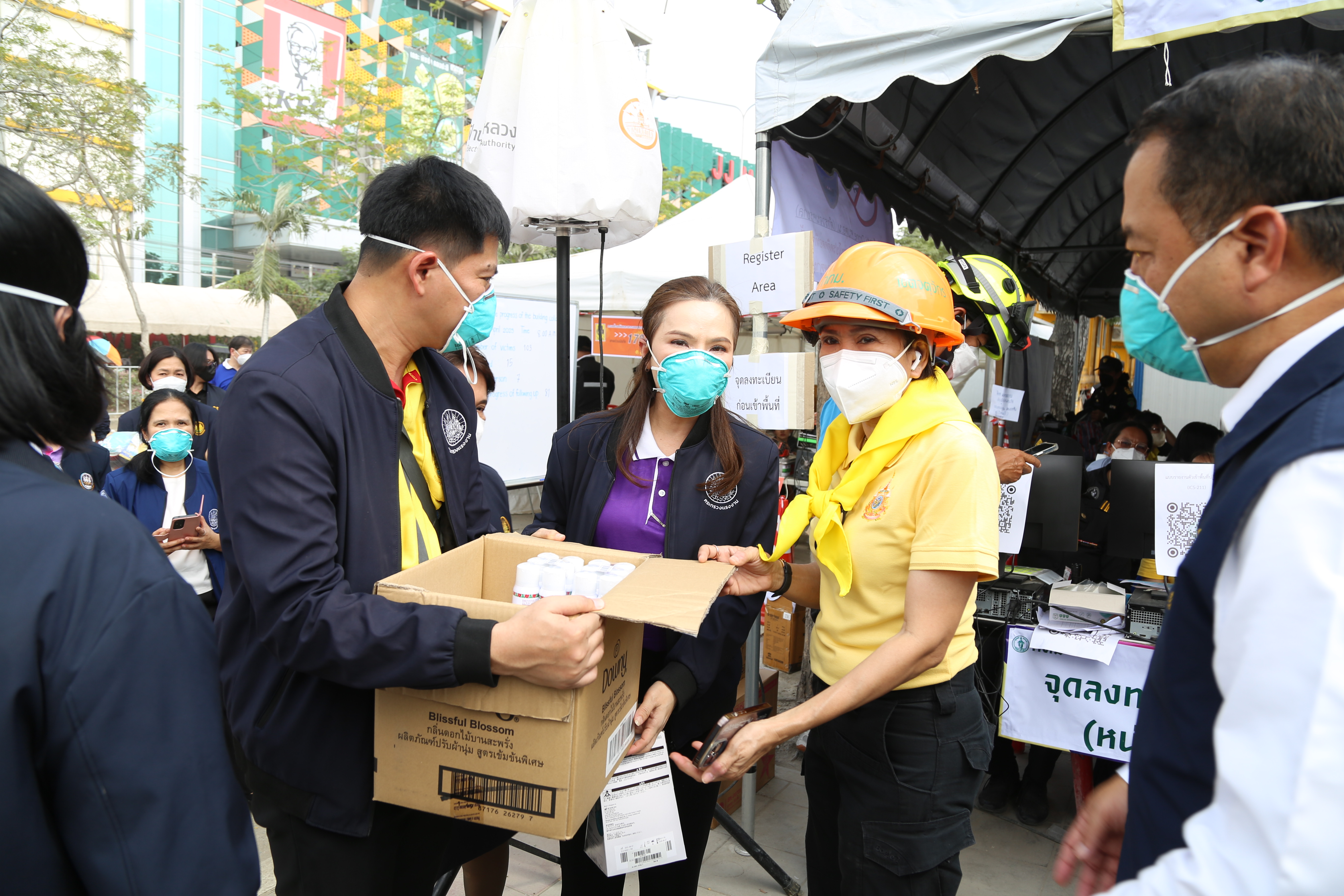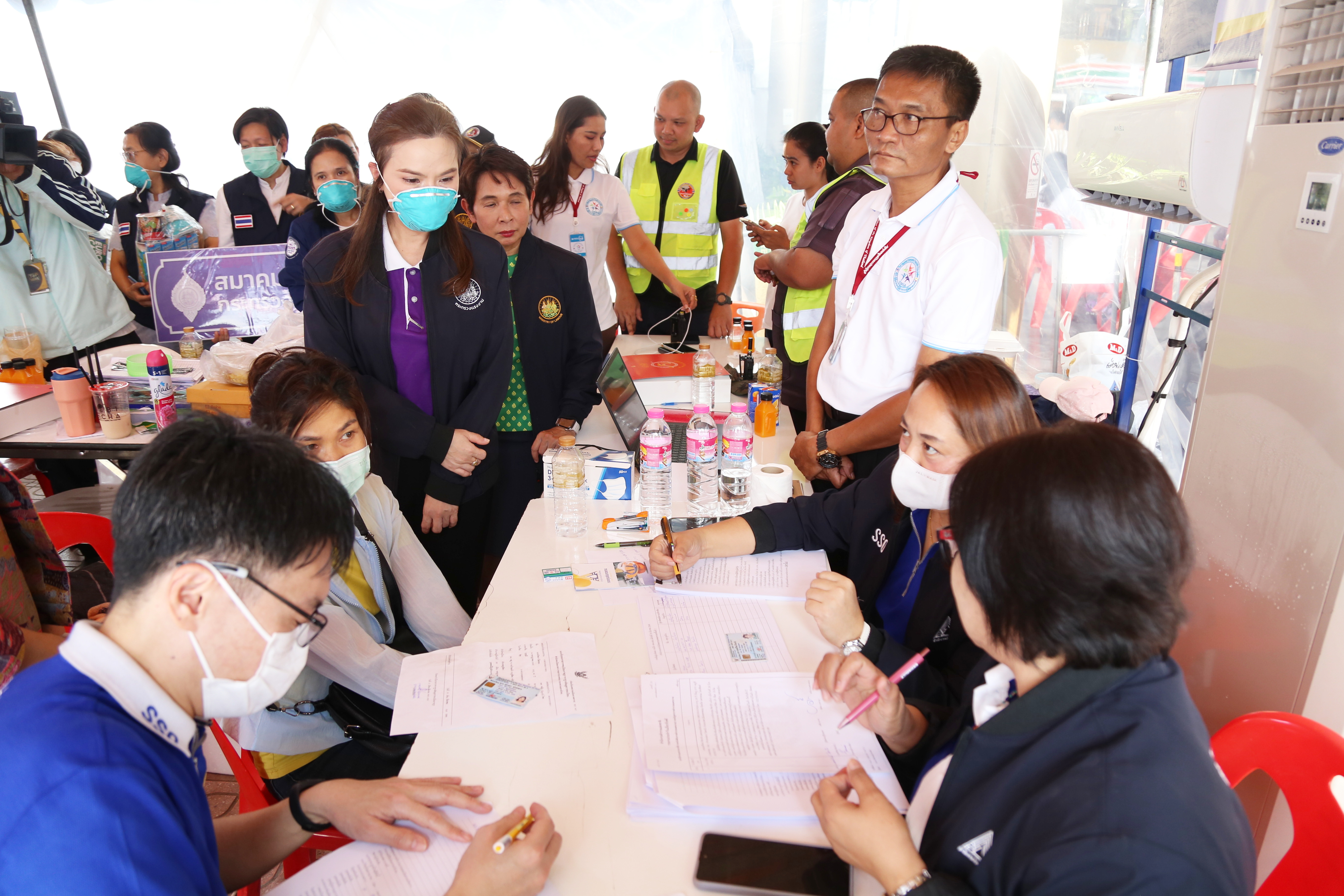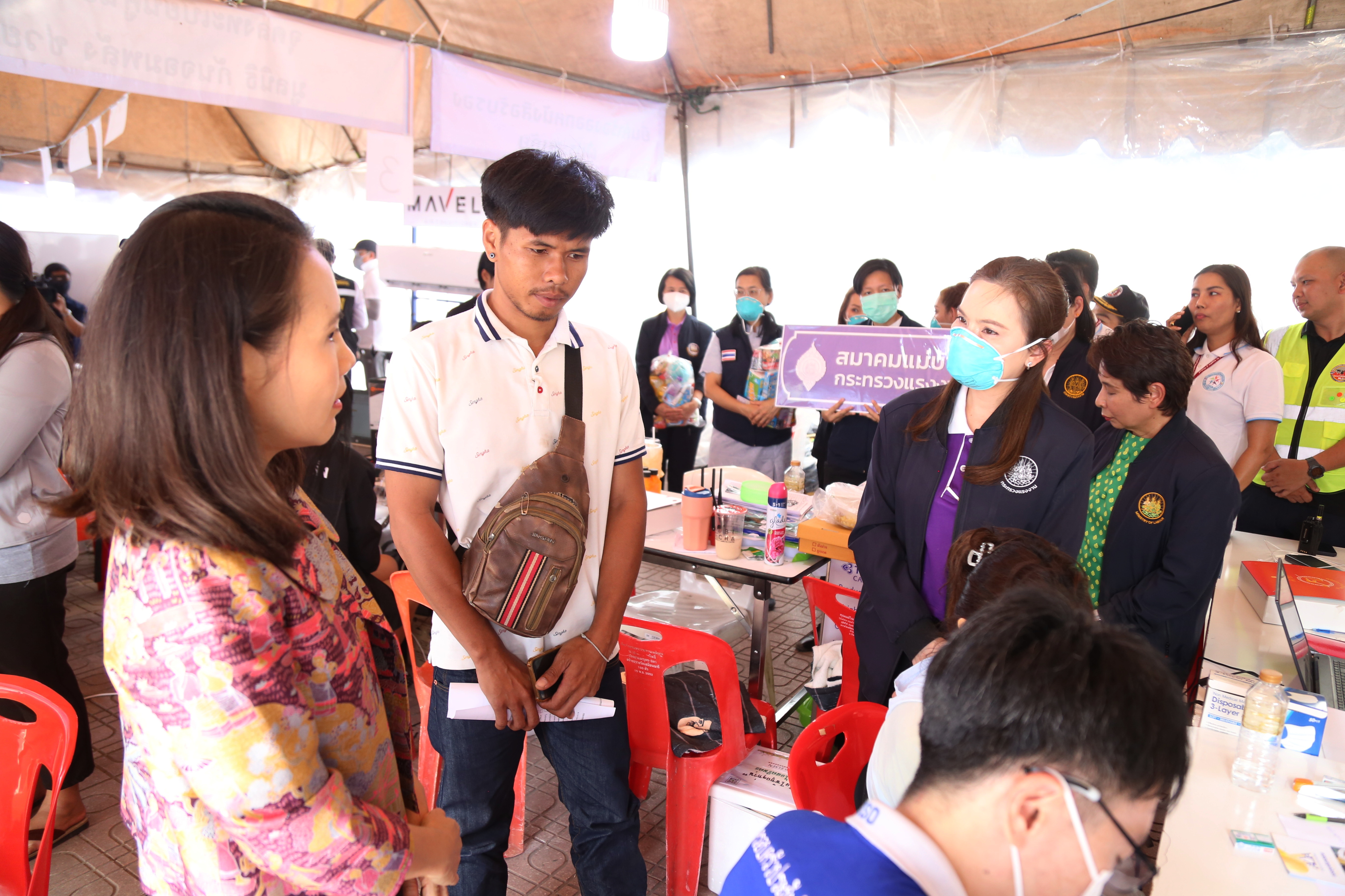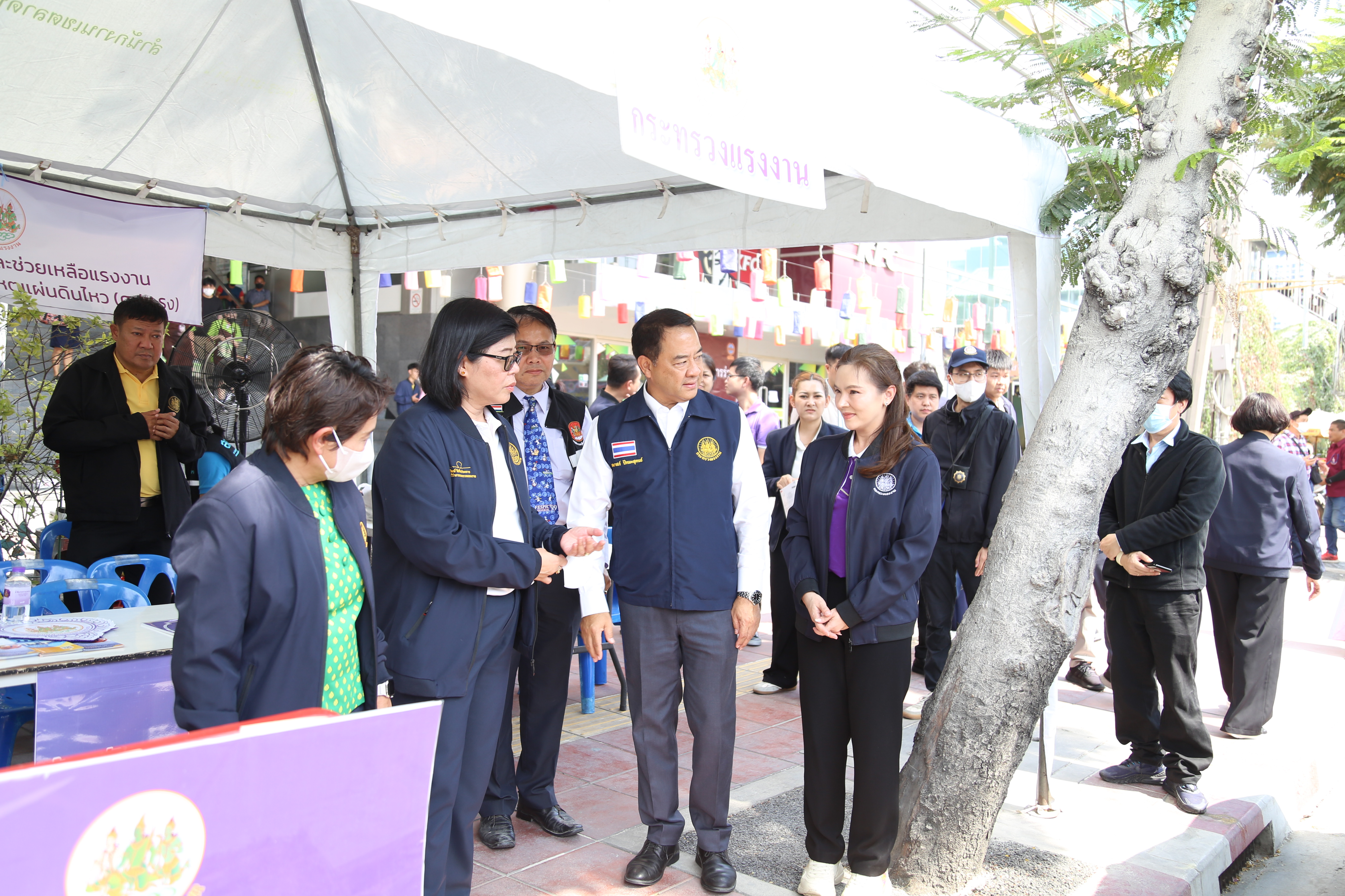 วันที่ 4 เมษายน 2568 เวลา 14.00 น. นางสาวเทียมแข ทัพชัยยุทธ์ นายกสมาคมแม่บ้านกระทรวงแรงงาน พร้อมด้วย นายสมาสภ์ ปัทมะสุคนธ์ รองปลัดกระทรวงแรงงาน นางสาวกาญจนา พูลแก้ว ผู้ตรวจราชการกระทรวงแรงงาน นางสาวจีระภา บุญรัตน์ ผู้ตรวจราชการกระทรวงแรงงาน และกรรมการสมาคมแม่บ้านกระทรวงแรงงาน ลงพื้นที่เยี่ยมให้กำลังใจเจ้าหน้าที่ผู้ปฏิบัติงานภายในศูนย์ประสานงานและช่วยเหลือแรงงาน ผู้ได้รับผลกระทบจากเหตุแผ่นดินไหว (ศปช.รง.) พร้อมมอบสเปรย์สูตรเย็น และสิ่งของเครื่องอุปโภคบริโภคแก่ญาติพี่น้อง และครอบครัวแรงงานผู้ได้รับผลกระทบจากเหตุแผ่นดินไหว เพื่อสร้างขวัญกำลังใจ ณ พื้นที่กองอำนวยการร่วม อาคารสำนักงานตรวจเงินแผ่นดิน (หลังใหม่) ถนนกำแพงเพชร เขตจตุจักร กรุงเทพมหานคร