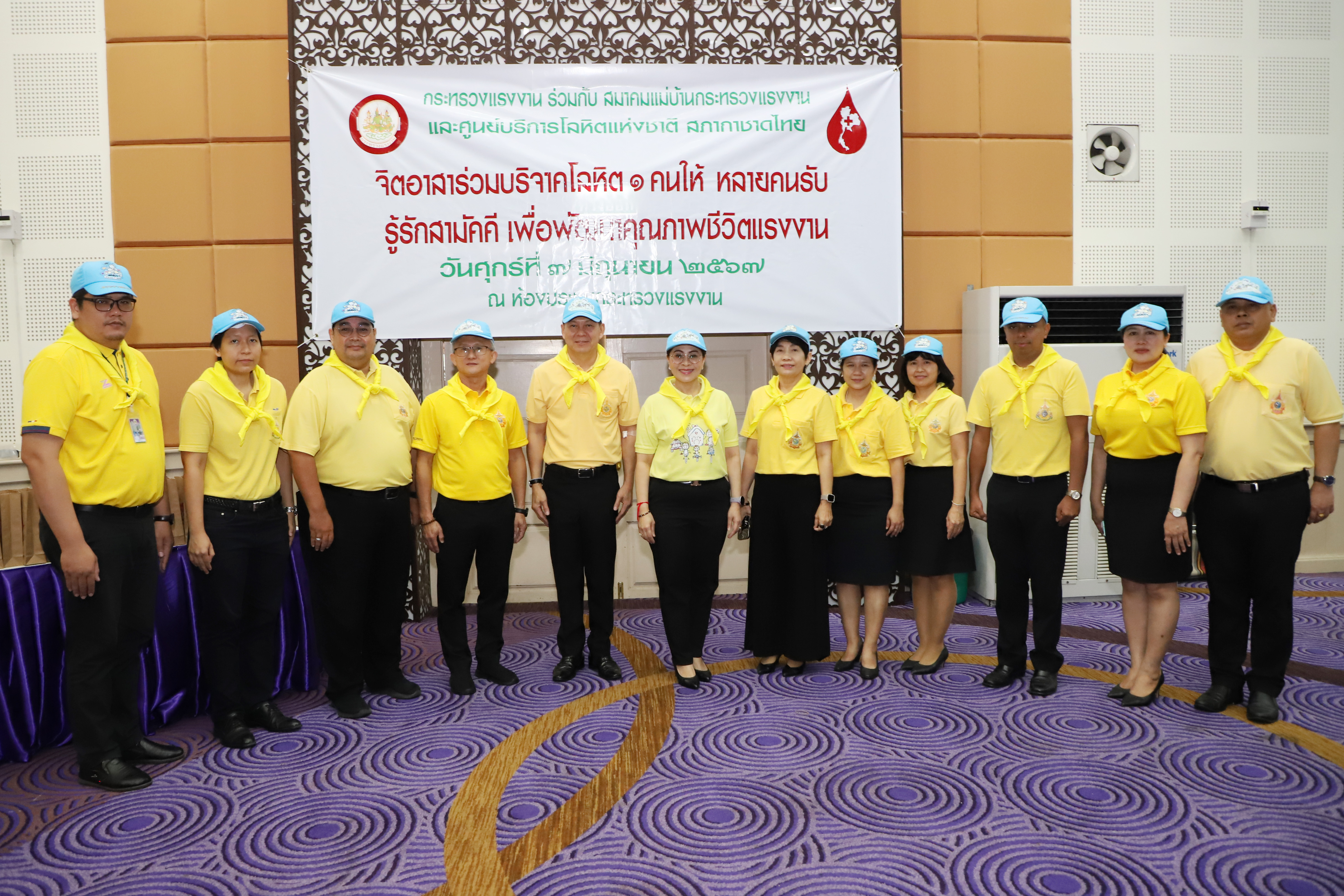 วันที่ 7 มิถุนายน 2567 เวลา 11.00 น. นางสาวบุปผา เรืองสุด อธิบดีกรมพัฒนาฝีมือแรงงาน ในฐานะนายกสมาคมแม่บ้านกระทรวงแรงงาน เยี่ยมให้กำลังใจผู้บริจาคโลหิต ภายใต้ชื่อกิจกรรม “จิตอาสาร่วมบริจาคโลหิต 1 คนให้ หลายคนรับ รู้รักสามัคคี พัฒนาคุณภาพชีวิตแรงงาน” ครั้งที่ 2/2567 โดยมี นางสาวกรจิรัฏฐ์ พงจันทร์ศธร ผู้ช่วยปลัดกระทรวงแรงงาน นายศักดินาถ สนธิศักดิ์โยธิน ผู้ช่วยปลัดกระทรวงแรงงาน พร้อมด้วยกรรมการสมาคมแม่บ้านกระทรวงแรงงาน เข้าร่วมกิจกรรม ณ ห้องประชุมกระทรวงแรงงาน ชั้น 5 กระทรวงแรงงาน