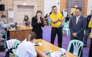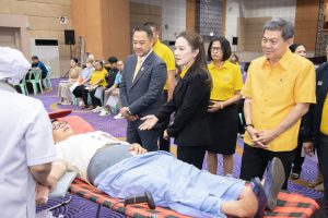 วันที่ 6 ธันวาคม 2567 เวลา 10.30 น. นางสาวเทียมแข ทัพชัยยุทธ์ นายกสมาคมแม่บ้านกระทรวงแรงงาน ตรวจเยี่ยมและให้กำลังใจผู้เข้าร่วมบริจาคโลหิต ในกิจกรรม “จิตอาสาร่วมบริจาคโลหิต 1 คนให้ หลายคนรับ รู้รักสามัคคี พัฒนาคุณภาพชีวิตแรงงาน” โดยมี นายสมาสภ์ ปัทมะสุคนธ์ รองปลัดกระทรวงแรงงาน พร้อมด้วยนางสาวกาญจนา พูลแก้ว รองอธิบดี กรมสวัสดิการและคุ้มครองแรงงาน นายศักดินาถ สนธิศักดิ์โยธิน ผู้ช่วยปลัดกระทรวงแรงงาน ผู้บริหาร กรรมการสมาคมแม่บ้านกระทรวงแรงงาน ข้าราชการและเจ้าหน้าที่ เข้าร่วมกิจกรรม ณ ห้องประชุมกระทรวงแรงงาน ชั้น 5 กระทรวงแรงงาน