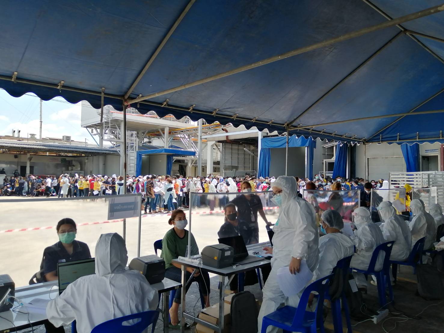 เมื่อวันที่ 31 พฤษภาคม 2564 นายสุชาติ ชมกลิ่น รัฐมนตรีว่าการกระทรวงแรงงาน เปิดเผยถึงสถานการณ์การแพร่ระบาดของโควิด-19 ในแคมป์คนงานว่า พล.อ.ประยุทธ์ จันทร์โอชา นายกรัฐมนตรีและ รมว.กลาโหม ได้มีความห่วงใยต่อสถานการณ์ดังกล่าวจึงได้สั่งการให้กระทรวงแรงงาน บูรณาการกับกระทรวงมหาดไทย ผู้ว่าราชการจังหวัด สาธารณสุขจังหวัด และโรงพยาบาลในเครือข่ายประกันสังคม ดำเนินการตรวจโควิด-19 เชิงรุกแก่แรงงานในสถานประกอบการและแคมป์คนงานในพื้นที่จังหวัดปทุมธานีและนนทบุรี เพื่อควบคุมการแพร่ระบาดของโควิด-19