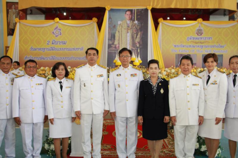 “วันพระบิดาแห่งมาตรฐานการช่างไทย” เมื่อวันที่ 2 มีนาคม 2562 เวลา 09.00 น. นายบวร ดรุณสนธยา แรงงานจังหวัดอำนาจเจริญ ร่วมพิธีวางพานพุ่มถวายราชสักการะพระบาทสมเด็จพระปรมินทรมหาภูมิพลอดุลยเดช บรมนาถบพิตร”พระบิดาแห่งมาตรฐานการช่างไทย”เนื่องในวันมาตรฐานฝีมือแรงงานแห่งชาติ ที่หอประชุมโรงเรียนอำนาจเจริญ อำเภอเมือง จังหวัดอำนาจเจริญ นายสุริยะ อมรโรจน์วรวุฒิ ผู้ว่าราชการจังหวัดอำนาจเจริญ เป็นประธาน โดยมี นางสุภวรรณ อมรโรจน์วรวุฒิ ประธานแม่บ้านมหาดไทย จังหวัดอำนาจเจริญ และคณะอัยการ ข้าราชการพลเรือน ทหาร ตำรวจ ร่วมในพิธี ซึ่งสำนักงานพัฒนาฝีมือแรงงานอำนาจเจริญจัดขึ้นเพื่อเทิดพระเกียรติพระบาทสมเด็จพระปรมินทรมหาภูมิพลอดุลยเดช บรมนาถบพิตร ในฐานะที่เป็นพระบิดาแห่งมาตรฐานการช่างไทย ตามที่คณะรัฐมนตรีมีมติเห็นชอบเมื่อวันที่ 17 มีนาคม 2552 ถวายพระราชสมัญญา “พระบิดาแห่งมาตรฐานการช่างไทย” แด่พระบาทสมเด็จพระปรมินทรมหาภูมิพลอดุลยเดช บรมนาถบพิตร และกำหนดให้วันที่ 2 มีนาคม ของทุกปีเป็นวันมาตรฐานฝีมือแรงงานแห่งชาติ
