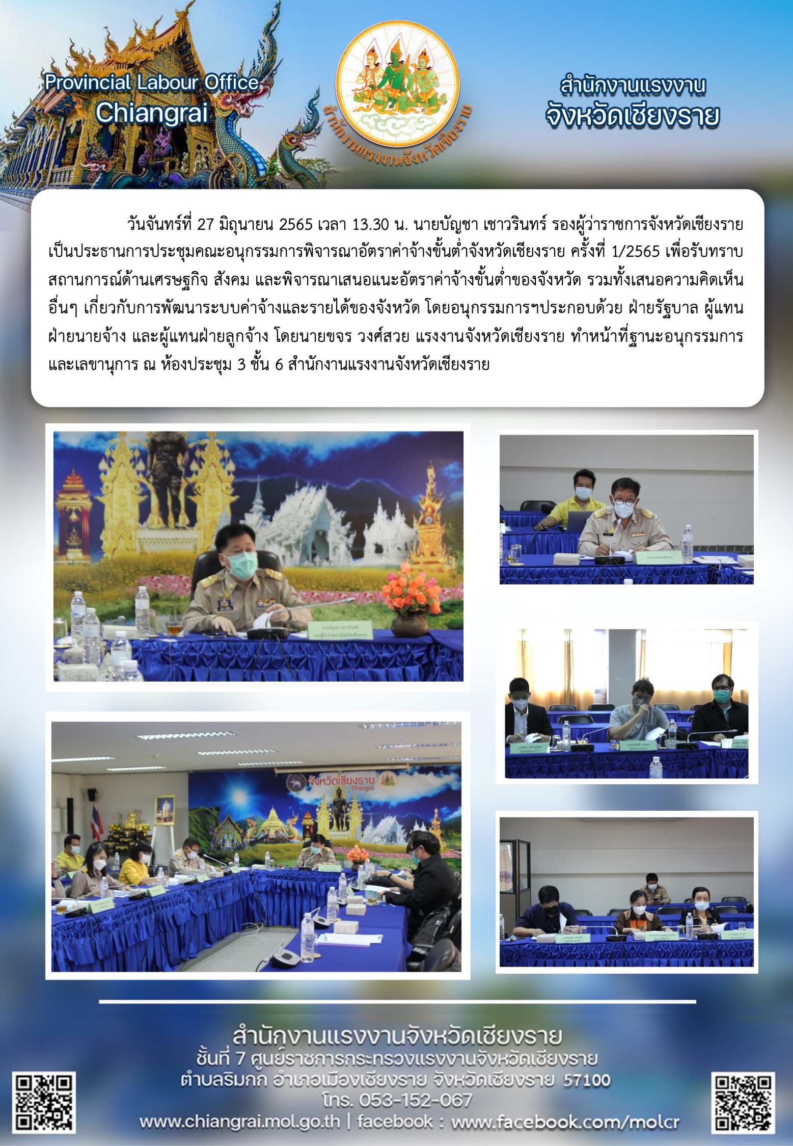 นายบัญชา เชาวรินทร์ รองผู้ว่าราชการจังหวัดเชียงราย เป็นประธานการประชุมคณะอนุกรรมการพิจารณาอัตราค่าจ้างขั้นต่ำจังหวัดเชียงราย ครั้งที่ 1/2565