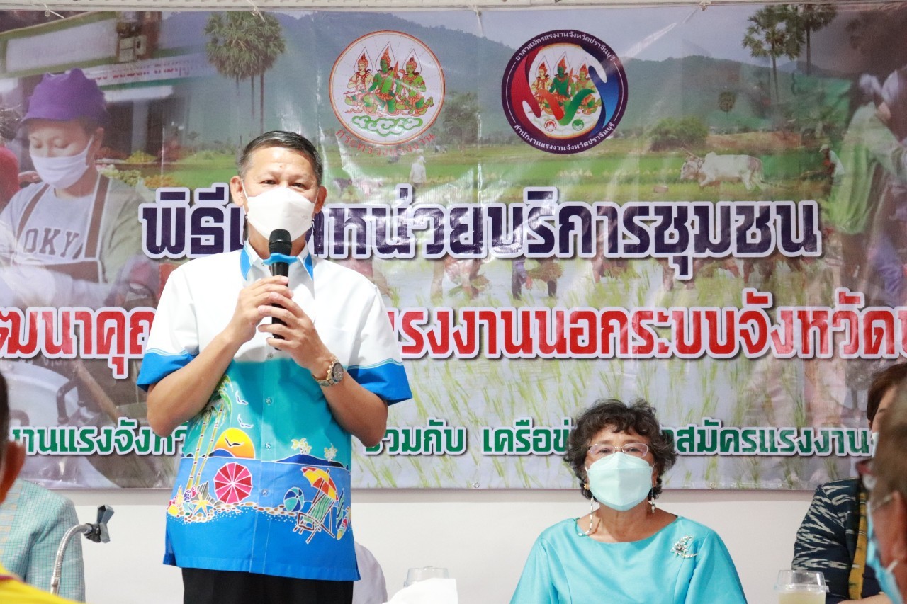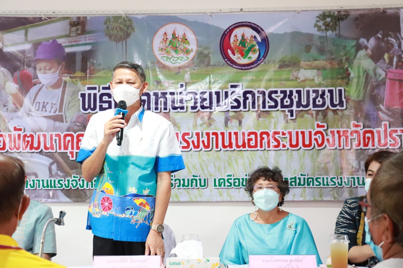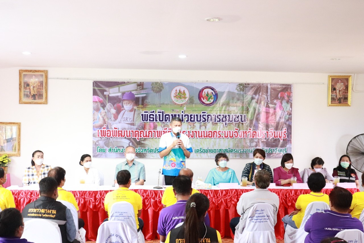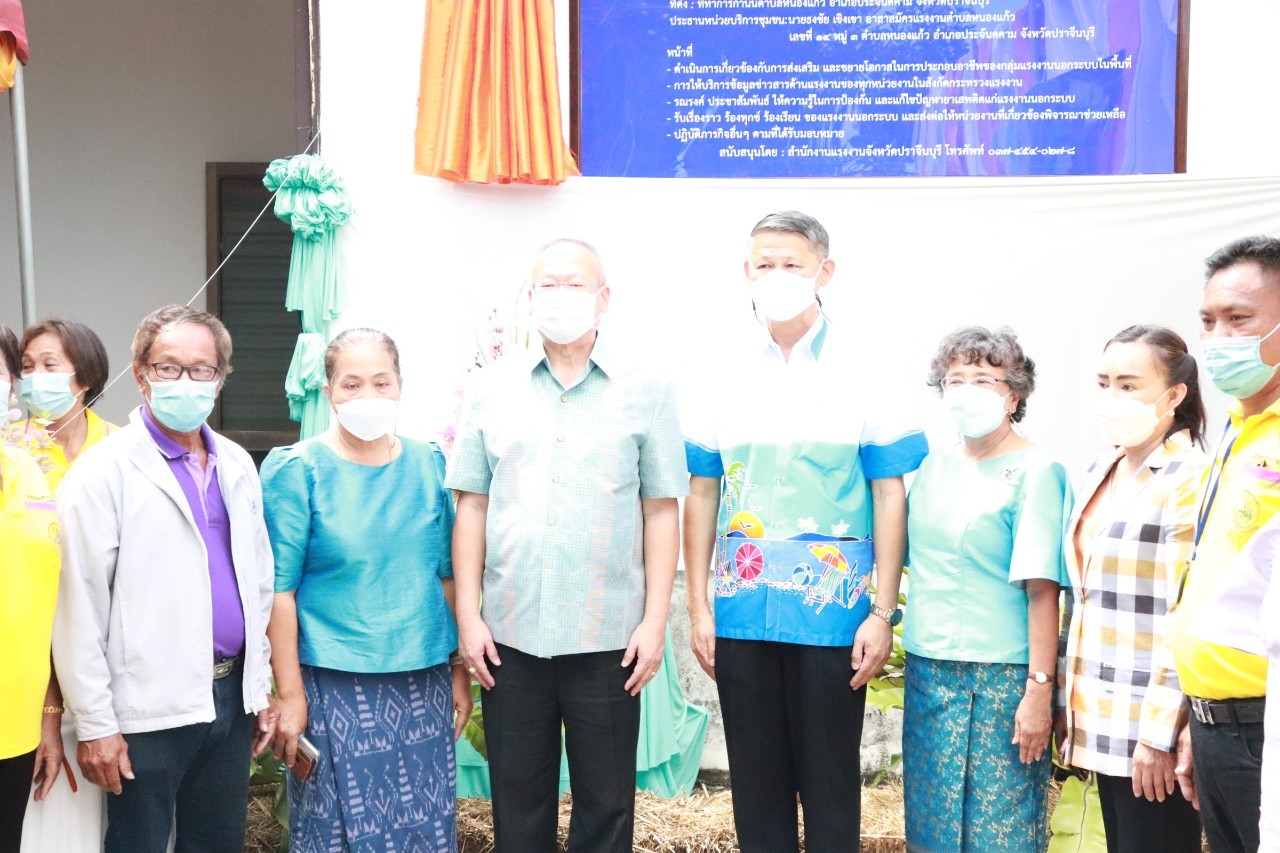 วันศุกร์ที่ 18 เดือนกุมภาพันธ์ พ.ศ. 2565 นายพงษ์สิทธิ์ เนื่องจำนง รองผู้ว่าราชการจังหวัดปราจีนบุรี เป็นประธานการเปิดหน่วยบริการชุมชนแรงงานนอกระบบจังหวัดปราจีนบุรี หน่วยที่ 5 ณ ที่ทำการกำนันตำบลหนองแก้ว อำเภอประจันตคาม จังหวัดปราจีนบุรี วัตถุประสงค์ของการเปิดหน่วยดังกล่าว เพื่อช่วยเหลือแรงงานนอกระบบทำงานอิสระที่ไม่มีนายจ้าง อาทิ กลุ่มผู้รับงานไปทำที่บ้าน กลุ่มรับจ้างทั่วไป แม่บ้าน ทำงานบ้าน ค้าขาย หาบเร่ แผงลอย รับจ้างในภาคเกษตรกรรม ประมงพื้นบ้านที่มีการจ้างงานไม่ประจำ ให้ได้เข้าถึงสิทธิและบริการจากภาครัฐ อย่างทั่วถึง โดยมี นางประไพพรรณ ลุ่มจันทร์ แรงงานจังหวัดปราจีนบุรี พร้อมด้วย หัวหน้าส่วนราชการในสังกัดกระทรวงแรงงานจังหวัดปราจีนบุรี นายอำเภอประจันตคาม ผู้นำท้องถิ่นและชุมชน และเครือข่ายอาสาสมัครแรงงานจังหวัดปราจีนบุรี ร่วมสาธิตอาชีพอิสระ ในโอกาสนี้ท่าน รองผวจ. และท่านนายอำเภอประจันตคาม เป็นผู้แทนเหล่ากาชาดจังหวัดปราจีนบุรี ส่งมอบผ้าขนหนู ให้แก่ผู้สูงอายุทุกหมู่บ้านในตำบลหนองแก้ว อำเภอประจันตคาม จังหวัดปราจีนบุรี จำนวน 28 ราย