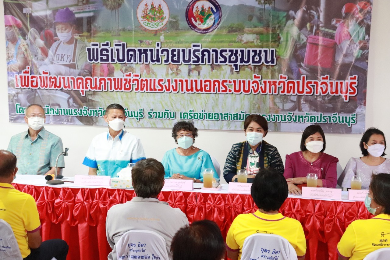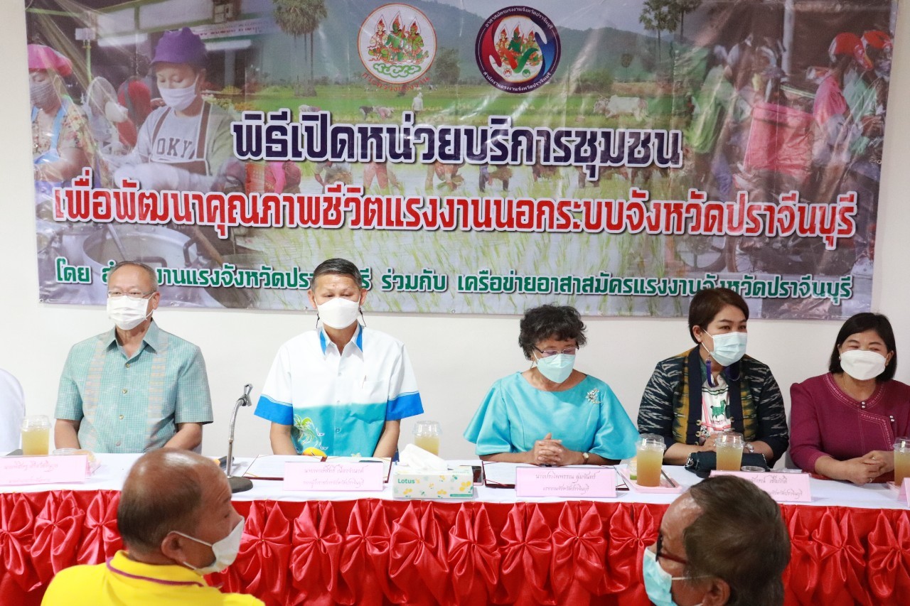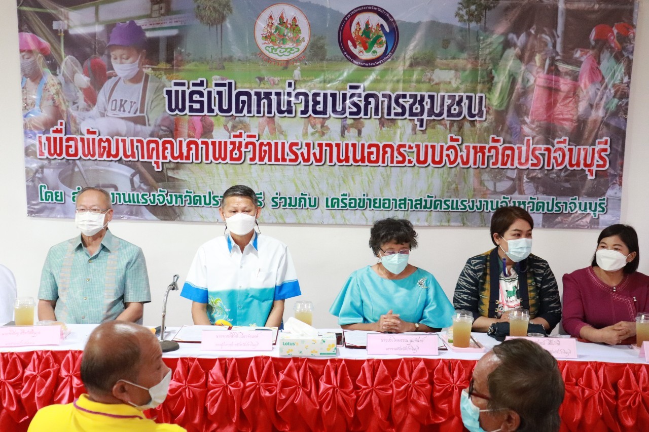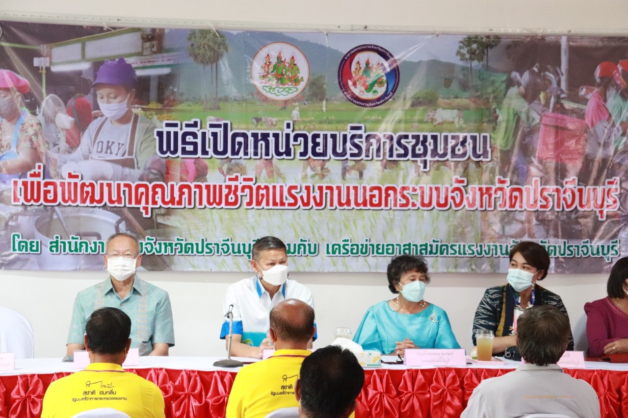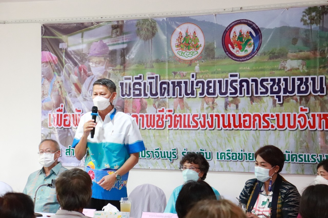 วันศุกร์ที่ 18 เดือนกุมภาพันธ์ พ.ศ. 2565 นายพงษ์สิทธิ์ เนื่องจำนง รองผู้ว่าราชการจังหวัดปราจีนบุรี เป็นประธานการเปิดหน่วยบริการชุมชนแรงงานนอกระบบจังหวัดปราจีนบุรี หน่วยที่ 5 ณ ที่ทำการกำนันตำบลหนองแก้ว อำเภอประจันตคาม จังหวัดปราจีนบุรี วัตถุประสงค์ของการเปิดหน่วยดังกล่าว เพื่อช่วยเหลือแรงงานนอกระบบทำงานอิสระที่ไม่มีนายจ้าง อาทิ กลุ่มผู้รับงานไปทำที่บ้าน กลุ่มรับจ้างทั่วไป แม่บ้าน ทำงานบ้าน ค้าขาย หาบเร่ แผงลอย รับจ้างในภาคเกษตรกรรม ประมงพื้นบ้านที่มีการจ้างงานไม่ประจำ ให้ได้เข้าถึงสิทธิและบริการจากภาครัฐ อย่างทั่วถึง โดยมี นางประไพพรรณ ลุ่มจันทร์ แรงงานจังหวัดปราจีนบุรี พร้อมด้วย หัวหน้าส่วนราชการในสังกัดกระทรวงแรงงานจังหวัดปราจีนบุรี นายอำเภอประจันตคาม ผู้นำท้องถิ่นและชุมชน และเครือข่ายอาสาสมัครแรงงานจังหวัดปราจีนบุรี ร่วมสาธิตอาชีพอิสระ ในโอกาสนี้ท่าน รองผวจ. และท่านนายอำเภอประจันตคาม เป็นผู้แทนเหล่ากาชาดจังหวัดปราจีนบุรี ส่งมอบผ้าขนหนู ให้แก่ผู้สูงอายุทุกหมู่บ้านในตำบลหนองแก้ว อำเภอประจันตคาม จังหวัดปราจีนบุรี จำนวน 28 ราย