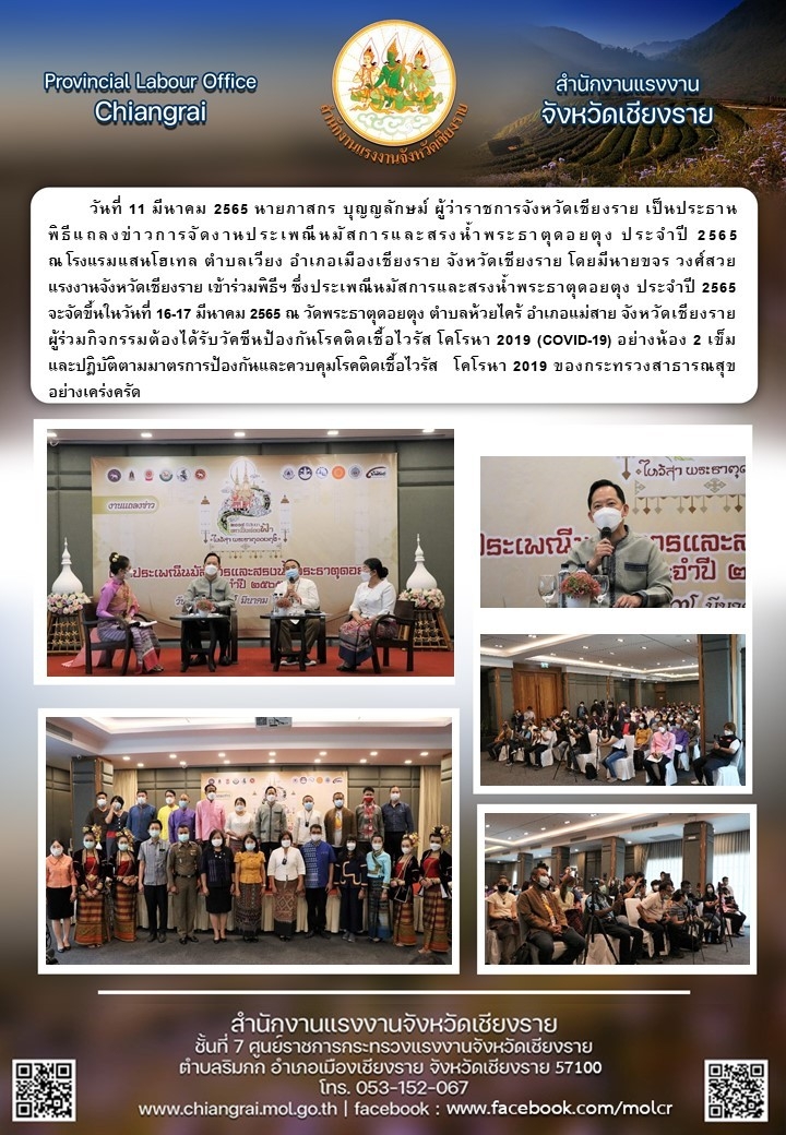แรงงานจังหวัดเชียงราย เข้าร่วมพิธีแถลงข่าวการจัดงานประเพณีนมัสการและสรงน้ำพระธาตุดอยตุง ประจำปี 2565