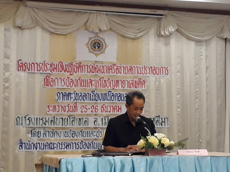 นางมาลัยอร หิรัณยรัชต์ แรงงานจังหวัดบุรีรัมย์ มอบหมายให้ นายวรรณพ สุทารัมย์ นักวิชาการแรงงานชำนาญการ เข้าร่วมประชุมเชิงปฏิบัติการพัฒนาเครือข่ายสถานประกอบการเพื่อการป้องกันและแก้ไขปัญหายาเสพติด ภาคตะวันออกเฉียงเหนือตอนล่าง ณ จังหวัดนครราชสีมา ระหว่างวันที่ ๒๕ – ๒๖ ธันวาคม ๒๕๖๑ ณ โรงแรมสบายดีโฮเทล อำเภอเมือง จังหวัดนครราชสีมา