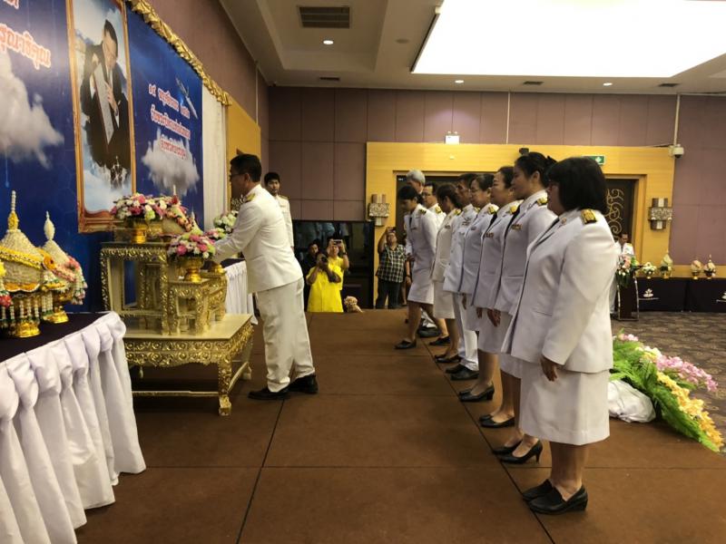 วันที่ 14 พฤศจิกายน 2562 นายวิชิตร สุวรรณมาก แรงงานจังหวัดนครปฐม และหน่วยงานสังกัดกระทรวงแรงงานจังหวัดนครปฐม เข้าร่วมพิธีถวายราชสักการะน้อมรำลึกในพระมหากรุณาธิคุณ พระมหาชนกาธิเบศร มหาภูมิพลอดุลยเดชมหาราช บรมนาถบพิธ เนื่องใน “วันพระบิดาแห่งฝนหลวง ประจำปี 2562” ณ อาคารปฐมสัมมาคาร อุทยานการอาชีพชัยพัฒนา อำเภอเมือง จังหวัดนครปฐม โดยมีผู้ว่าราชการจังหวัดนครปฐม (นายชาญนะ เอี่ยมแสง) เป็นประธาน