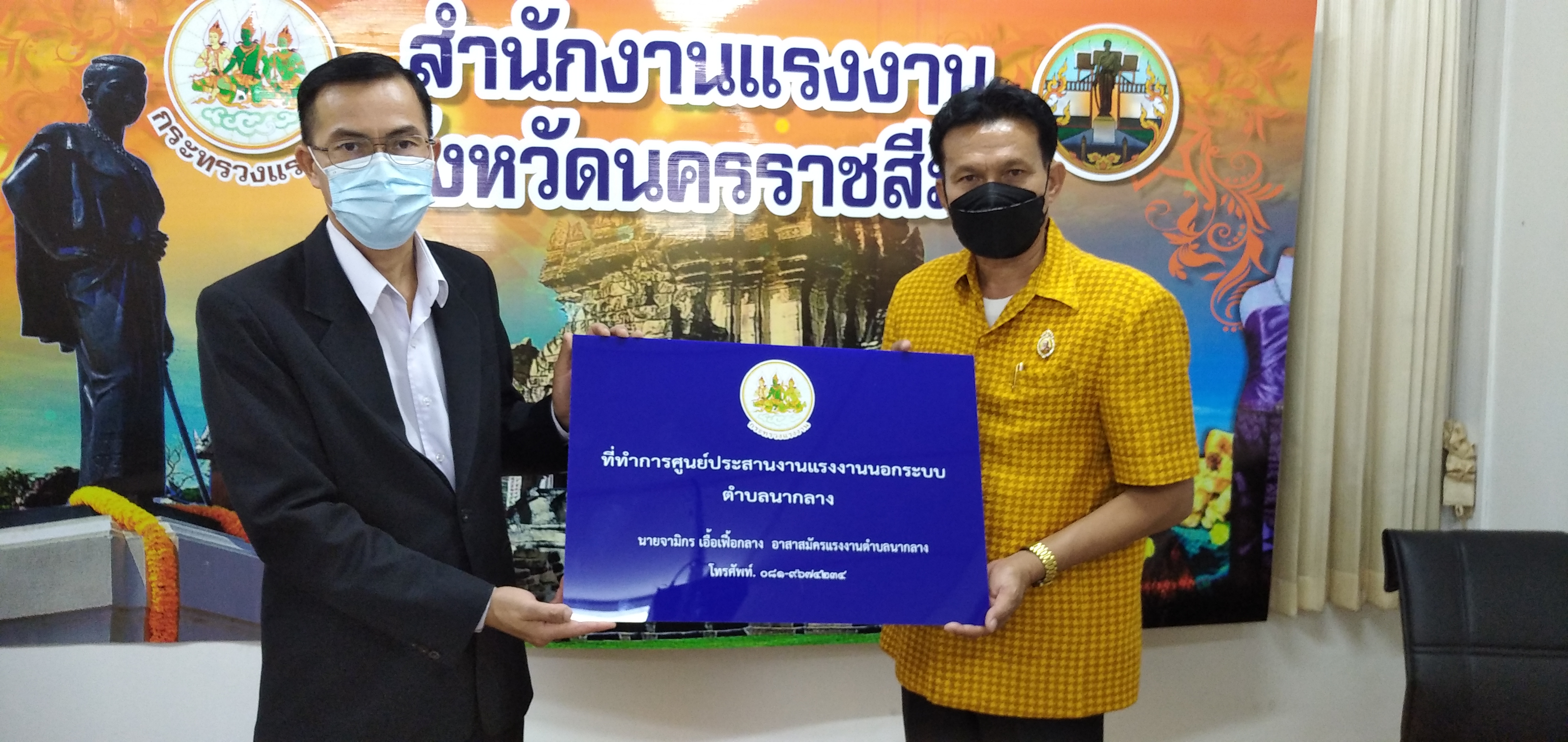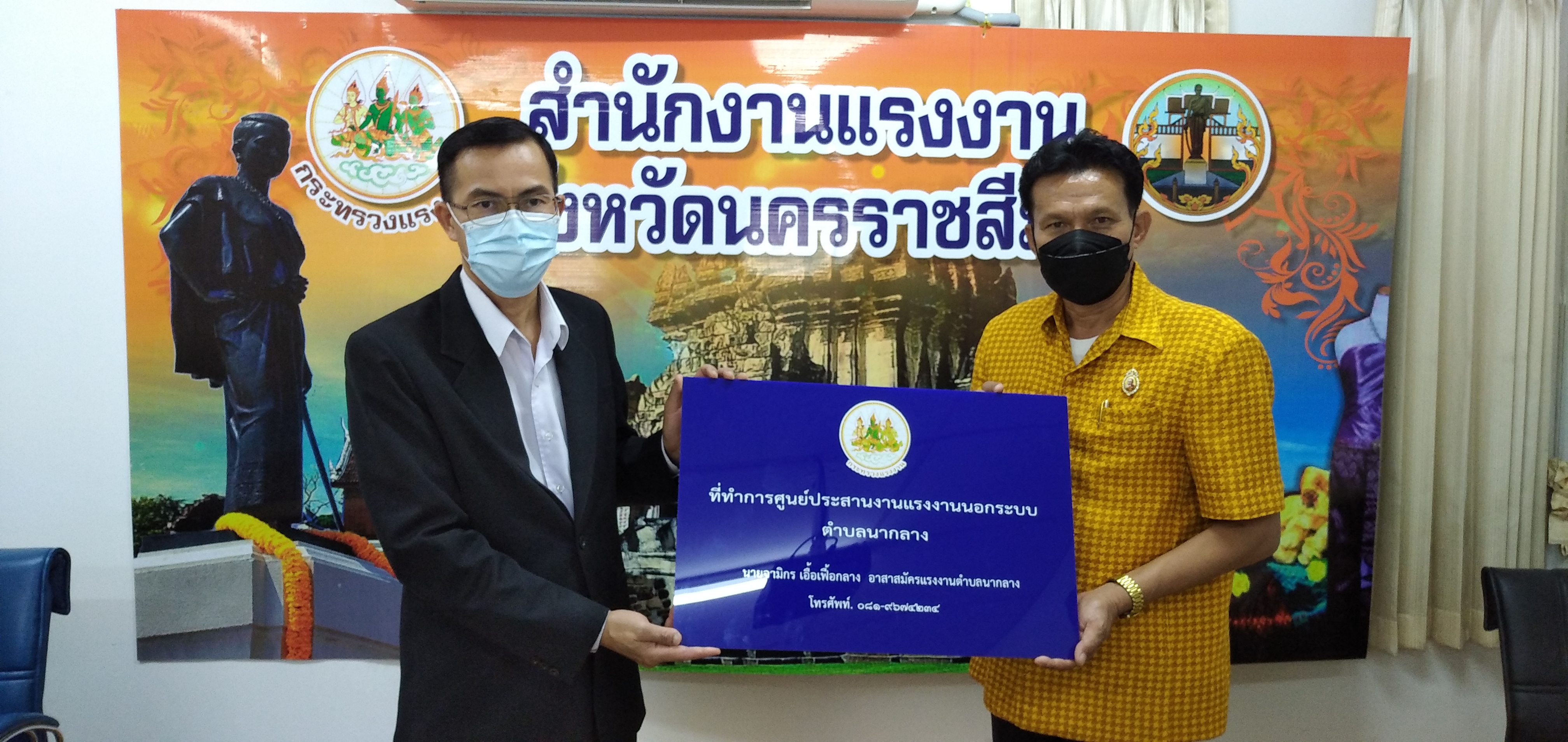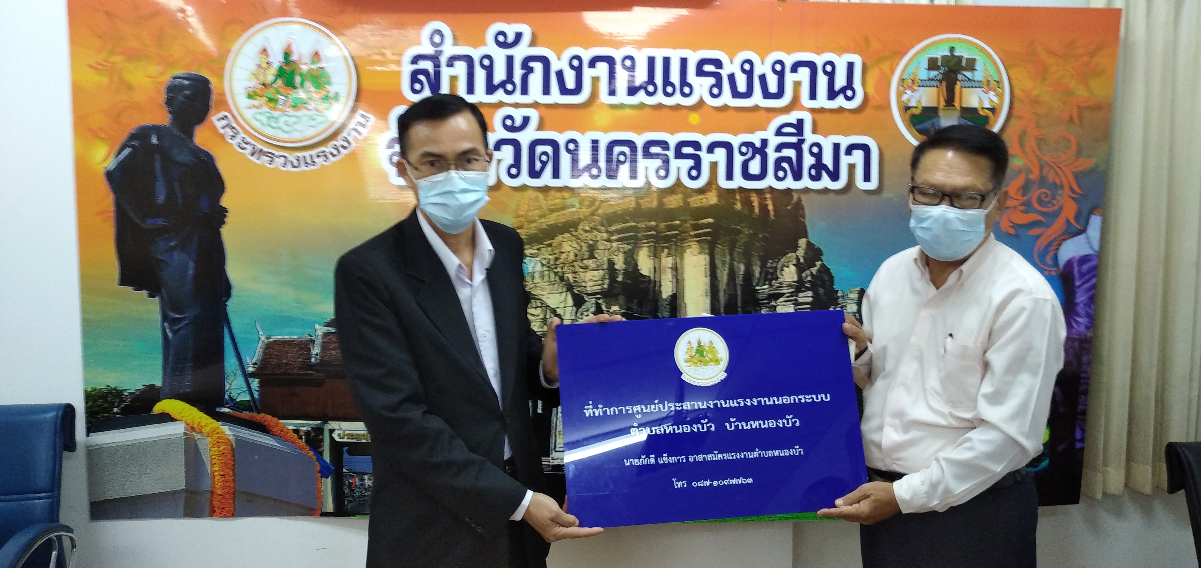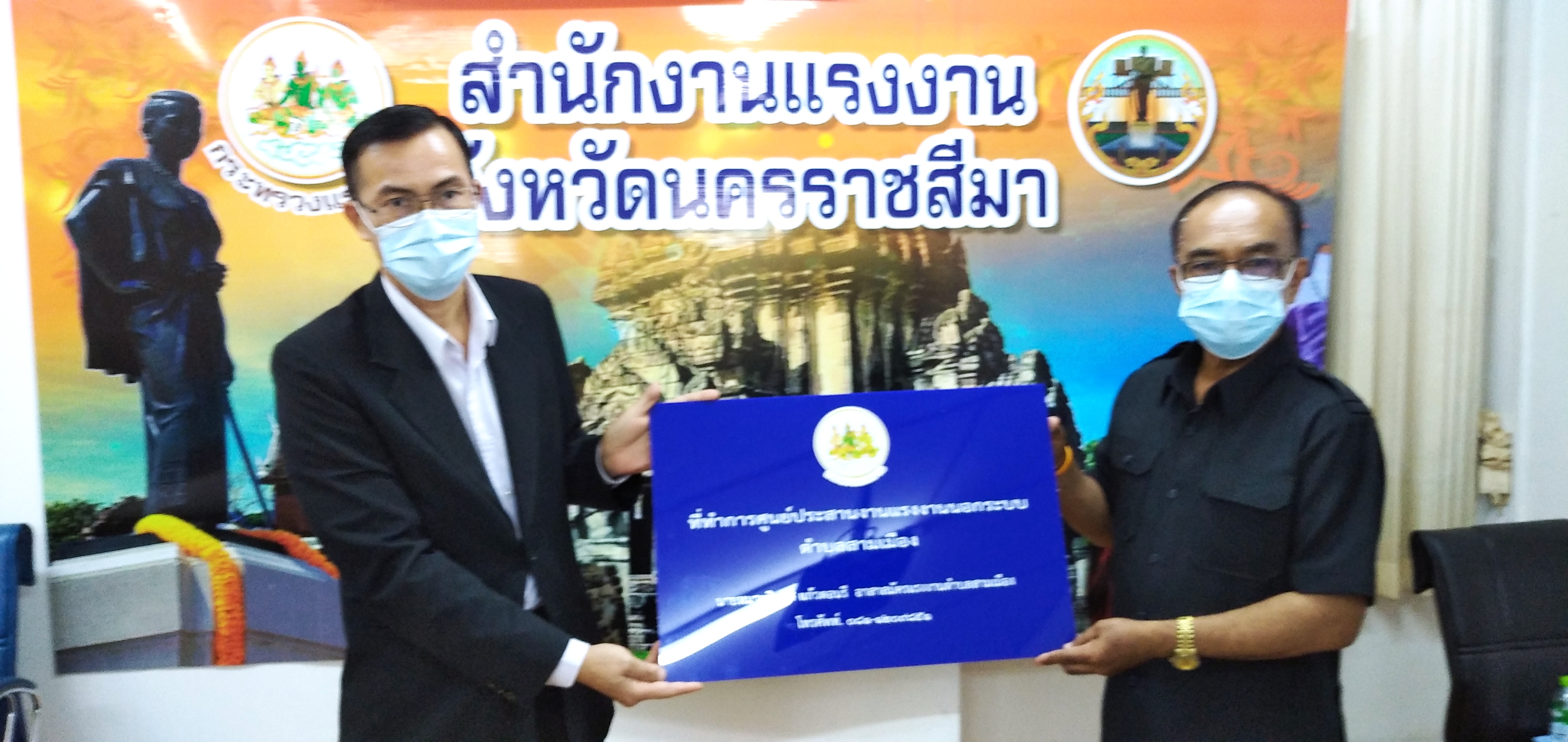 วันอังคารที่ ๒๘ กันยายน ๒๕๖๔ เวลา ๐๙.๐๐ น. นายวินัย มะยมทอง แรงงานจังหวัดนครราชสีมา เป็นประธานการประชุมศูนย์ประสานงานแรงงานนอกระบบอำเภอ ณ ห้องประชุมสำนักงานแรงงานจังหวัดนครราชสีมา เพื่อขับเคลื่อนการขยายเครือข่ายการบริการแรงงานนอกระบบในพื้นที่ชุมชน โดยอาสาสมัครแรงงาน ตามคำสั่งจังหวัดนครราชสีมา การจัดตั้งศูนย์ประสานงานแรงงานนอกระบบอำเภอ และแต่งตั้งคณะกรรมการศูนย์ประสานงานแรงงานนอกระบบอำเภอ พร้อมมอบป้ายศูนย์ประสานงานแรงงานนอกระบบอำเภอ ๗ แห่ง และป้ายที่ทำการศูนย์ประสานงานแรงงานนอกระบบตำบล ๗๑ แห่ง พร้อมวัสดุสำนักงาน และสื่อประชาสัมพันธ์ เพื่อให้บริการประชาชน ทั้งนี้ที่ประชุมได้ร่วมกันหารือแนวทางการให้ความช่วยเหลือผู้ประสบอุทกภัยในจังหวัดนครราชสีมา เพื่อให้ความช่วยเหลือต่อไป