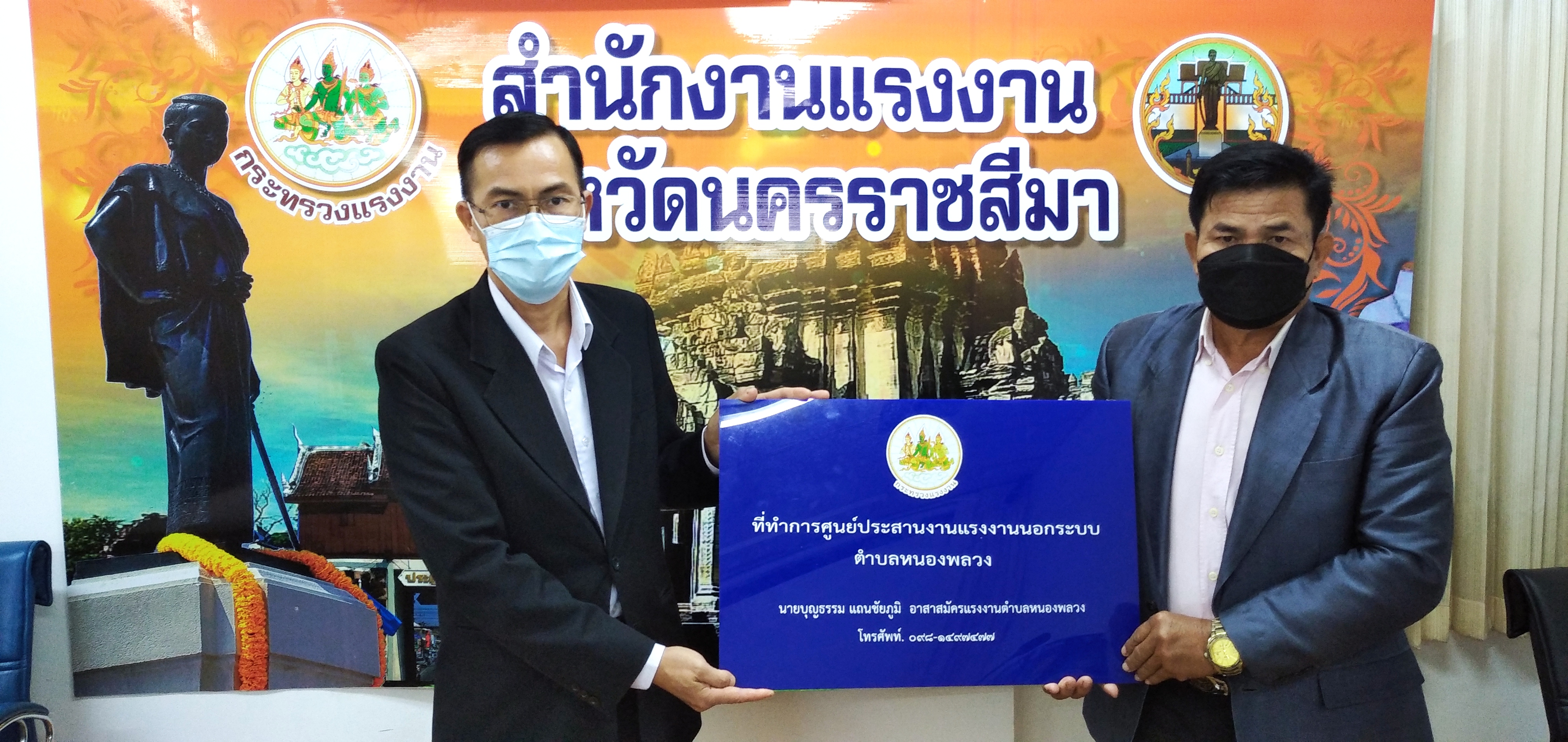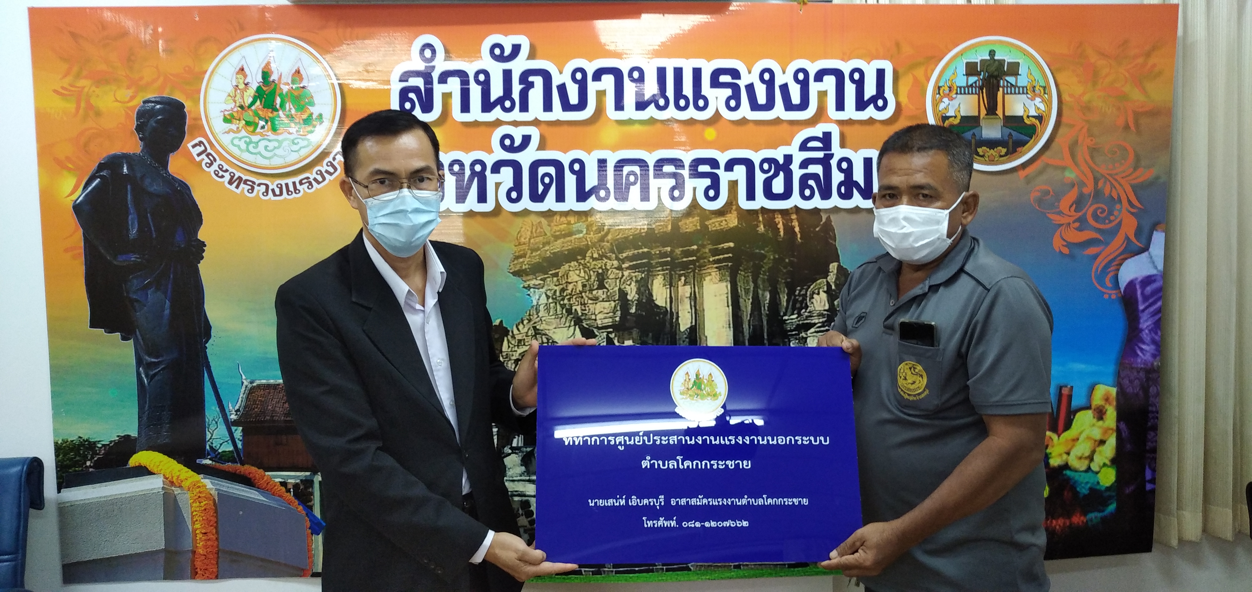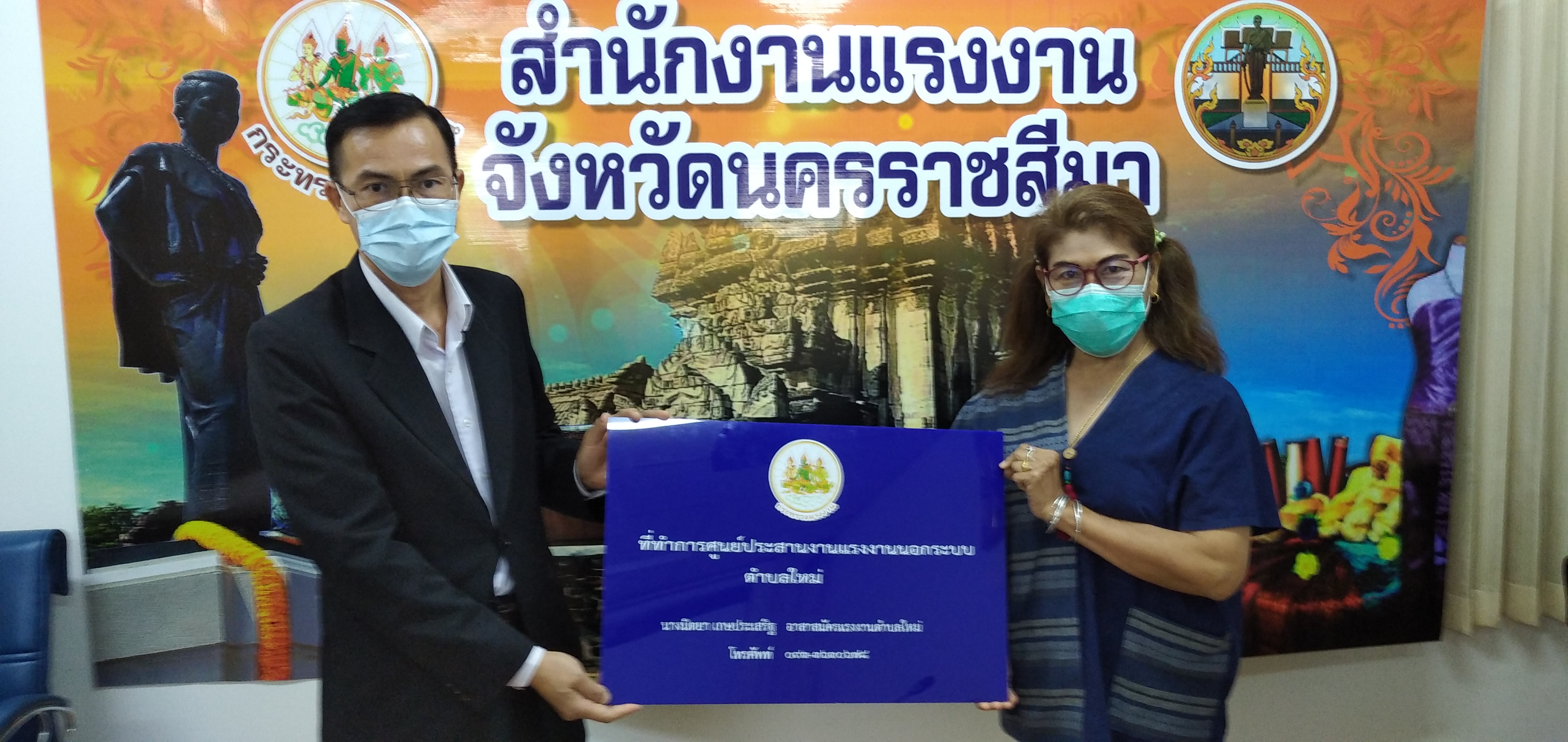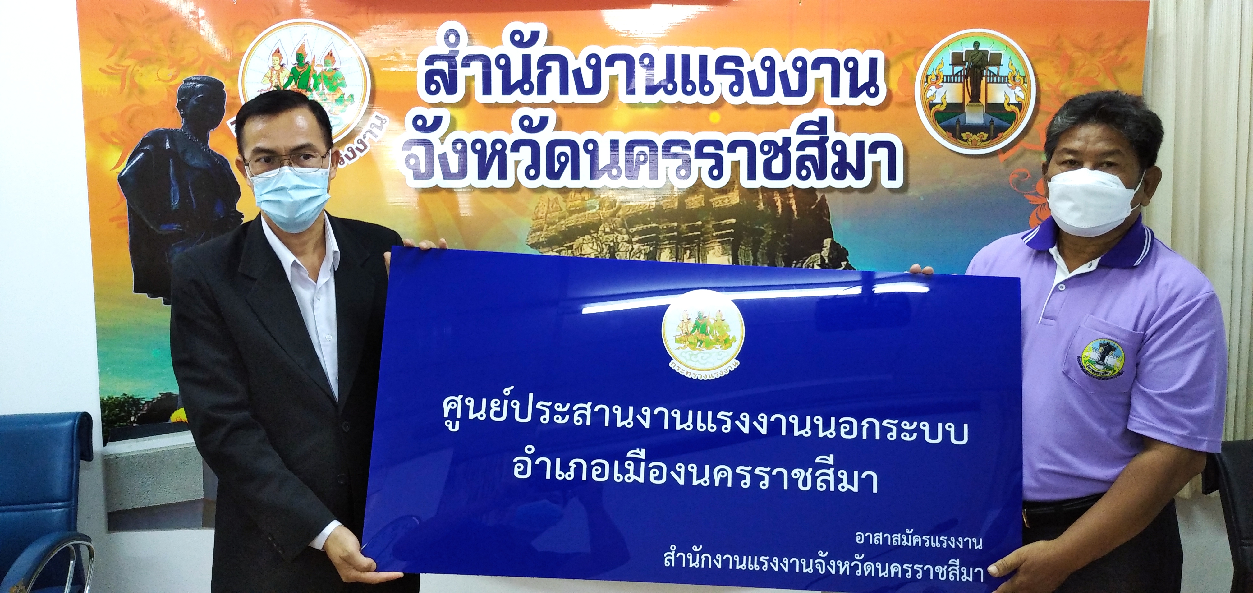วันอังคารที่ ๒๘ กันยายน ๒๕๖๔ เวลา ๐๙.๐๐ น. นายวินัย มะยมทอง แรงงานจังหวัดนครราชสีมา เป็นประธานการประชุมศูนย์ประสานงานแรงงานนอกระบบอำเภอ ณ ห้องประชุมสำนักงานแรงงานจังหวัดนครราชสีมา เพื่อขับเคลื่อนการขยายเครือข่ายการบริการแรงงานนอกระบบในพื้นที่ชุมชน โดยอาสาสมัครแรงงาน ตามคำสั่งจังหวัดนครราชสีมา การจัดตั้งศูนย์ประสานงานแรงงานนอกระบบอำเภอ และแต่งตั้งคณะกรรมการศูนย์ประสานงานแรงงานนอกระบบอำเภอ พร้อมมอบป้ายศูนย์ประสานงานแรงงานนอกระบบอำเภอ ๗ แห่ง และป้ายที่ทำการศูนย์ประสานงานแรงงานนอกระบบตำบล ๗๑ แห่ง พร้อมวัสดุสำนักงาน และสื่อประชาสัมพันธ์ เพื่อให้บริการประชาชน ทั้งนี้ที่ประชุมได้ร่วมกันหารือแนวทางการให้ความช่วยเหลือผู้ประสบอุทกภัยในจังหวัดนครราชสีมา เพื่อให้ความช่วยเหลือต่อไป
