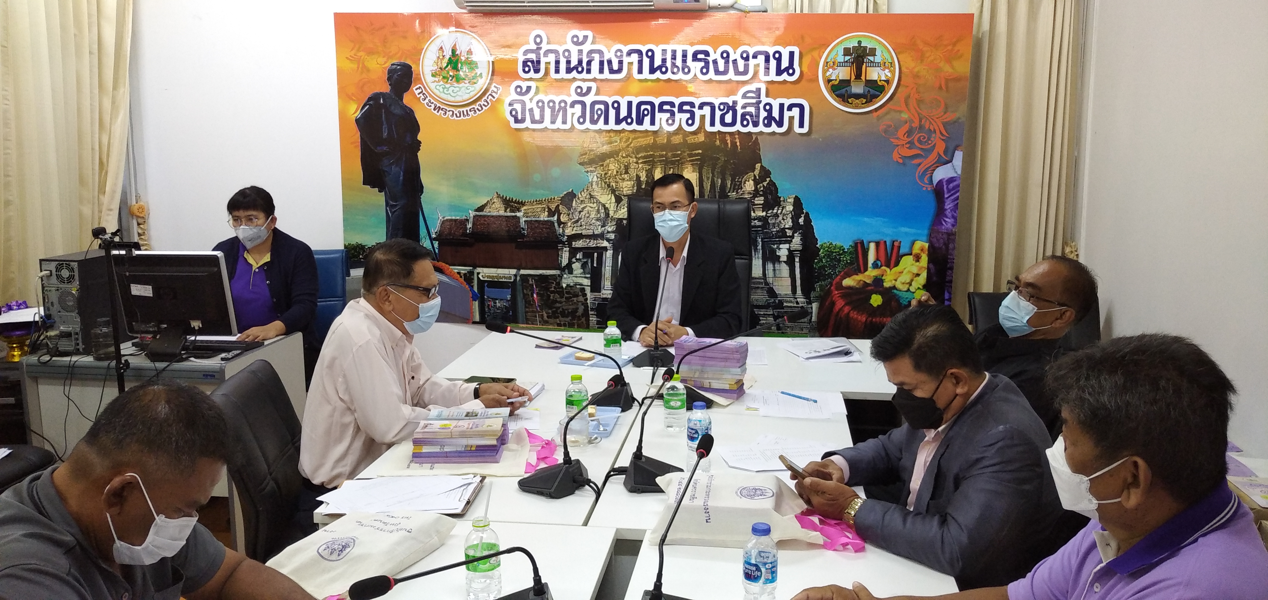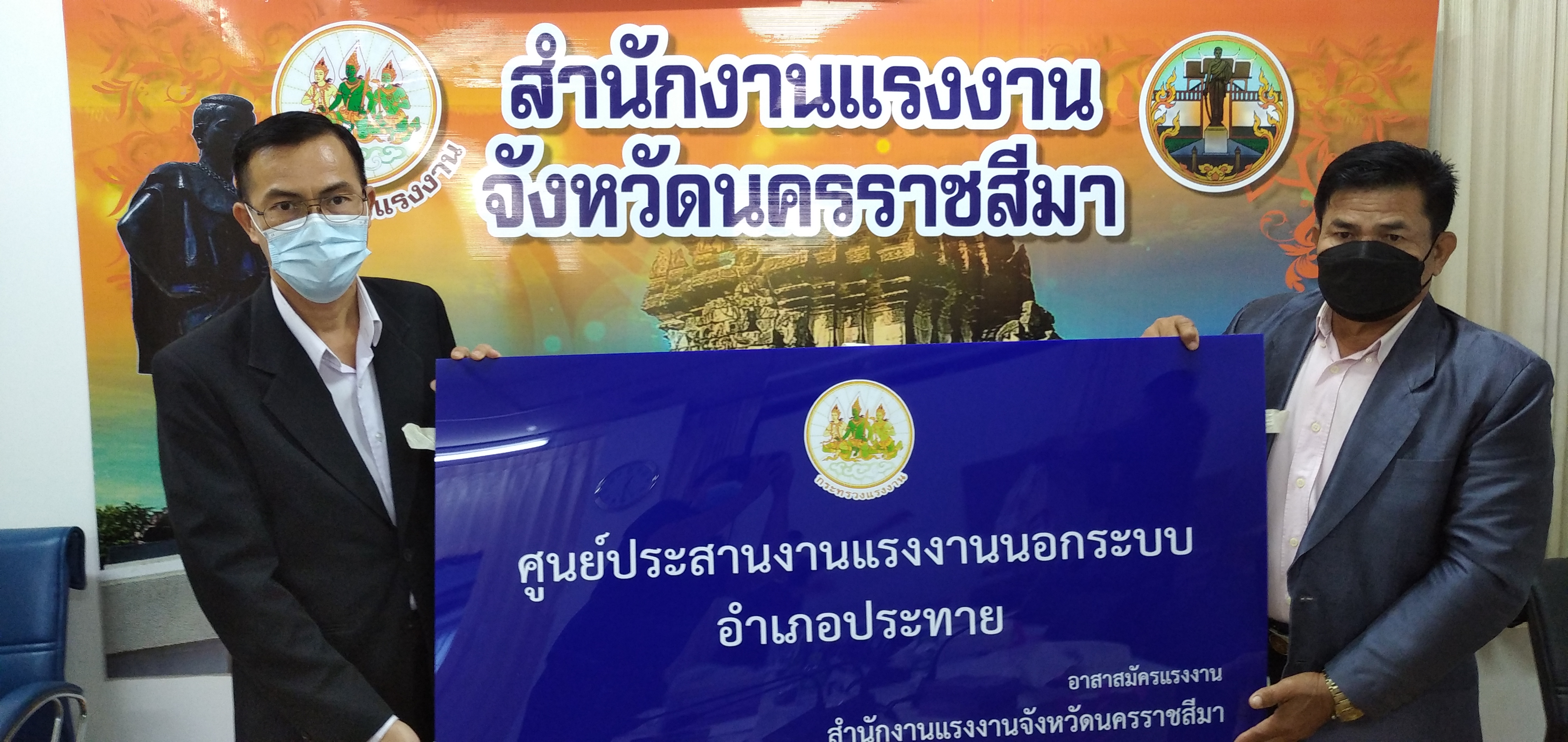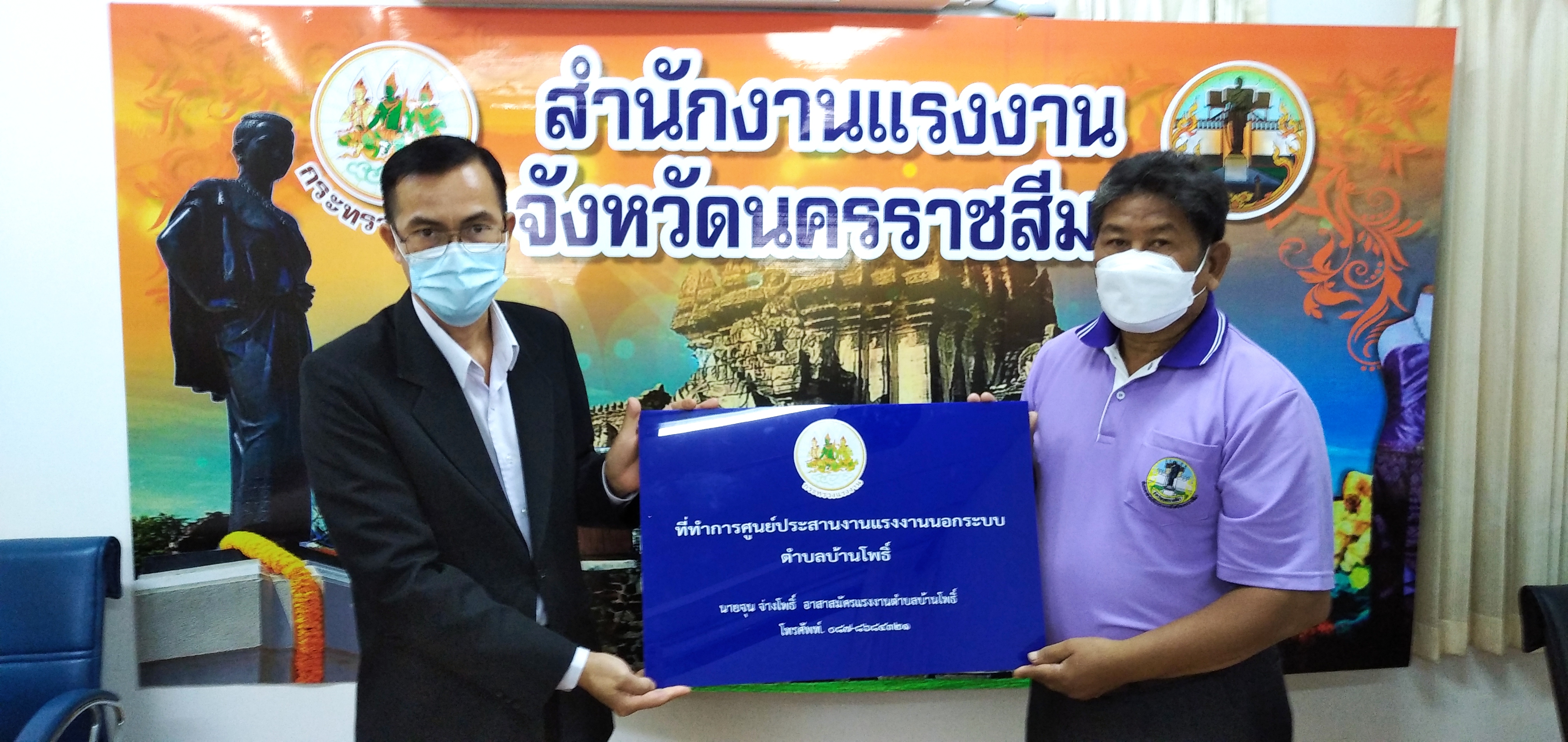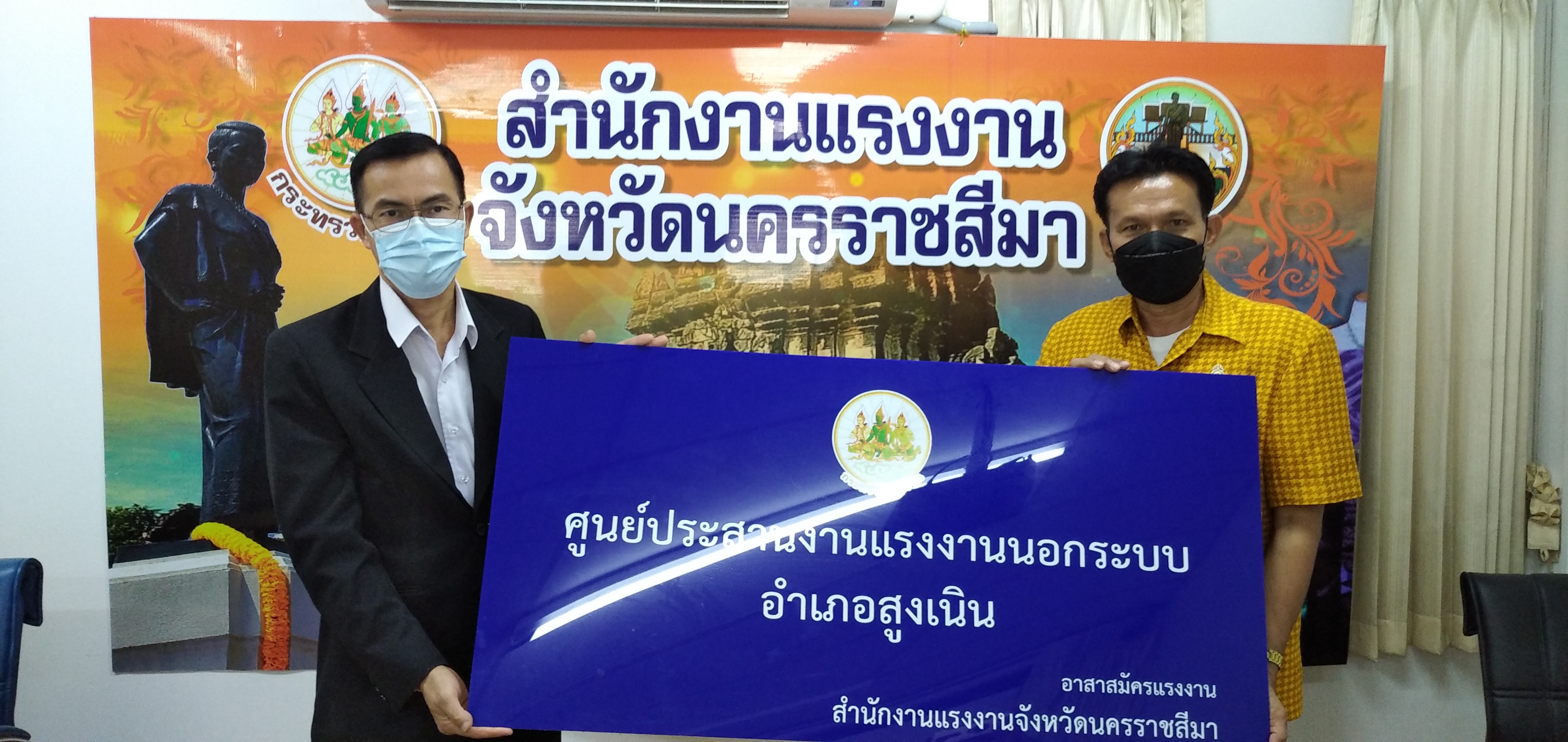 วันอังคารที่ ๒๘ กันยายน ๒๕๖๔ เวลา ๐๙.๐๐ น. นายวินัย มะยมทอง แรงงานจังหวัดนครราชสีมา เป็นประธานการประชุมศูนย์ประสานงานแรงงานนอกระบบอำเภอ ณ ห้องประชุมสำนักงานแรงงานจังหวัดนครราชสีมา เพื่อขับเคลื่อนการขยายเครือข่ายการบริการแรงงานนอกระบบในพื้นที่ชุมชน โดยอาสาสมัครแรงงาน ตามคำสั่งจังหวัดนครราชสีมา การจัดตั้งศูนย์ประสานงานแรงงานนอกระบบอำเภอ และแต่งตั้งคณะกรรมการศูนย์ประสานงานแรงงานนอกระบบอำเภอ พร้อมมอบป้ายศูนย์ประสานงานแรงงานนอกระบบอำเภอ ๗ แห่ง และป้ายที่ทำการศูนย์ประสานงานแรงงานนอกระบบตำบล ๗๑ แห่ง พร้อมวัสดุสำนักงาน และสื่อประชาสัมพันธ์ เพื่อให้บริการประชาชน ทั้งนี้ที่ประชุมได้ร่วมกันหารือแนวทางการให้ความช่วยเหลือผู้ประสบอุทกภัยในจังหวัดนครราชสีมา เพื่อให้ความช่วยเหลือต่อไป
